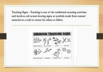 Tracking Signs - Tracking is one of the traditional scouting activities