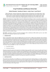 International Research Journal of Engineering and Technology (IRJET) e-ISSN: 2395-0056 Volume: 06 Issue: 11 | Nov 2019 p-ISSN: 2395-0072 www.irjet.net Crop Prediction and Disease Detection Mukul Chhanikar1, Rushikesh Thakare2, Aniket Tapre3, Sunil Thorat4 1Mukul Chhanikar, Computer Engineering, Sinhgad Academy of Engineering, Pune, Maharashtra, India Thakre, Computer Engineering, Sinhgad Academy of Engineering, Pune, Maharashtra, India 3Aniket Tapre, Computer Engineering, Sinhgad Academy of Engineering, Pune, Maharashtra, India 4Sunil Thorat, Computer Engineering, Sinhgad Academy of Engineering, Pune, Maharashtra, India ---------------------------------------------------------------------***---------------------------------------------------------------------2Rushikesh Abstract - Data mining is an emerging field of research in Information Technology as well as in agriculture. Agrarian sector in India is facing rigorous downside to maximize the crop productivity. The present study focuses on the applications of data mining techniques in crop prediction in the face of climatic change to help the farmer in taking decision for farming and achieving the expected economic return. The problem of yield prediction is a major problem that can be solved based on available data. Data Mining techniques are the higher decisions for this purpose. Different data processing techniques are used and evaluated in agriculture for estimating the long run year's crop production. Therefore we propose a brief analysis of crop prediction using Apriori and C4.5 algorithm and Disease detection using image processing algorithm. The patterns of crop production in response to the climatic (rainfall, temperature, relative humidity, evaporation and sunshine) effect across the selected regions are being developed. Thus it will be beneficial if farmers could use the technique to predict the future crop productivity and consequently adopt alternative adaptive measures to maximize yield if the predictions fall below expectations and commercial viability. Along with that we propose the system where the system can identify the disease by analyzing the image of crop and give the solution to cure the disease. The system will also help to take precaution against bad climate or the disease occurs due to weather change. Key Words: Agricultural vegetation, anisotropic propagation effects, multibaseline (MB) synthetic aperture radar (SAR), phenology, SAR tomography, vegetation water content (VWC). 1. INTRODUCTION India is an agricultural country with second highest land area of more than 1.6 million square-kilometer under cultivation. Various vital industries in India realize their material from agriculture sector -cotton and jute textile industries, sugar; Vanaspati, etc. are directly dependent on agriculture. There is no such universal system to help farmers in agriculture. India is an agriculture based developing country. In spite of having lot of digital data, they are not able to access real time to the factual information such as the crop yield data in particular soil and crop malady detection techniques, pesticides to be used, weather conditions, pest management etc. So as a solution to improvement in usability tool, this paper explores to develop solution that aims to be scalable, easy to access, community oriented design, efficient that aims to reduce digital gap among rural farmers towards technology. This paper highlights two major crop related parts: A. Crop Yield Prediction: B. Crop Disease Detection: Image processing is the analysis and manipulation of a digitized image especially in order to improve its quality and it is form of signal processing for which the input is an image, such as a photograph; the output of image processing may be either an image or a set of characteristics or parameters related to that image. Most image-processing techniques involve treating the image as a two-dimensional signal and applying customary signal-processing techniques to that. Digital image process is that the use of pc algorithms to perform image process on digital pictures. In our work, image processing starts with the digitized a color image of paddy disease leaf and identifies the disease as well as gives the solution to cure the disease. 2. EXISTING SYSTEM The productivity of agriculture is incredibly low as a result of since past 20 years yields prediction so as to figure agriculture growth of a specific country also as future direction towards investment plans on agricultural fields has been generalized by formers based on their previous experiences. It results in state of affairs wherever farmers fail to guage the yield knowledge. In the implementations the developers’ uses the single algorithm with the single data set so it gives single output because it find outs the relationships with the single dataset. © 2019, IRJET | Impact Factor value: 7.34 | ISO 9001:2008 Certified Journal | Page 249 International Research Journal of Engineering and Technology (IRJET) e-ISSN: 2395-0056 Volume: 06 Issue: 11 | Nov 2019 p-ISSN: 2395-0072 www.irjet.net 2.1 Disadvantages of Existing System: 1. Acquire a more time for processing. 3. PROPOSED SYSTEM Is this system, preparation of soil is the first step before growing a crop. One of the most important tasks in agricultural is to turn the soil and loosen it. This allows the roots to penetrate deep into the soil. The loose soil permits the roots to breathe simply even after they go into the soil. The loosened soil helps in the growth of earthworm and microbes present in the soil. These organisms square measure friends of the farmer since they any flip and loose the soil and add humus thereto. The Propose system incorporates data mining and android application technology to predict on the crop yield rate of a given year by implementing Apriori and C4.5 algorithms and analyzing past days average (min + max) temperature and average rainfall throughout the cropping period of major crops to de