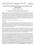 International Research Journal of Engineering and Technology (IRJET) e-ISSN: 2395-0056 Volume: 06 Issue: 11 | Nov 2019 p-ISSN: 2395-0072 www.irjet.net Effect of Injection Moulding Process Parameter on Warpage of using Taguchi Method Gurjeet Singh1, Mahazbeen Sayad2 1Assistant Professor, Department of Mechanical Engineering, IES University, BHOPAL-India Professor, Department of Physics, IES University, Bhopal-India ----------------------------------------------------------------------------***-------------------------------------------------------------------------2,Assistant Abstract: The growth of plastic industry is increasing very rapidly in the world. Plastic industry plays important role in the development of economy of any country progress. The plastic products are light in weight in comparison to metals and nonmetals products. Metal and non-metals are rarely available on the earth. So to manufacture plastic products is beneficial for us. Generally plastic products are manufactured by injection moulding process. The process parameters which affect the product quality are necessary to control. The aim of this paper is to minimize the surface defect warpage which occur in plastic products. By controlling the process parameter we can control warpagedefect. Since handling the different process parameter is mammoth task that costs time, effort and money. The process parameter melt temperature, mould temperature, packing pressure, packing time and cooling time are studied. The Taguchi method is used by exploiting mold analyses based on two levels. Orthogonal arrays of Taguchi, Signal-to- noise ratio, the analysis of variance are utilized to find optimal the optimal levels and effect of process parameters on sink marks defect. Keywords: Injection moulding, Taguchi method, Warpage, Polypropylene polymer 1. Introduction: Injection molding is one of the major net shape forming processes for thermoplastic polymers. Over 30% of all the plastic parts manufactured are by injection molding. Injection molding is ideally suited for manufacturing large quantities of mass produced plastic parts of complex shapes and sizes. In the injection molding process, hot melt of plastic is forced into a cold empty cavity of desired shape called mold. Then, the hot melt is allowed to solidify. Solidified net shape product is ejected out of the mold upon opening. Although the process is simple, prediction of final part quality is a complex phenomenon due to the numerous processing variables. We can study defects on the basis of two categories in the injection moulding. One is dimensional defect and other is attributed defect. Dimensional related defects can be controlled by correcting the mold dimensions. But, attribute related defects are generally dependent on the processing parameters. Some of the common attribute related defects are warpage, splay marks, sink marks, voids, weld/meld lines, poor surface finish, air traps, burn marks etc. Of all attribute defects, warpage marks are considered to be perennial. The warpage can be defined as the difference between the geometry of the CAD model created for manufacture of the mold and the dimensions of the molded part and the warpage are effects of variations in shrinkage. The shrinkage can be characterized by two broad classifications: volumetric and linearized. The volumetric shrinkage is the result of thermal contraction, which occurs in all polymers, and of crystallization which occurs in semi-crystalline polymers. A great deal of research is being carried out to understand, identify critical factors and possibly the molding processes. Most of the work carried out in the last decade was based on: theoretical, computer based simulation models and practical experimental trials. Erzurumlu and Ozcelik (2006) used Taguchi technique to minimize warpage and the sink index. In their study they considered mold temperature, melt temperature, packing pressure, rib cross section and rib layout angle and material PC/ABS, POM,PA66. They find in their research that packing pressure is influence the factor for PC/ABS plastic products, rib cross section influence POM material plastic product and rib layout angle influence PA66 material plastic product significantly. Baburozcelik et al (2010) attempted to study on mechanical properties of material with using taguchi method. They consider melt temperature, packing time, cooling time, injection pressure. Zhao Longzhi et.al.(2010) study the sink marks defect with simulation with the help of software mold flow and did experiment with the help of taguchimethod. In their research they study on Polypropylene material and process parameter melt temperature, mold temperature, injection time, holding pressure, cooling time.Stanek, M.etal. (2010) study mold design with the help of Cadmould software. They explain that Cadmould software can calculates filling time, speed and vulcanization time in the mold and consequent after curing depending on the material and technological parameters.Huang, M. Set. al. (2007) study the cavity pressure profile in the mould of injection moulding machine. In their experimental research they find innovative switchover method yields a more © 2019, IRJET | Impact Factor value: 7.34 | ISO 9001:2008 Certified Journal | Page 1035 International Research Journal of Engineering and Technology (IRJET) e-ISSN: 2395-0056 Volume: 06 Issue: 11 | Nov 2019 p-ISSN: 2395-0072 www.irjet.net uniform product weight that any traditional methods after study the filling condition in the mold. Rezavand, S. A. M et.al. (2007) presented a simplified wax model of gas turbine blade. Their study on the mold filling condition in the investment casting process, they explain that major steps in investment casting processes are injection molding of Wax pattern, ceramic coating, removing wax, drying and material casing. In the mold manufacturing they consider injection temperature and holding time as processing variables. They found that hold