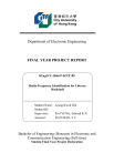 Department of Electronic Engineering FINAL YEAR PROJECT REPORT BEngECE-2006/07-KNY-05 Radio Frequency Identification for Library: Bookshelf Student Name: Leung Kwok Hin Student ID: Supervisor: Prof YUNG, Edward K N Assessor: Prof CHAN, Y C Bachelor of Engineering (Honours) in Electronic and Communication Engineering (Full-time) Student Final Year Project Declaration DEPARTMENT OF ELECTRONIC ENGINEERING FINAL YEAR PROJECT 2006/2007 RADIO FREQUENCY IDENTIFICATION FOR LIBRARY: BOOKSHELF KNY-05 I had read the student handbook and I understand the meaning of academic dishonesty, in particular plagiarism and collusion. I declare that the work submitted for the final year project does not involve academic dishonesty. I give permission for my final year project work to be electronically scanned and if found to involve academic dishonesty, I am aware of the consequences as stated in the Student Handbook. Project Title : Radio Frequency Identification for Library (Bookshelf) Student Name : Leung Kwok Hin Student ID: Signature: Date : 26-4-2007 P.2 DEPARTMENT OF ELECTRONIC ENGINEERING FINAL YEAR PROJECT 2006/2007 RADIO FREQUENCY IDENTIFICATION FOR LIBRARY: BOOKSHELF KNY-05 No part of this report may be reproduced, stored in a retrieval system, or transcribed in any form or by any means – electronic, mechanical, photocopying, recording or otherwise – without the prior written permission of City University of Hong Kong. P.3 DEPARTMENT OF ELECTRONIC ENGINEERING FINAL YEAR PROJECT 2006/2007 RADIO FREQUENCY IDENTIFICATION FOR LIBRARY: BOOKSHELF KNY-05 CONTENTS TABLE OF CONTENTS Pages Table of Contents 4 List of figures 7 List of Table 9 Acknowledgement 10 Abstract 11 Chapter 1: Introduction 12-16 1.1 Hong Kong Library 12 1.2 Library System Management using RFID 12 1.2.1 What was barcode? 12 1.2.2 Radio Frequency Identification (RFID) 13 1.2.3 The different between barcode and RFID 16 tag 1.2.4 The advantage using RFID for checking 16 the book Chapter 2:Theory 17-21 2.1 Basic theory for switch circuit 17 2.1.1 Switch insertion Loss (IL) 17 2.1.2 Switch Isolation 18 2.2 Mircostrip transmission line 2.2.1 Characteristic Impedance P.4 18 19 DEPARTMENT OF ELECTRONIC ENGINEERING FINAL YEAR PROJECT 2006/2007 RADIO FREQUENCY IDENTIFICATION FOR LIBRARY: BOOKSHELF 2.3 Basic theory for patch antenna KNY-05 19 2.3.1 Matching 20 2.3.2 Return Loss 20 2.3.3 Gain 20 2.3.4 Bandwidth 20 2.3.5 Radiation pattern 21 Chapter 3: Basic system in library 22-25 3.1 System Description 22 3.2 Structure 23 3.3 The operation flow in the system 24 Chapter 4: Switching circuit 26-37 4.1 Description 26 4.2 Circuit Explanation: 26 4.2.1 Simple switch circuit 27 4.2.2 Example for showed the connection 28 between Port 1 to Port 2 4.2.3 Lumped element replaced by microstrip 31 4.2.4 Switch with high isolation 35 Chapter 5: Patched antenna 38-48 5.1 Antenna Description 38 5.2 Patch Antenna in method 1 40 5.2.1 Antenna Part: 40 5.2.2 Matching Network 42 5.2.3 50Ω line 44 5.3 Patch Antenna in method 2 47 P.5 DEPARTMENT OF ELECTRONIC ENGINEERING FINAL YEAR PROJECT 2006/2007 RADIO FREQUENCY IDENTIFICATION FOR LIBRARY: BOOKSHELF KNY-05 Chapter 6: Discussion 49 Chapter 7: Conclusion 52 Component List 53 References 55 Glossary 57 P.6 DEPARTMENT OF ELECTRONIC ENGINEERING FINAL YEAR PROJECT 2006/2007 RADIO FREQUENCY IDENTIFICATION FOR LIBRARY: BOOKSHELF KNY-05 LIST OF FIGURES Figure Number Pages Figure 1.1 Hong Kong Public Library 12 Figure 1.2a Book with barcode 13 Figure 1.2b The frequency spectrum of RF 14 Figure 1.2c The diagram of tag 15 Figure 2.1 Switch circuit 17 Figure 2.2 The diagram of mircostrip 18 Figure 2.3 Radiation Pattern 21 Figure 3.3 Structure diagram about the whole system 25 Figure 4.2a Simple Switch Circuit Schematic 27 Figure 4.2b The performance of simple switch circuit in simulation 29 Figure 4.2c Mircostrip switch circuit in schematic 32 Figure 4.2d The performance of mircostrip switch circuit in simulation 33 Figure 4.2e The layout diagram of microstrip switch circuit 34 Figure 4.2f The schematic of switch with high isolation 35 Figure 4.2g The performance of switch with high isolation in simulation 36 Figure 4.2h The diagram of switch with high isolation product 37 Figure 5.1a Diagram of designing antenna in method 1 38 Figure 5.1b Diagram of designing antenna in method 2 39 Figure 5.2a Calculation the width and length by Microwave Office 40 Figure 5.2b Antenna performance showed in dB and Phase of S- 41 Parameters Figure 5.2c Antenna performance showed in REAL AND IMAGINARY PARTS OF Z-PARAMETERS P.7 42 DEPARTMENT OF ELECTRONIC ENGINEERING FINAL YEAR PROJECT 2006/2007 RADIO FREQUENCY IDENTIFICATION FOR LIBRARY: BOOKSHELF Figure 5.2d Calculation the width and length of matching network by KNY-05 43 Microwave Office Figure 5.2e The simulated antenna 45 Figure 5.2f Return loss at resonant frequency in simulation 45 Figure 5.2g The radiation pattern of patch antenna in simulation 46 Figure 5.2h Gain vs Frequency in simulation 46 Figure 5.3 The simulation result in method 2 by IE3D 47 P.8 DEPARTMENT OF ELECTRONIC ENGINEERING FINAL YEAR PROJECT 2006/2007 RADIO FREQUENCY IDENTIFICATION FOR LIBRARY: BOOKSHELF KNY-05 LIST OF TABLES Table Number Pages Table 1.2 Comparison between barcode and RFID tag 16 Table 5.2a The table of simple switch circuit for selection port 28 Table 5.2b The output signal with different value of capacitor 30 Table 5.2c For selection port in switch with high isolation 37 Table 6.2 The effect in different length of matching network 44 Table 6.3 Simulation result when gap length increased 48 P.9 DEPARTMENT OF ELECTRONIC ENGINEERING FINAL YEAR PROJECT 2006/2007 RADIO FREQUENCY IDENTIFICATION FOR LIBRARY: BOOKSHELF KNY-05 ACKNOWLEDGEMENT I would like to express my deep gratitude to my supervisor, Prof. Edward K. N. Yung. His lectures on RF and Microwave Techniques were of great value in the preparation of this thesis and thanks for his valuable guidance, suggestion, and support through this year. I would 
