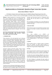 International Research Journal of Engineering and Technology (IRJET) e-ISSN: 2395-0056 Volume: 06 Issue: 02 | Feb 2019 p-ISSN: 2395-0072 www.irjet.net Implementation of Automatic Question Paper Generator System Aleena Susan Mathew1, Vidya. N2 1PG Scholar, Computer Science and Engineering, Sree Buddha College of Engineering, Kerala, India Professor, Computer Science and Engineering, Sree Buddha College of Engineering, Kerala, India ---------------------------------------------------------------------***---------------------------------------------------------------------2Assistant Abstract – Student assessment is a crucial part of teaching and is done through the process of examinations and preparation of exam question papers has consistently been a matter of interest. Here proposing an Automatic Question Paper Generating System which is fast, streamlined, randomized and secure. The proposed automatic question paper generating system having the input as text or document or pdf file. In proposed system, stop words are removed and NLP is used. Key phrase extraction is done by using TF – IDF algorithm and checking the wiki presence of terms. Generate triplets for question paper generation and also conducting input clarity checking using some linguistic rules by using WordNet tool. classifies each key phrase based on a Wikipedia article matched with the key phrase by using a rule-based approach. Key Words: Question Paper Generation, stop words, NLP, Key phrase Extraction, wiki presence, Triplets Generation, Input Clarity Checking. B. Technology: The key phrases can belong to one of the following five concepts adapted from a conceptual taxonomy proposed by Lehnert et al. [1] [2]. A. Research Field: The key phrase is about a research field. For example, “Social sciences are the fields of academic scholarship that study society.” The key phrase is related to technology/method/model/algorithm/protocol, e.g., “SOAP, originally defined as Simple Object Access Protocol, is a protocol specification for exchanging structured information in the implementation of web services in computer networks.” 1. INTRODUCTION Today, education is the most important way of achieving success. Proper examinations help students to improve their quality. So, having a proper examination paper is very necessary. The traditional way of generating question paper has been manual. Here proposing an Automatic Question Paper Generator System. Every task performed by this system is automated so that storage space, bias and security is not a concern anymore. The proposed system can be helpful to many educational institutes. C. System: The key phrase refers to a software system or hardware device. For example, “An image retrieval system is a computer system for browsing, searching and retrieving images from a large database of digital images.” Automatic Question Generation (AQG) involves natural language understanding and generation. Three major aspects of AQG have been addressed: selection of the target content (what to ask about), selection of the question types (e.g., Who, Why, Yes/No), and construction of the actual questions. In this system, proposing a novel approach to address three key challenges of automatic trigger question generation for supporting writing. The first challenge concerns the identification of key/central concepts from the potentially many concepts that are contained in an academic paper. The second is related to the system’s lack of knowledge about the domain discussed in an academic paper. And the third is how to evaluate whether the questions generated by the system are considered useful by authors/students. D. Term: The key phrase describes a technical term. For example, “The term cognitive load is used in cognitive psychology to illustrate the load related to the executive control of WM.” To address the second challenge, Wikipedia was used as a domain knowledge base. Knowledge from a single article is used to build conceptual graphs used to generate questions. The third challenge of evaluating the input quality of generated questions is addressed by conducting a Linguistic rule by WordNet tool. To address the first challenge of identifying key concepts, the system uses an unsupervised extraction algorithm to extract key phrases from an academic paper. The system then © 2019, IRJET | Impact Factor value: 7.211 | ISO 9001:2008 Certified Journal | Page 509 International Research Journal of Engineering and Technology (IRJET) e-ISSN: 2395-0056 Volume: 06 Issue: 02 | Feb 2019 p-ISSN: 2395-0072 www.irjet.net 2. RELATED WORKS phrase extraction on the same data used by Turney, which improved the results. Both GenEx and the Naive Bayes classifier are examples of supervised approaches to key phrase extraction. In general, supervised approaches require an annotated training set, which is often not practical. 2.1 Writing Support Systems Haswell [3] reviewed systems for automated feedback tracing back to the 1950s. These systems have focused on assessment of end products, and less on providing formative feedback [4], [5]. The Writer Workshop [6] and Editor [7] both focus on grammar and style. Sourcer’s Apprentice Intelligent Feedback system (SAIF) [8] is a computer assisted essay writing tool used to detect plagiarism, uncited quotations, lack of citations, and limited content integration problems. It uses a rule-based approach and Latent Semantic Analysis (LSA), a technique used to measure the semantic similarity of texts [9]. SaK, a writing tutoring system [10] developed at the University of Memphis, assesses student compositions. It uses multiple animated characters to provide different aspects of feedback, such as coherence, purpose, topic, and overall quality. Like SaK, a number of automated essay assessment tools or scoring systems [11] has been built based LSA. For example, Apex [12] uses LSA to assess student essays on topic coverage, discourse structure, and coherence. To eliminate 