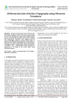International Research Journal of Engineering and Technology (IRJET) e-ISSN: 2395-0056 Volume: 06 Issue: 03 | Mar 2019 p-ISSN: 2395-0072 www.irjet.net 3D Reconstruction of Surface Topography using Ultrasonic Transducer Chinmay Chalke1, Pratik Khaire2, Badrivishal Iyengar3 ,Jayant D. Sawarkar4 1B.E. Computer Engineering, Datta Meghe College of Engineering, Navi Mumbai, India. prachinarp@gmail.com 2B.E. Computer Engineering, Datta Meghe College of Engineering, Navi Mumbai, India. badrivishal2306.iyengar@gmail.com 3B.E. Computer Engineering, Datta Meghe College of Engineering, Navi Mumbai, India. pratikkhaire27@gmail.com 4. Assistant Professor, Dept. of Computer Engineering, Datta Meghe college of Engineering, Navi Mumbai, India. jayant.sawarkar@dmce.ac.in ---------------------------------------------------------------------***--------------------------------------------------------------------- Abstract - Image reconstruction can be termed as the computations can be made possible by the use of softwares like MATLAB and LabVIEW. first stage of Computer Vision. The task of regenerating a 3D or a 2D image from a given target object involves the use of sensors. The type of sensor to use are design and requirement respective, since different type of sensors yield different types of outputs. In this study, we determine the surface topography by reconstructing a 3D image of a given target object using an Ultrasonic Transducer. This experimental process attempts to reconstruct a 3D image of the actual object using Ultrasonic sensors. 2. LITERATURE REVIEW Surface reconstruction means that retrieving the data by scanning an object using a device such as laser scanner and constructing it using the computer to gain back the soft copy of data on that particular object. It is a reverse process and is very useful especially when that particular object original soft copy data is missing without doing any backup. Hence, by doing so, the data can be recollected and can be stored for future purposes. At the same time, the accuracy of the reconstructed result should be concerned because if the result is incorrect, hence it will not exactly same like the original shape of the object. While for surface representation, it means that the method used is able to represent the collected data in the form of shape which is roughly same as the original object. Lot of review or research papers mentioned that surface reconstruction based on the unorganized points was a challenging task, no matter it is in three dimensions of maybe even higher dimension (Zhao et al. 2001; do Rêgo and Araújo 2010; Dalmasso and Nerino 2004). This is due to it involves several processes such as curve net construction and surface fitting (Tsai et al. 2008). One of the problems for unorganized points is to obtain correct connectivity among the points (Yu 1999; Yang et al. 2004; Boudjemaï et al. 2003). Hence, accurate and precise results will be the main aim in designing an algorithm by choosing suitable methods to overcome the drawback of the problems. Numerous methods have been proposed in reconstructing the surface of a model or objects because it involve in a lot of area such as medical, engineering, manufacturing and geoinformatics. After data collection is done, then will proceed by selecting suitable approaches to deal with the data. But before choosing the method to do the reconstruction, surface representation must be identified and considered. This is very important because the method used in designing the algorithm may have several limitations based on the data collected. If the data set is in unorganized type, then just used the Key Words: Sensors, Reconstruction of 3D Image , Ultrasonic Transducer . 1. INTRODUCTION A 3D Image is an image recreated from the actual object. This obtained image is rendered on a display screen on desired format so as to perform further operations. Every different sensing technology has its own characteristics and applications. Hence determining of the type of output required to perform further operations is very important in deciding the type of sensor to be used for image reconstruction. Today, image reconstruction can be seen as a widely used technology in stand alone or integrated applications ranging from designing to medical domains. 3D image construction involves the important tasks of capturing the shape, size, orientation and appearance of the actual object. In this particular domain, we employ the use of Ultrasonic sensors to reconstruct the image of sample objects (a Wrench, a ₹5 Coin).For this purpose, we use a dedicated ultrasonic transducer that sweeps throughout a 2 dimensional plane. The transducer fires lines of pulses at a predefined rate and keeps receiving the signals reflected from the surface of the object. The Intensity at which the signals are reflected back are noted so as to trace the surface area of the target object. The output received is in the form of waveforms. These waveforms are then transformed into graphs so as to give detailed and localised map of the object’s surface area. These © 2019, IRJET | Impact Factor value: 7.211 | ISO 9001:2008 Certified Journal | Page 5451 International Research Journal of Engineering and Technology (IRJET) e-ISSN: 2395-0056 Volume: 06 Issue: 03 | Mar 2019 p-ISSN: 2395-0072 www.irjet.net collected data to build a coherent mesh structure which can display as same as the original shape of the object (Boudjemaïet al. 2005). As mentioned by Júnior et al. (2004), (2007), the topology recovery is the main problems in surface reconstruction. So, the basis in developing the algorithm used in reconstructing the data must be able represent the topology and geometry by fitting the data correctly so that the surface produced will be similar as the original shape of the object. As mentioned by Zhao et al. (2001), there are two type of surface representation, explicit and implicit. Some reviews mentioned that the surface reconstruction techniqu