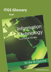 ITGS Glossary from www.itgstextbook.com This ITGS glossary belongs to _________________________________________________ _________________________________________________ _________________________________________________ 1-Hardware 1-Hardware 1-Hardware – page 3 1-1 Processing technologies Clock speed Speed of a processor, in ticks per second. Central Processing Unit Hardware responsible for processing all instructions the computer runs. CPU See Central Processing Unit. Data throughput Rate at which data is processed and output by a system. Dual core A multi-core system with two processor cores. GHz See gigahertz. Gigahertz Unit of measurement for a processor's clock speed. 1000 MHz. Hardware Physical parts of a computer system. Megahertz Unit of measurement for a processor's clock speed. MHz See megahertz. Microprocessor See Central Processing Unit. MIPS See Millions of Instructions Per Second Motherboard The circuit board to which the internal computer components connect: the CPU, the RAM, the ROM, and the secondary storage devices Multi-core Processor with more than one processor core, to increase its performance. Multiprocessing A system with more than one processor, to increase its performance. Multitasking A single processor running multiple tasks by switching rapidly between them. Processor See Central Processing Unit. Quad-core A multi-core system with four processor cores. Software The instructions and programs which are run by the CPU. Speed throttling Reducing a processor's clock speed to save power when not in use. Terahertz See Terahertz THz Unit of measurement for a processor's clock speed. 1000 GHz. 1-Hardware – page 4 Bar code scanners Input device that uses a laser to read a bar code. Concept keyboard Keyboard with keys that perform programmable, customised functions. Digital cameras Camera that saves images digitally, often in JPEG format. Digital video cameras Camera that saves digital video Digitize To convert data from analog to digital form. Dvorak keyboards Alternative keyboard layout to improve typing speed. Game controllers Input device with buttons used for games playing. Joystick Input device used for games playing and flight simulators. Keyboards Input device that lets the user enter text and numeric data. Magnetic Ink Character Recognition Input device that reads text written in special magnetic ink. Often used at the bottom of cheques. Magnetic stripe readers Input device that reads the magnetic stripe on cards like ATM cards and bank cards. MICR See Magnetic Ink Character Recognition Microphone Input device for sound data Multi-touch Input device able to recognise touches and gestures made with multiple fingers. Multimedia keyboard Keyboard with buttons to perform common tasks such as program launching. OCR See Optical Character Recognition. OMR See Optical Mark Recognition. Optical Character Recognition Input device that reads printed text, scans it, and converts it to text that can be edited in a word processor. Optical Mark Recognition Input devices that reads simple multiple-choice style answers by looking for marks on the paper. Scanner Input device used to digitise photographs and paper copies of data. Sensors Input devices used to measure physical traits, such as sound, heat, or light. Smart card readers Device to read a smart card. Soft keyboard Keyboard which is displayed on screen and controlled by clicking on buttons with the mouse or a touch screen. Stylus Input device used in conjunction with touch screens. 1-Hardware – page 5 1-Hardware 1-2 Input devices Touch pad Input device commonly found on laptops instead of a mouse. Touch screen Input device that lets the user touch areas of the display to perform tasks. Trackball Input device that uses a rotating ball to control the cursor. UPC See Universal Product Code Universal Product Code A type of barcode. Virtual keyboard See soft keyboard Voice control Use of spoken commands to control a computer. Voice recognition Use of software to convert spoken words into text. Webcam Input device used to record video, often found in laptop computers. 1-3 Output devices CRT monitor Output device. Older type of monitor, now almost obsolete. Hard copy A printed paper copy of data. Inkjet printer Printer that works by spraying ink through nozzles at a sheet of paper. Interactive whiteboard Device that uses a projector for output and touch inputs, using a special pen. Laser printer High speed printer. LCD screen Output device. The newer type of monitor which is flat. Native resolution Resolution of an LCD display that produces the best display quality. Output Information which is produced by a computer system. Pages per minute Speed at which a printer produces output. Printers Output device which produces paper copies. Projectors Output device for displaying content on large screens. Speakers Output device for sound. 1-Hardware – page 6 Bit A single binary digit (a 1 or a 0). The smallest unit of storage inside a computer. BluRay Optical secondary storage device capable of storing 16GB+. Byte Storage unit: 8 bits. Enough to store a single ASCII text character. CD-ROM Optical secondary storage device capable of holding 650700MB of data. CompactFlash Solid state storage device usually used in digital cameras. Data synchronisation Exchanging data between a computer and a portable device such as a smart phone. Disk wiping Securing deleting files from a disk, beyond recovery. DVD Optical secondary storage device capable of storing up to 8GB. eSATA A modern type of connector for attaching external hard disks EB See Exabyte Exabyte Storage unit: 1024 petabytes. External hard disk Portable storage device often used for backups. Firewire Interface for attaching external hard disks and digital video cameras. Flash memory/flash drive See solid state storage. GB See Gigabyte. Gigabyte Storage unit: 1024 megabytes. Hard disk Magnetic secondary storage device found in most desktop and laptop computers. IDE Interface fo
