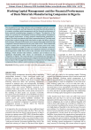International Journal of Trend in Scientific Research and Development (IJTSRD) Volume 4 Issue 2, February 2020 Available Online: www.ijtsrd.com e-ISSN: 2456 – 6470 Working Capital Management and the Financial Performance of Basic Materials Manufacturing Companies in Nigeria Olaniyi, Ayo R; Nzewi, Ugochukwu C Department of Accountancy, Nnmadi Azikiwe University, Awka, Nigeria How to cite this paper: Olaniyi, Ayo R | Nzewi, Ugochukwu C "Working Capital Management and the Financial Performance of Basic Materials Manufacturing Companies in Nigeria" Published in International Journal of Trend in Scientific Research and Development (ijtsrd), ISSN: 24566470, Volume-4 | IJTSRD30225 Issue-2, February 2020, pp.958-968, URL: www.ijtsrd.com/papers/ijtsrd30225.pdf ABSTRACT The management of working capital involves managing inventories, accounts receivable and payable, and cash. Based on this assertion, this dissertation is to examine working capital management and the financial performance of basic materials manufacturing companies in Nigeria. The objective of the study is to examine the relationship between working capital management and financial performance of basic material manufacturing companies in Nigeria, The study is anchored with Fisher’s separation theory. The study used ex-post facto research design which also known as after-the-effect research, data analyses of financial information were extracted from the manufacturing companies Financial Statements for the years 2001 to 2015. These statements used to examine how an independent variable, present prior to the study, affects a dependent variable. In order to arrive at the testable conclusion, stratified random sampling techniques were adopted. Ordinary Least Square (OLS) regression model were used in this research work with the model findings, which revealed that debtors, creditors and inventory has no significant relationship with return on investment of manufacturing companies in Nigeria. The study therefore recommended that managers of basic material manufacturing companies in Nigeria should intensify effort on how to improve the management of debtor as a component of working capital components than creditors and inventories in their industry. Copyright © 2019 by author(s) and International Journal of Trend in Scientific Research and Development Journal. This is an Open Access article distributed under the terms of the Creative Commons Attribution License (CC BY 4.0) (http://creativecommons.org/licenses/by /4.0) Keywords: Working capital, accounts receivable and payable, and cash INRODUCTION Working capital management decisions involve managing relationships between a firm’s short-term assets and liabilities to ensure that a firm is able to continue its operations, and have sufficient cash flows to satisfy both maturing short-term debts and upcoming operational expenses at minimal costs, and consequently, increasing corporate profitability. Working capital refers to the firm’s current assets and current liabilities required to be combined with fixed assets for the day-to-day business activities (Barine, 2012). The current assets necessary for the working of fixed assets are accounts receivable, inventories and cash, while the current liabilities necessary for the working of fixed assets are accounts payable. These current assets and current liabilities constitute the components of working capital. Management of working capital is an important component of corporate financial management because it directly affects the financial performance of organizations. It is imperative for every business to have sufficient liquid resources so as to maintain a daily cash flow. This is not only essential in the short run but it is much necessary to keep a business as a going concern (BPP, 2006). It therefore implies that liquid resources are a vital element of an organization. However, as important as that is, care must be taken so that balance is maintained in the level of liquidity of a firm since “cash pays no interest” (Uremadu, Egbide & Enyi, 2012). The short-term solvency of a firm is a function of how liquid a @ IJTSRD | Unique Paper ID – IJTSRD30225 | firm is and also crucial to the working capital. Working capital is the difference between a firm’s current assets and current liabilities. Working capital management is to increase the profitability of a company and to ensure that it is liquid enough to meet its obligations in the short-term. Also, working capital has a lot to do with how risky a business is and therefore managing it properly can improve the performance of an organization. According to Sen and Oruc (2009), working capital management is consequential to a firm and this is usually explained by the relationship between working capital management and profitability A firm should ensure that it does not suffer from lack of liquidity and also that it is not too much highly liquid. Akinsulire (2010) opined that the failure of a company to meet its obligations due to lack of sufficient liquidity will result in bad credit image, loss of creditor’s confidence or even in lawsuits resulting in the closure of the company. A very high degree of liquidity is also bad because the assets earn nothing, it is, therefore, necessary to strike a proper balance between liquidity and lack of it (Olugbenga, 2010). If an organization’s current assets do not exceed its current liabilities, it may deprive the organization of paying back its creditors in the short term. A declining working capital ratio over a longer time period could be a red flag that may lead to critical analysis, and eventually lead to bankruptcy (Adegbie, 2012). Working capital management is important due to many reasons, for one thing, the current assets of a typical Volume – 4 | Issue – 2 | January-February 2020 Page 958 International Journal of Trend in Scientific Research and Development (IJTSRD) @ www.ijtsrd.com eISSN: 2456-6470 manufacturing firm account
