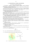 252 11. ГЕОМЕТРИЧЕСКАЯ ОПТИКА И ФОТОМЕТРИЯ § 11.1 Законы геометрической оптики В оптическом диапазоне с достаточно большой точностью можно представить распространение электромагнитных волн как перенос ими энергии вдоль некоторых линий. Эти линии получили название световых лучей. Геометрической оптикой называется раздел оптики, в котором законы распространения оптического излучения изучаются на основе математической модели, в которой световые волны заменяют световыми лучами и применяют к ним обычные правила евклидовой геометрии и несколько простых законов, установленных опытным путем. Основными законами геометрической оптики являются: 1. Закон прямолинейного распространения света: свет в оптически однородной среде распространяется прямолинейно. (Вообще говоря, понятие прямой возникло из оптических наблюдений как линии, по которой распространяется свет в однородной среде. Этот закон теряет силу, если мы переходим к очень малым отверстиям. В данном случае начинает проявляться волновая природа света и отклонение от прямолинейного распространения составляет сущность дифракции). 2. Закон независимости световых пучков: распространение всякого светового пучка в среде не зависит от наличия других пучков; лучи обратимы. (Световой поток можно разбить на отдельные световые пучки, выделяя их, например, при помощи диафрагм. Действие этих пучков оказывается независимым, т.е. суммарный эффект представляет собой сумму вкладов каждого светового пучка в отдельности. Ограниченность этого закона проявляется в явлениях интерференции света). Луч света, падающий на границу раздела двух сред, разделяется на два – отраженный и преломленный, направления которых определяются законами отражения и преломления (рис. 11.1). 3. Законы отражения: - отраженный луч лежит в одной плоскости с падающим лучом и перпендикуляром, проведенным к границе раздела двух сред в точке падения луча; - угол отражения γ равен углу падения : 4. Законы преломления: - луч падающий, луч преломленный и перпендикуляр, восстановленный в точке падения луча, лежат в одной плоскости; - отношение синуса угла падения к синусу угла преломления есть величина постоянная для двух данных сред (закон Снеллиуса): sin n21 , (11.1) sin n где n21 2 - относительный показатель преломления двух сред, n1 n1 и n2 - абсолютные показатели преломления первой и второй среды. Рис. 11. 1 Отражение и преломление падающегоФерма. луча света на границе раздела двух сред 11.1.1 Принцип 253 В физике исключительное значение имеет метод принципов, позволяющий на основе небольшого числа общих предположений (принципов) обосновать известные законы некоторого круга явлений и предсказать еще неоткрытые закономерности. В геометрической оптике таким принципом является принцип кратчайшего оптического пути (или минимального времени распространения), именуемым также принципом Ферма. По определению, оптической длиной пути называется величина, равная: 2 L n ds . 1 Принцип Ферма можно рассматривать как общий закон распространения света. Другие законы распространения света являются его следствием (за исключением закона независимости световых пучков). Действительно, нетрудно видеть, что для однородной среды этот принцип приводит к закону прямолинейного распространения света согласно геометрической аксиоме о том, что прямая есть кратчайше