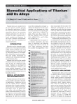 Biological Materials Science Overview Biomedical Applications of Titanium and its Alloys C.N. Elias, J.H.C. Lima, R. Valiev, and M.A. Meyers Titanium alloys are considered to be the most attractive metallic materials for biomedical applications. Ti-6Al-4V has long been favored for biomedical applications. However, for permanent implant applications the alloy has a possible toxic effect resulting from released vanadium and aluminum. For this reason, vanadium- and aluminumfree alloys have been introduced for implant applications. INTRODUCTION Materials used for biomedical applications cover a wide spectrum and must exhibit specific properties. The most important property of materials used for fabricating implants is biocompatibility, followed by corrosion resistance. The main metallic biomaterials are stainless steels, cobalt alloy, and titanium and titanium alloys. Stainless steel was the first metallic biomaterial used successfully as an implant. In 1932, the cobalt-based alloy named Vitallium was developed for medical applications. Titanium is the newest metallic biomaterial. In both medical and dental fields, titanium and its alloys have demonstrated success as biomedical devices. MEDICAL APPLICATIONS AND BIOCOMPATIBILITY Titanium alloys are now the most attractive metallic materials for biomedical applications. In medicine, they are used for implant devices replacing failed hard tissue. Examples include artificial hip joints, artificial knee joints, bone plates, screws for fracture fixation, cardiac valve prostheses, pacemakers, and artificial hearts. Ti-6Al-4V has long been a main medical titanium alloy. However, for permanent implant applications the alloy has a possible 46 toxic effect resulting from released vanadium and aluminum. For this reason, vanadium- and aluminum-free alloys have been introduced for implant applications, based on the Ti-6Al-4V implants. These new alloys include Ti6Al-7Nb (ASTM F1295), Ti-13Nb13Zr (ASTM F1713), and Ti-12Mo6Zr (ASTM F1813). A great number of in-vivo and in-vitro titanium experiments have been done at universities and industries throughout the world for the last 50 years. These experiments found that the excellent biocompatibility of titaHow would you… …describe the overall significance of this paper? This article enumerates some materials used for biomedical applications, emphasizing the use of commercially pure titanium for dental implants, and explains the importance of titanium chemical composition on osseointegration. …describe this work to a materials science and engineering professional with no experience in your technical specialty? Ultrafine grain titanium should have adequate biocompatibility and higher mechanical properties than commercially pure titanium. Dental implants were inserted in a rabbit and no statistical difference was observed between the osseointegration of cp Ti and ultrafine grain titanium. …describe this work to a layperson? In medicine titanium alloys are used for implant devices replacing failed hard tissue. This article compares biocompatibility properties of different biomaterials and shows that ultrafine grain titanium has adequate biocompatibility for dental implant use. www.tms.org/jom.html nium is associated with its oxides. C.B. Johansson1 demonstrated in in-vivo animal model studies that the titanium oxide may differ from metallic biomaterials such as Ti-6Al-4V, CoCr alloys, and stainless steel 316 LVM. The interface between the titanium implant and the bone is a thin proteoglycans layer. Commercially pure titanium (Cp Ti) is considered to be the best biocompatible metallic material because its surface properties result in the spontaneous build-up of a stable and inert oxide layer. The main physical properties of titanium responsible for the biocompatibility are: low level of electronic conductivity, high corrosion resistance, thermodynamic state at physiological pH values, low ion-formation tendency in aqueous environments, and an isoelectric point of the oxide of 5–6. In addition, the passive-film-covered surface is only slightly negatively charged at physiological pH, and titanium has a dielectric constant comparable to that of water with the consequence that the Coulomb interaction of charged species is similar to that in water. DENTISTRY APPLICATIONS Titanium and its alloys are also used for dentistry devices such as implants, crowns, bridges, overdentures, and dental implant prosthesis components (screw and abutment). Commercially pure titanium is used preferentially for endosseous dental implant applications. There are currently four cp Ti grades and one titanium alloy specially made for dental implant applications. These metals are specified according to ASTM as grades 1 to 5. Grades 1 to 4 are unalloyed, while grade 5, with 6% aluminum and 4% vanadium, is the strongest. According to ASTM F67 and F136, the titanium bar mechanical JOM • March 2008 Table I. Selected Mechanical Requirements Properties of Titanium Bar for Implant* ASTM Grade Property Yield Strength (MPa) Ultimate Tensile Strength (MPa) Elongation (%) Elastic Modulus (GPa) 1 2 3 4 5 170 240 24 103–107 275 345 20 103–107 380 450 18 103–107 483 550 15 103–107 795 860 10 114–120 *Adapted from ASTM F67 (Grade 1 to 4) and F136 (Grade 5). properties of grades 1 to 5 are summarized in Table I. Titanium grade 1 has the highest purity, lowest strength, and best roomtemperature ductility of the four ASTM titanium unalloyed grades. Grade 2 titanium is the main cp Ti used for industrial dental implant applications. The guaranteed minimum yield strength of 275 MPa for grade 2 is comparable to those of annealed austenitic stainless steels. Titanium grade 3 has 0.30 maximum iron content, which is lower than grade 4 (0.50 maximum). Grade 4 has the highest strength of the unalloyed ASTM grades. Grade 5, an ASTM titanium alloy (Ti-6Al-4V), is the most widely used titanium alloy in medical implants but not common in dental implants. 