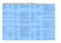 Essential Hands-on Labs for Physics 1 Mechanics - Marc Reif – marc.pricereif@gmail.com Content Area Title Essential Qs Synopsis Low Tech Higher Tech 1. Kinematics – 1-d motion [Constant Velocity Model; Constant Acceleration Model] 1-d Kinematics Lab. Describing Motion. How can we model constant velocity? How can we model changing velocity? Collect and analyze graphs of constant velocity and constant acceleration motion using constant velocity toy, dynamics cart and ramp, bowling ball. 2. Kinematics – Projectile motion [often placed after forces] Projectile Motion Lab. How can we model 2-dimensional projectile motion? 3. Zero Net Force Model Force Table Lab How do we sum forces? Collect video of projectile motion (tossed ball) for analysis. Or, using a projectile launcher, determine initial velocity of projectile, and then calculate using projectile equations to predict landing point. Use Force Table to investigate balanced forces. Alternatively, suspend object vertically from angled strings with force measuring devices. 4. Zero Net Force Model Friction Lab How can we describe friction? 5. Zero Net Force Model [also often performed in Energy unit] Hooke’s Law Lab What is the relationship b/w spring force and stretch? 6. Constant Net Force Model NSL Activity What causes acceleration? 7. Constant Net Force Model Half-Atwood’s machine (cart towed by hanging mass), or Atwood’s machine What is the relationship b/w force and acceleration? Impulse Lab What happens when a varying force is exerted? 8. Impulse Collect force vs. time graph for sliding wooden blocks. Vary mass (blocks stacked), vary speed, vary surface area (hook blocks together), vary surfaces. Suspend masses from springs, collect data for mass and change of length. Alternatively, mount spring on dynamics cart, connect spring to fixed force sensor, wiggle cart back and forth in front of motion detector. Investigate the relationship between net force and acceleration by pushing and pulling a lab cart. Collect data for acceleration of Half-Atwood’s (cart on a ramp accelerated by a falling mass) or Atwood’s machine. Vary mass of system, or vary force without varying mass (all masses must stay in system). Cart collides with a force sensor. Vary mass, vary speed. Possibilities CV toy, lab cart, ball, Meter sticks, rulers, stopwatches Computer interface, motion detector; or video camera and software ● ● ● ● Meter sticks, rulers, stopwatches, projectile launcher, carbon paper. String, objects, spring scales, protractors, meter sticks Blocks, cart, spring scale Video camera and software. Projectile launcher with timing apparatus. ● ● ● Determine initial velocity of launcher Predict landing spot of projectile Apply CV and CA models to real situation n/a ● ● Show how vector sums add to zero Determine unknown mass, angle, or tension Blocks, cart, force sensor, motion detector ● Tow block with spring scale or force sensor Plot F vs. m, F vs. Area, F vs. speed, F vs. surface Look for peak of static friction Compare to cart Derive Frictional force law mu = Ff/FN Convert masses to forces, plot Fspring vs. change in length. Interpret slope, intercept, and area. ● ● ● ● ● ● Meter sticks, linear springs, masses. Linear springs, force sensors, motion detectors, dynamics carts. n/a Cart, track, motion detector, force sensor, interface Half-Atwood’s Machine: Cart, track, motion detector or smart pulley, interface. ● ● ● ● Cart, hoop spring or plunger, force sensor, motion detector ● Atwood’s machine is easier low-tech, meter sticks, rulers, stopwatches n/a ● ● ● ● Compare and contrast CV and CA Predict graphs derive kinematics eq’ns Derive models for CV, interpret slope, intercept and area Derive models for CA, interpret slope, intercept, and area (linearization of x vs. t possible but unlikely, requires zero initial velocity and zero initial position) Wiggle cart back and forth by hand Plot F vs. t, F vs. v, F vs. a Derive NSL ½ A - Plot a vs. m with constant force (inverse) ½ A - Plot a vs. F with constant mass (linear) Atwood’s Plot a vs. delta m Derive NSL Compare area of F-t graph to change in momentum of cart, determine Impulse proportional to Δ momentum Content Area Title Essential Qs Synopsis Low Tech Higher Tech Possibilities 9. Momentum Collisions Lab How can we model collisions? Carts collide elastically and inelastically on a track. mass of an unknown ● 10. Models for Energy Hooke’s Law Lab What is the relationship b/w spring force and stretch? Suspend masses from springs, collect data for mass and change of length. Alternatively, mount spring on dynamics cart, connect spring to fixed force sensor, wiggle cart back and forth in front of motion detector. Meter sticks, linear springs, masses. Carts, ramp, masses, photogates OR motion sensors OR video analysis Linear springs, force sensors, motion detectors, dynamics carts. 11. Models for Energy Energy transfer lab What is the relationship b/w kinetic energy and potential energy? Determine spring constant of springs. Launch dynamics carts with springs, record max velocity with motion sensor [if spring is attached to force sensor, computer can show area of F vs x graph] Alternatively, launch dynamics carts with springs on an incline, record max height Dynamics carts, compression springs (cart launchers work well), dynamics track, motion sensor and force sensor ● ● If use motion sensors, plot vmax vs. Δ x If use incline method, use distance up ramp and a = g*sin theta to determine initial speed 12. Oscillating Particle Model Oscillating Mass lab What factors influence the period/frequenc y of a simple harmonic oscillator? Plot T2 vs. 1/k; T2 vs. m; T vs. amplitude Pendulum Lab What factors influence the period of a pendulum? ● Plot T2 vs. L; T vs. m; T vs. other quantities. 14. Oscillations and gravitation; Work, Energy, Power Energy and Oscillation How can we model the behavior of an oscillator using energy? 