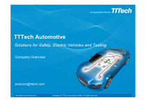 TTTech Automotive Solutions for Safety, Electric Vehicles and Testing Company Overview products@tttech.com www.tttech-automotive.com Copyright © TTTech Automotive GmbH. All rights reserved. What do they have in common … NASA Orion Boeing 787 … Reliable Networks and Controls from TTTech Audi A8 www.tttech-automotive.com Prinoth Leitwolf Copyright © TTTech Automotive GmbH. All rights reserved. Page 2 Company Mission TTTech establishes time-triggered communication platforms and certifiable safety modules as the solutions of choice for volume embedded market segments that need and value reliability and robustness. Benefits include simple to use complete products, best-in-class product cost performance and service, and enabling our customers to deploy their solutions more efficiently and profitably. www.tttech-automotive.com Copyright © TTTech Automotive GmbH. All rights reserved. Page 3 Experts for Reliable Networks and Safe Controls • Founded in 1998 • Award-winning spin-off of Vienna Technical University • Unique know-how pool of 200+ employees • Headquartered in Vienna, Austria • Shareholders • Founders & employees: ~40% • AUDI AG: < 25% • Remaining shares: investors including aeris Capital AG Carlsbad California www.tttech-automotive.com Gaimersheim Germany Vienna Austria Brixen Italy Copyright © TTTech Automotive GmbH. All rights reserved. Bukarest Romania Seoul Korea Yokohama Japan Page 4 TTTech Automotive GmbH • 100% subsidiary of TTTech Computertechnik AG • Premium associate member of FlexRay Consortium • Premium member of AUTOSAR Consortium • Premium member of JasPar Consortium Ingolstadt • Support • Engineering Stuttgart • Sales Yokohama Vienna Seoul • Sales • Sales • Engineering • Support • Headquarters • Sales • R&D • Engineering • Support www.tttech-automotive.com Copyright © TTTech Automotive GmbH. All rights reserved. Page 5 Automotive Production Program Reference Audi A8 Communication Software • FlexRay, CAN, LIN, Tools • Performance optimized Communication Safety Software • End-to-end safety on FlexRay and CAN • ISO 26262 ASIL D Process Optimization • Automated ECU Validation • Testbench automation Premium Engineering • 10 Mbit/s physical layer • Stable parameterizing and interoperability • Software integration and prototype support • Diagnostics specification • Representation in FlexRay Consortium Audi A8, A6, A4, … www.tttech-automotive.com VW Touareg, … Bentley Arnage, Continental Copyright © TTTech Automotive GmbH. All rights reserved. Page 6 Automotive Portfolio ReliableNetworks Networksand andSafe SafeCommunication Communication Reliable Embedded Safety Software Safety Hardware for E-Vehicles Testing Tools • Autosar Safe up to ASIL D • Modulare Safety Platform • Data Logger • SafeCOM • IEC 61508 / ISO 26262 • FlexRay Tools • SIL 2-3 Networks & Engineering www.tttech-automotive.com Copyright © TTTech Automotive GmbH. All rights reserved. Page 7 TTTech Automotive Safety Hardware and Solutions for Electric Vehicles • Electric Vehicle Safety Unit • Electric Vehicle Control Unit • Modular ECU Family www.tttech-automotive.com Copyright © TTTech Automotive GmbH. All rights reserved. Solutions for Functional Safety in Electric Vehicles ModularHardware HardwareSafety SafetyPlatform Platform Modular ISU Inverter Safety Unit Inverter • Safety for electric powertrain • Add-on or integrated ISU Electric Vehicle Control Unit … cost effective customized version possible • Platform for electric powertrain control strategy VCU HY-TTC 90 Modular ECU Family • Certified for SIL 2/3 (ASIL C/D) HY-TTC 100 HY-TTC 50 • Off-the-shelf / customizable HY-TTC 200 HY-TTC 60 • Flexible configurable I/O Safety ECUs certified by TÜV Nord HY-Vision2 Standard ECUs ModularSoftware SoftwareSafety SafetyPlatform Platform Modular SafeExecution Application SafeCOM RTE CAL • For safety functions up to ASIL D • Safe end-to-end comm. over CAN or FlexRay • Co-existance of safety related and non-safety related functions • Integrates with AUTOSAR www.tttech-automotive.com SafeCOM AUTOSAR COM PDU Router FX TP CAN TP FlexRay Interface LIN Interface CAN Interface FlexRay Driver LIN Driver CAN Driver • Up to ASIL D SafeExec • Conform to AUTOSAR Copyright © TTTech Automotive GmbH. All rights reserved. SafeCOM Page 9 Example 1: Electric Vehicle Safety Unit • Electric vehicles are „by-wire“ (safety-relevant system) • Unintended acceleration or deceleration to be avoided! • TTTech‘s ESU is a safe guarding unit to control this behavior • Torque supervision by voltage and current measurements, switch off in case of error • Retrofit to existing powertrain concepts, or customized integration with inverter / VCU • Certified for SIL 2-3) • Prototypes available now, SOP in Q1/2011 Accelerator Pedal ESU Battery Unit www.tttech-automotive.com Inverter Copyright © TTTech Automotive GmbH. All rights reserved. E-Motor Page 10 Example 2: Electric Vehicle Control Unit ECU Platform for Electric Powertrain Control VCU Battery Unit Inverter E-Motor • 16/32 Bit main CPU, supervised by certified watchdog CPU • ISO 26262 compliant Hardware and Software platform • Safe software runtime environment (SafeExecution and SafeCOM) • Accomodates non-safe Basic Software (AUTOSAR, Diagnostics, …) and non-safe application software modules • Supports mixed-criticality applications www.tttech-automotive.com Copyright © TTTech Automotive GmbH. All rights reserved. Page 11 TTTech Automotive Embedded Safety Software • Modular Safety Platform • Partnership with Vector Informatik • MICROSAR Safe www.tttech-automotive.com Copyright © TTTech Automotive GmbH. All rights reserved. ASIL Decomposition Safety Concept Application SW (ASIL D) Economic Implementation ASIL D Î ASIL D (D) + QM (D) Basic SW (ASIL D) Application SW (ASIL D) Safety Layer (ASIL D) Basic SW (QM) Safety Mechanisms Reused