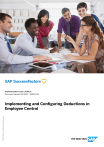 Implementation Guide | PUBLIC Document Version: 2H 2020 – 2020-10-16 © 2020 SAP SE or an SAP affiliate company. All rights reserved. Implementing and Configuring Deductions in Employee Central THE BEST RUN Content 1 What's New in Deductions. . . . . . . . . . . . . . . . . . . . . . . . . . . . . . . . . . . . . . . . . . . . . . . . . . . . . 3 2 Deductions. . . . . . . . . . . . . . . . . . . . . . . . . . . . . . . . . . . . . . . . . . . . . . . . . . . . . . . . . . . . . . . . . 5 3 Deductions. . . . . . . . . . . . . . . . . . . . . . . . . . . . . . . . . . . . . . . . . . . . . . . . . . . . . . . . . . . . . . . . . 6 3.1 Enabling Deductions. . . . . . . . . . . . . . . . . . . . . . . . . . . . . . . . . . . . . . . . . . . . . . . . . . . . . . . . . . . 6 3.2 Forward Propagation in Employee Central Recurring Deductions. . . . . . . . . . . . . . . . . . . . . . . . . . . . 7 Examples for Forward Propagation for Deductions. . . . . . . . . . . . . . . . . . . . . . . . . . . . . . . . . . . 7 3.3 UI Configuration. . . . . . . . . . . . . . . . . . . . . . . . . . . . . . . . . . . . . . . . . . . . . . . . . . . . . . . . . . . . . 16 Creating the One Time Deduction User for Administrator and Employee. . . . . . . . . . . . . . . . . . . 16 Creating One Time Deduction Configuration UI. . . . . . . . . . . . . . . . . . . . . . . . . . . . . . . . . . . . . 17 Creating Recurring Deduction Configuration UI. . . . . . . . . . . . . . . . . . . . . . . . . . . . . . . . . . . . . 18 3.4 Assigning Screen IDs. . . . . . . . . . . . . . . . . . . . . . . . . . . . . . . . . . . . . . . . . . . . . . . . . . . . . . . . . 24 Assigning New Screen IDs. . . . . . . . . . . . . . . . . . . . . . . . . . . . . . . . . . . . . . . . . . . . . . . . . . . 24 Changing Existing Screen IDs. . . . . . . . . . . . . . . . . . . . . . . . . . . . . . . . . . . . . . . . . . . . . . . . . 25 3.5 Permissions for Deductions. . . . . . . . . . . . . . . . . . . . . . . . . . . . . . . . . . . . . . . . . . . . . . . . . . . . . 25 3.6 Configuring People Profile for Recurring Deductions Block. . . . . . . . . . . . . . . . . . . . . . . . . . . . . . . 26 3.7 Adding Custom or New Fields. . . . . . . . . . . . . . . . . . . . . . . . . . . . . . . . . . . . . . . . . . . . . . . . . . . 26 Enabling the End Date Field. . . . . . . . . . . . . . . . . . . . . . . . . . . . . . . . . . . . . . . . . . . . . . . . . . .27 3.8 Importing a Recurring Deduction. . . . . . . . . . . . . . . . . . . . . . . . . . . . . . . . . . . . . . . . . . . . . . . . . 28 3.9 Importing a One Time Deduction. . . . . . . . . . . . . . . . . . . . . . . . . . . . . . . . . . . . . . . . . . . . . . . . . 29 2 PUBLIC Implementing and Configuring Deductions in Employee Central Content 1 What's New in Deductions Learn about changes to this guide in recent releases. Q2 2019 - Present What's New Description No Changes We did not update this document. More Information Q1 2019 What's New Description Forward Propagation Topic created More Information Forward Propagation in Employee Cen­ tral Recurring Deductions [page 7] Imports Topic created Importing a Recurring Deduction [page 28] Importing a One Time Deduction [page 29] Q4 2018 What's New Description More Information Role-Based Permissions Topic updated to remove redundant in­ Permissions for Deductions [page 25] formation Implementing and Configuring Deductions in Employee Central What's New in Deductions PUBLIC 3 Q2 and Q3 2018 What's New Description No Changes We did not update this document. 4 PUBLIC More Information Implementing and Configuring Deductions in Employee Central What's New in Deductions 2 Deductions In Employee Central, you can make deductions from an employee's salary. Deductions are classified as items deducted from gross income that reduce the amount of income subject to taxation. These deductions can be done on a one-off basis or as recurring items. Deductions fall under the following categories: ● Various expenditure / investment / payments ● Voluntary deductions declared by the employee ● Advances / Loans Examples of deductions include contributions to pension accounts, medical insurance, charity donations, and interest on loans for higher studies. Implementing and Configuring Deductions in Employee Central Deductions PUBLIC 5 3 Deductions 3.1 Enabling Deductions Enable deductions for them to work in Employee Central. Context In Provisioning ensure the following settings are enabled for the company: Remember As a customer, you don't have access to Provisioning. To complete tasks in Provisioning, contact your implementation partner. If you're no longer working with an implementation partner, contact SAP Cloud Support. ● Enable Generic Objects ● Enable the Attachment Manager Procedure 1. Go to Admin Center Manage Employee Central Settings . 2. Select Deductions Management. 3. Save your changes. Results Deductions are now enabled in your system. 6 PUBLIC Implementing and Configuring Deductions in Employee Central Deductions 3.2 Forward Propagation in Employee Central Recurring Deductions Forward propagation means that a change in the value of a field in an object is also made (“propagated”) to future records for the same object. Forward propagation is only triggered if the amount that was changed is the same for the future record. That can be the amount or any other field. The forward propagation of this field change stops as soon as one of the future records for a recurring deduction has a field value maintained that is different than the original field value. When changes are propagated, the time stamp and user of the last change to the record is updated. Forward propagation works for pay components of all type, amount, percentage, and number for recurring deductions, one-time deductions, and recurring pay components. The field values for frequency, amount, currency, unit of measure, and rate are all propagated. Attachments and equivalent