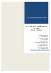 Class: International Business 60B MANAGEMENT INFORMATION SYSTEM FINAL PROJECT Group 6 Members: 1. Lê Duy Anh 2. Đường Thị Kim Dung 3. Chu Tiến Đạt 4. Phạm Mỹ Hạnh 5. Phạm Hoàng Khánh Linh 6. Hoàng Quỳnh Nhi 7. Nguyễn Thanh Thảo 8. Nguyễn Quỳnh Trang 9. Vũ Quang Vinh Management Information System Final Project Group 6 TABLE OF CONTENTS I. Business Problem ................................................................................................... 1 II. Business Context ................................................................................................. 1 1. Brief introduction of KFC .................................................................................... 1 2. Organizational chart ............................................................................................. 1 3. Core business process ........................................................................................... 2 4. Reasons for choosing the topic ............................................................................. 4 5. Expectation from the project ................................................................................ 4 III. Real World Investigation ................................................................................... 4 1. Interview with the manager .................................................................................. 4 2. Document study ................................................................................................... 5 3. Identification of requirements .............................................................................. 6 IV. BFD and ERD Models ........................................................................................ 6 1. BFD ...................................................................................................................... 6 2. ERD ...................................................................................................................... 7 V. Design the database for the selected business problem .................................. 8 VI. Implementation of database on Access ........................................................... 10 1. Tables ................................................................................................................. 10 2. Relationship ........................................................................................................ 14 3. Queries ................................................................................................................ 15 4. Forms .................................................................................................................. 18 5. Reports ................................................................................................................ 22 References.................................................................................................................... 31 i Management Information System Final Project Group 6 LIST OF ABBREVIATIONS KFC Kentucky Fried Chicken BFD Business Function Diagram ERD Entity Relationship Diagram MS Microsof TABLE OF FIGURES Figure 1 - Organizational Chart – Restaurant Team ...................................................... 2 Figure 2 - KFC’s goods and services design process ..................................................... 3 Figure 3 - KFC’s Supply Chain Management Process ................................................... 3 Figure 4 – KFC’s Ordering and Serving Process ........................................................... 4 Figure 5 - Business Function Diagram of the database .................................................. 6 Figure 6 - Entity Relationship Diagram of the database ................................................ 7 ii Management Information System Final Project Group 6 I. Business Problem Development of a database application for HR Management: Job Positions at KFC Tran Dai Nghia. II. Business Context 1. Brief introduction of KFC KFC (Kentucky Fried Chicken) is the world’s second-largest fast food restaurant chain which specializes in fried chicken. It was founded by Colonel Harland Sanders in Kentucky, America. After realizing the potential concept of restaurant franchising, KFC has opened its first franchise in Utah, and then gradually expand to the whole USA as well as other parts of the world. As in the early 2020, there are over 23,000 KFC outlets in more than 150 countries and territories worldwide. The image of Colonel Sanders has been used as the official logo of KFC up to this day, making him become a prominent figure of American cultural history. With the appearance of KFC, chicken became more popular in the fast food industry, diversifying the market that is previously dominated by hamburger. The original product of KFC is pressure-fried chicken pieces, seasoned with 11 herbs and spices recipe of Sanders. The menu has been expanded to offer other chicken products such as chicken fillet wraps and sandwiches, salads and other side dishes like French fries and coleslaw, desserts like egg tart and ice-cream, and soft drinks. Some of the famous slogans of KFC are "It's Finger Lickin' Good!", "Nobody does chicken like KFC", and "So good". In Vietnam, the first KFC restaurant was opened in Ho Chi Minh city in 1997. Up till now, the chain has appeared in 32 cities and provinces throughout Vietnam with over 140 restaurants. It has created work for more than 4000 people and has significantly contributed to Vietnam’s fast food industry. It also impact greatly on Vietnamese people’ consuming habit and Vietnamese culinary culture. 2. Organizational chart 1 Management Information System Final Project Group 6 Figure 1 - Organizational Chart – Restaurant Team (initiativeblog.com, 2018) 3. Core business process The core business processes of KFC include three main operating processes, which are: designing of goods and services, managing