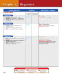 Section/Objectives Standards Lab and Demo Planning See page 14T for a key to the standards. Chapter Opener National Section 14.1 1. Describe the force in an elastic spring. 2. Determine the energy stored in an elastic spring. 3. Compare simple harmonic motion and the motion of a pendulum. Section 14.2 4. Identify how waves transfer energy without transferring matter. 5. Contrast transverse and longitudinal waves. 6. Relate wave speed, wavelength, and frequency. Section 14.3 7. Relate a wave’s speed to the medium in which the wave travels. 8. Describe how waves are reflected and refracted at boundaries between media. 9. Apply the principle of superposition to the phenomenon of interference. State/Local UCP.1, UCP.2, UCP.3, A.1, A.2, B.6 Student Lab: UCP.1, UCP.2, UCP.3, B.6 Teacher Demonstration: UCP.1, UCP.2, UCP.3, A.1, A.2, B.6, E.1, E.2, F.5, F.6 Student Lab: Launch Lab, p. 375: coiled spring Quick Demo, p. 382: spring, stopwatches Quick Demo, p. 383: spring Additional Mini Lab, p. 388: wave tank with projection system, stopwatch Mini Lab, p. 389: coiled spring toy Design Your Own Physics Lab, pp. 392–393: string (1.5 m), three sinkers, paper clip, ring stand with ring, stopwatch Differentiated Instruction 374A Level 1 activities should be appropriate for students with learning difficulties. Level 2 activities should be within the ability range of all students. Level 3 activities are designed for aboveaverage students. Legend — Transparency CD-ROM MP3 Videocassette DVD WEB Reproducible Resources and Transparencies Technology ™ includes: Interactive Teacher Edition ■ Lesson Planner with Calendar ■ Access to all Blacklines ■ Correlation to Standards ■ Web links FAST FILE Chapters 11–15 Resources, Chapter 14 Study Guide, pp. 111–116 Section 14-1 Quiz, p. 117 Connecting Math to Physics Interactive Chalkboard CD-ROM: Section 14.1 Presentation TeacherWorks™ CD-ROM Mechanical Universe: Harmonic Motion FAST FILE Chapters 11–15 Resources, Chapter 14 Transparency 14-1 Master, p. 125 Transparency 14-2 Master, p. 127 Study Guide, pp. 111–116 Enrichment, pp. 123–124 Section 14-2 Quiz, p. 118 Teaching Transparency 14-1 Interactive Chalkboard CD-ROM: Section 14.2 Presentation TeacherWorks™ CD-ROM Mechanical Universe: Introduction to Waves Teaching Transparency 14-2 Connecting Math to Physics Interactive Chalkboard CD-ROM: Section 14.3 Presentation TeacherWorks™ CD-ROM Problem of the Week at physicspp.com FAST FILE Chapters 11–15 Resources, Chapter 14 Transparency 14-3 Master, p. 129 Study Guide, pp. 111–116 Reinforcement, pp. 121–122 Section 14-3 Quiz, p. 119 Mini Lab Worksheet, p. 105 Physics Lab Worksheet, pp. 107–110 Teaching Transparency 14-3 Connecting Math to Physics Laboratory Manual, pp. 69–76 Assessment Resources FAST FILE Chapters 11–15 Resources, Chapter 14 Chapter Assessment, pp. 131–136 Additional Challenge Problems, p. 14 Physics Test Prep, pp. 27–28 Pre-AP/Critical Thinking, pp. 27–28 Supplemental Problems, pp. 27–28 Technology Interactive Chalkboard CD-ROM: Chapter 14 Assessment ExamView ® Pro Testmaker CD-ROM Vocabulary PuzzleMaker TeacherWorks™ CD-ROM physicspp.com 374B Chapter Overview The chapter introduces the concept of periodic motion and the nature and characteristics of mechanical waves. Several types of wave behavior—reflection, refraction, and interference—are discussed. What You’ll Learn • You will examine vibrational motion and learn how it relates to waves. • You will determine how waves transfer energy. • You will describe wave behavior and discuss its practical significance. Think About This Traditionally cited as an example of forced mechanical resonance, a phenomenon called aerodynamically induced self-excitation may have played a significant role. For more details about resonance and these types of waves, see pages 380 and 381. Key Terms periodic motion, p. 375 simple harmonic motion, p. 375 period, p. 375 amplitude, p. 375 Hooke’s law, p. 376 pendulum, p. 378 resonance, p. 380 wave, p 381 wave pulse, p 381 periodic wave, p 381 transverse wave, p 381 longitudinal wave, p 381 surface wave, p. 382 trough, p. 383 crest, p. 383 wavelength, p. 383 frequency, p. 384 incident wave. p. 387 reflected wave, p. 387 principle of superposition, p. 388 interference, p. 388 node, p. 389 antinode, p. 389 standing wave, p. 389 wave front, p. 390 ray, p. 390 normal, p. 391 law of reflection, p. 391 refraction, p. 391 374 Why It’s Important Knowledge of the behavior of vibrations and waves is essential to the understanding of resonance and how safe buildings and bridges are built, as well as how communications through radio and television are achieved. “Galloping Gertie” Shortly after it was opened to traffic, the Tacoma Narrows Bridge near Tacoma, Washington, began to vibrate whenever the wind blew (see inset). One day, the oscillations became so large that the bridge broke apart and collapsed into the water below. Think About This 䉴 How could a light wind cause the bridge in the inset photo to vibrate with such large waves that it eventually collapsed? physicspp.com 374 Michael T. Sedam/CORBIS, (inset)CORBIS • Remind students not to release the stretched springs. They can become very tangled and possibly cause injuries. Purpose to investigate the motion of pulses in a coiled spring Materials coiled spring Teaching Strategies • Allow students room to stretch the spring on the floor. Expected Results Steps 1 and 2 each generate a transverse pulse that reflects from the opposite end. Step 3 produces a compression wave that seems to travel faster than the transverse pulse. It also reflects. Step 4 produces a torsion pulse that also reflects. Section 14.1 How do waves behave in a coiled spring? Question How do pulses that are sent down a coiled spring behave when the other end of the spring is stationary? Procedure Analysis 1. Stretch out a coiled spiral spring, but do not overstretch it. One person should 
