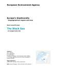 European Environment Agency Europe's biodiversity - biogeographical regions and seas Seas around Europe The Black Sea - an oxygen-poor sea Authors: Yu.P. Zaitsev B.G. Alexandrov N.A. Berlinsky, Institute of Biology of the Southern Seas (IBSS) A. Zenetos, National Centre for Marine Research, Greece (NCMR) Map production: UNEP/GRID Warsaw (final production) EEA Project Manager: Anita Künitzer (final edition) CONTENTS Summary 3 1 What are the characteristics of the Black Sea? 4 1.1 General characteristics 4 1.1.1 Hydrography 5 1.1.2 Climate 5 1.1.3 Population 5 1.2 Main influences 6 1.3 Main political instruments 6 1.4 Biodiversity status 6 1.4.1 Ecosystems and habitat types 7 1.4.2 Plankton and Benthos 7 1.4.3 Large fauna 9 2 What is happening to biodiversity in the Black Sea? 10 2.1 Eutrophication 10 2.2 Contamination and oil pollution 11 2.3 Water management/regulation 12 2.4 Fisheries 12 2.5 Alien species 15 3 Policies at work in the Black Sea 17 3.1 Nature protection 18 3.1.1 Protected areas 18 3.1.2 Red List species 19 3.2 Protection of marine resources by restrictions on fishing and hunting 19 3.3 Research and monitoring programmes 19 Bibliography 21 Summary · Nearly 87 % of the Black Sea is entirely anoxic (without oxygen) and contains high levels of hydrogen sulphide. This is the result of past geological events, its shape and its specific water balance (high degree of isolation from the world ocean, deep water depression with a maximum depth of 2 212 metres (m) in the centre of the sea, the extensive drainage basin and the large number of incoming rivers). · Deep pelagic and benthic organisms are largely absent. · The wide diversity of biotopes provides favourable conditions for invasion of alien species to the Black Sea. · The composition and structure of the marine communities is constantly changing with the decline of certain species and the expansion of others. · Generally, in undisturbed natural conditions species diversity in Black Sea fauna is approximately three times less than that in the Mediterranean. · Increasing salinity due to inappropriate water management and regulation, and pollution of brackish coastal lakes and estuaries represents a threat to relics and endemic species, especially in the Sea of Azov. · As a result of eutrophication, primary production has increased and the number of species has declined. These changes, as well as inappropriate fishing practices, have affected the fish stocks. A change towards small pelagic fish, i.e. anchovy and sprat, has been observed. · Deterioration of some marine habitats and a lack of laws and technology for regulating the introduction of alien species, for example via ballast waters, have allowed the invasion of such species. These have produced mass populations, which have changed the equilibrium of the native marine ecosystems. Growing concern for the fate of the Azov-Black Sea basin is stimulating a search for efficient countermeasures to combat unwanted alien settlers, since they are now the dominant species across the food web. · Overexploitation of fish stocks in combination with the invasion of the comb jellyfish Mnemiopsis leidyi has caused the collapse of the anchovy fish stocks in the Black Sea and the disappearance of the most valuable fish species. No overall management of fish stocks in the Black Sea is in place. 1. What are the characteristics of the Black Sea? 1.1 General characteristics Table 1: Statistics for the Black Sea Surface km2 Volume km3 Coastal length km Depth m average (max) Temperature Salinity ‰ ºC Average (max) average (max) The Black Sea proper (excluding the Sea of Azov) 423 000 547 000 4 740 1 315 (2 212) 11.0 (27) 17.5 (24) 11.5 (31) 11.65 (14) The Sea of Azov 37 860 324 . 14 Once a lake connected to the Caspian Sea, the Black Sea became connected to the Mediterranean after the opening of the Dardanelles in the interglacial period (100 000-150 000 years ago). It was then again isolated and only about 6 000 years ago reconnected to the Sea of Marmara and Mediterranean Sea (Zaitsev and Mamaev, 1997). The Turkish straits system - the Dardanelles, Bosporus and Marmara Sea - forms a transitional zone between the Mediterranean and the Black Sea. The special characteristics of this zone make it a barrier, a corridor or an acclimatisation zone for different organisms. To the north, the Kerch Strait, a shallow channel about 45 kilometres (km) long, connects the Black Sea to the Sea of Azov. Map 1: Black Sea physiography (depth distribution and main currents) Source: EEA, UNEP/GRID Warsaw final map production Map 2: Water circulation in the Black Sea Source: Compiled by ETC/MCE. 1.1.1 Hydrography Average temperature and salinity fall from west to east (Table 2). Table 2: Average surface temperature and salinity values in the surface layer of the Black Sea (BS) Turkish straits Temperature Dardanelles: º C 20.0 Bosporus: 19.4 Salinity ‰ Dardanelles: 38.7 Bosporus: 36.7 SE BS Centre BS NW BS Azov Sea 16 14–15 11–13 11.5 18.4– 20.6 Surface 17– 18 Deep 22– 24 < 10 11.7 1.1.2 Climate The Black Sea is situated in the temperate zone. Its climate is subtropical, of the Mediterranean type (summer sea temperatures exceed 25 ºC, in winter the open sea temperatures are 6-8 ºC). Only two areas, the south Crimea and Caucasian coasts, belong to the subtropical zone. The Sea of Azov has a continental climate (Bronfman, 1995); in winter the sea is covered by ice for two to three months. 1.1.3 Population The total population in the catchment area of the Black Sea is about 160 million, almost half of which is from non-coastal countries of the catchment area of the Danube (Mee, 1992). The Black Sea coastal zone is densely populated. It has a permanent population of about 6 million and another 4 million visitors during the summer tourist season. The longest and most densely populated zones are in Turkey and the Ukraine. The Bulgarian coastal zone is characterised by a large number of resorts