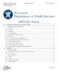 Department of Health Services Division of Medicaid Services P-00708 (11/2019) IRIS Policy Manual State of Wisconsin IRIS Policy Manual 1.0 Introduction to Include, Respect, I Self-Direct (IRIS)........................................................................................... 5 1.1 Background, Purpose and Philosophy..................................................................................................................... 5 1.1A Background ......................................................................................................................................................... 5 1.1B Purpose ................................................................................................................................................................ 6 1.1C Philosophy ........................................................................................................................................................... 6 1.1D Guiding Principles ............................................................................................................................................... 7 1.2 Structure, Roles and Responsibilities...................................................................................................................... 7 1.2A Participant............................................................................................................................................................ 7 1.2B Wisconsin Department of Health Services .......................................................................................................... 8 1.2C Aging and Disability Resource Centers (ADRCs) .............................................................................................. 9 1.2D Income Maintenance (IM) ................................................................................................................................. 11 1.2E IRIS Consultant Agencies (ICA) ....................................................................................................................... 11 1.2F IRIS Fiscal Employer Agent (FEA) .................................................................................................................. 12 1.2G IRIS Self-Directed Personal Care Agency (IRIS SDPC) .................................................................................. 13 2.0 Eligibility .................................................................................................................................................................. 14 2.1 Functional Eligibility ............................................................................................................................................ 14 2.1A Wisconsin Adult Long-term care Functional Screen (LTC FS) ........................................................................ 14 2.1B Level of Care ..................................................................................................................................................... 15 2.2 Financial Eligibility............................................................................................................................................... 16 2.2A Assets................................................................................................................................................................. 16 2.2B Income ............................................................................................................................................................... 16 2.2C Spousal Impoverishment ................................................................................................................................... 21 2.2D Ongoing Eligibility ............................................................................................................................................ 22 Page 1 of 85 Department of Health Services Division of Medicaid Services P-00708 (11/2019) 2.3 IRIS Policy Manual State of Wisconsin Nonfinancial Eligibility......................................................................................................................................... 22 2.3A Residency .......................................................................................................................................................... 22 2.3B IRIS Program Availability................................................................................................................................. 23 2.3C Community Living Arrangement ...................................................................................................................... 23 2.3D Need for Services .............................................................................................................................................. 24 2.4 4.0 Supplemental Security Income Exceptional Expense (SSI-E) .............................................................................. 25 Health and Safety .................................................................................................................................................... 26 4.1 Assessing Risk ...................................................................................................................................................... 26 4.2 Behavior Support .................................................................................................................................................. 27 4.3 Restrictive Measures ............................................................................................................................................. 27 4.4 Critical Incident Reporting.................................................................................................................................... 29 4.5 Emergency Backup Plan ......................................................................................................