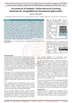 International Journal of Trend in Scientific Research and Development (IJTSRD) Volume 5 Issue 2, January-February 2021 Available Online: www.ijtsrd.com e-ISSN: 2456 – 6470 Assessment of Students’ Achievement of Learning Outcomes by using Different Assessment Approaches Soheir E. Mohamed Radiological Sciences Department, Applied Medical Sciences College, Najran University, Najran, Saudi Arabia ABSTRACT The present study was conducted on 1rtyear, radiological sciences students at Najran University to evaluate the achievement of undergraduate radiological sciences students in the CLOs assessment. Learning outcomes assessment for Introductory Physics 204 PHST-2 Year I at Department of Radiological sciences, Najran University was conducted by direct methods and compared the results of students’ achievement of the course learning outcomes by using different assessment approaches. The study was applied on30 students who enrolled in the course during academic year 2019-2020.Direct measurement was applied by linking of each CLO to exams questions on quizzes, midterm exams, final exams and Lab reports. The current study emphasizes that, both of the average and threshold approaches can examine the overall performance of the course, while the performance vector approach can display the distribution of students’ achievements of the course. How to cite this paper: Soheir E. Mohamed "Assessment of Students’ Achievement of Learning Outcomes by using Different Assessment Approaches" Published in International Journal of Trend in Scientific Research and Development (ijtsrd), ISSN: 2456-6470, Volume-5 | Issue-2, IJTSRD38464 February 2021, pp.565-569, URL: www.ijtsrd.com/papers/ijtsrd38464.pdf KEYWORDS: Course Learning Outcomes, assessment, average, threshold, vector performance Copyright © 2021 by author(s) and International Journal of Trend in Scientific Research and Development Journal. This is an Open Access article distributed under the terms of the Creative Commons Attribution License (CC BY 4.0) (http://creativecommons.org/licenses/by/4.0) INTRODUCTION: Outcomes based education (OBE) is a process that involves revising of the curriculum and assessment methods to reflect the achievement of high order learning[1].All curriculum and teaching decisions are made based on how best to facilitate the desired final outcome [2],[3].The unambiguous outcome is used to plan the curriculum, monitor its implementation, evaluate it and assess student’s achievement [4]. In outcomes-based education, the learning system should align the teaching methods and the assessment, and CLOs are achieved [5]-[7]. Combination of three approaches (average, threshold and performance vector) to evaluate the CLOs achievement were used in previous studies [8]-[10].Best practices for aligning assessment with learning outcomes, compares common testing modalities and the how to measure the outcome of student learning could be discussed by Jonathan D Kibble [11]. The calculating of CLOs is conducting by using a direct assessment method, and using these collected results as a catalyst for change and improvements, such as revising curricula and courses structure, improving the learning activities and enhancing the faculty teaching skills. Direct assessment methods available to measure student learning outcomes include locally developed exams that specifically track learning outcomes to student performance demonstrated by answers to specific exam questions, portfolios with rubrics, and capstone projects with rubrics @ IJTSRD | Unique Paper ID – IJTSRD38464 | [12]. Average, threshold, and performance vector approaches were used for CLOs assessments [13]-[15]. The aim of the present study is calculating the student’s achievement of course learning outcome of introductory physics course in applied medical sciences college by applying the three different assessments approaches. The assessment is a process of collect data to evaluate the attainment of PLOs. Different types of assessment are used to measure PLOs and CLOs as direct and indirect methods [16]-[19].A novel method evaluates the attainment level for course outcomes as well as program outcomes could be proposed by Sudheer et al [20].The result of CLOs measurements is used to assess the achievement of PLOs and to promote the quality of the teaching and learning processes in the specified course. The courses are mapped to PLOs by examining individual learning outcomes of each course. The students’ achievement of CLOs of each course are assessed. Every PLO is evaluated individually based on data collected from courses’ exams results, faculty, students, alumni, internship, and employers to measure its performance level [18],[21]. Methodology 204PHST-2 course is compulsory for radiological sciences students in Year I in applied medical sciences college at Najran University. 204 Physt-2 course is described by five CLOs which covered its topics. CLOs are listed in Table 1. Volume – 5 | Issue – 2 | January-February 2021 Page 565 International Journal of Trend in Scientific Research and Development (IJTSRD) @ www.ijtsrd.com eISSN: 2456-6470 CLO1 CLO2 CLO3 CLO4 CLO5 Table 1: CLOs statements Statement Identify the units and dimensions of the physical quantities. Explain the fundamental principles of mechanics, dynamics, energy, and momentum. Analyze the basic principles of electrical circuits and electromagnetic fields. Operate basic Laboratory equipment and collect data. Use graphical models to analyze laboratory data. Every CLO is assessed by at least by two assessment methods. The variation in the relative weight of each CLO is identified according to the weight of the topics covered by the CLO of the course. Data was collected on those assessments (exams, quizzes and lab reports) and analysed to evaluate the scores of students due to their achieving the CLOs. Three assessment approaches were applied to calculating CLOs of 204 PHST-2 course and the results of 30 enrolled