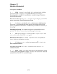 Chapter 23 Electrical Potential Conceptual Problems 1 • [SSM] A proton is moved to the left in a uniform electric field that points to the right. Is the proton moving in the direction of increasing or decreasing electric potential? Is the electrostatic potential energy of the proton increasing or decreasing? Determine the Concept The proton is moving to a region of higher potential. The proton’s electrostatic potential energy is increasing. 2 • An electron is moved to the left in a uniform electric field that points to the right. Is the electron moving in the direction of increasing or decreasing electric potential? Is the electrostatic potential energy of the electron increasing or decreasing? Determine the Concept The electron is moving to a region of higher electric potential. The electron’s electrostatic potential energy is decreasing. 3 • If the electric potential is uniform throughout a region of space, what can be said about the electric field in that region? Determine the Concept If V is constant, its gradient is zero; consequently the electric field is zero throughout the region. 4 • If V is known at only a single point in space, can E be found at that point? Explain your answer. Determine the Concept No. E can be determined without knowing V at a continuum of points. 5 •• [SSM] Figure 23-29 shows a point particle that has a positive charge +Q and a metal sphere that has a charge –Q. Sketch the electric field lines and equipotential surfaces for this system of charges. 2191 2192 Chapter 23 Picture the Problem The electric field lines, shown as solid lines, and the equipotential surfaces (intersecting the plane of the paper), shown as dashed lines, are sketched in the adjacent figure. The point charge +Q is the point at the right, and the metal sphere with charge −Q is at the left. Near the two charges the equipotential surfaces are spheres, and the field lines are normal to the metal sphere at the sphere’s surface. 6 •• Figure 23-30 shows a point particle that has a negative charge –Q and a metal sphere that has a charge +Q. Sketch the electric field lines and equipotential surfaces for this system of charges. Picture the Problem The electric field lines, shown as solid lines, and the equipotential surfaces (intersecting the plane of the paper), shown as dashed lines, are sketched in the adjacent figure. The point charge +Q is the point at the right, and the metal sphere with charge +Q is at the left. Near the two charges the equipotential surfaces are spheres, and the field lines are normal to the metal sphere at the sphere’s surface. Very far from both charges, the equipotential surfaces and field lines approach those of a point charge 2Q located at the midpoint. 7 •• Sketch the electric field lines and equipotential surfaces for the region surrounding the charged conductor shown in Figure 23-31, assuming that the conductor has a net positive charge. Electric Potential 2193 Picture the Problem The equipotential surfaces are shown with dashed lines, the field lines are shown in solid lines. It is assumed that the conductor carries a positive charge. Near the conductor the equipotential surfaces follow the conductor’s contours; far from the conductor, the equipotential surfaces are spheres centered on the conductor. The electric field lines are perpendicular to the equipotential surfaces. 8 •• Two equal positive point charges are separated by a finite distance. Sketch the electric field lines and the equipotential surfaces for this system. Picture the Problem The equipotential surfaces are shown with dashed lines, the electric field lines are shown with solid lines. Near each charge, the equipotential surfaces are spheres centered on each charge; far from the charges, the equipotential surface is a sphere centered at the midpoint between the charges. The electric field lines are perpendicular to the equipotential surfaces. 9 •• Two point charges are fixed on the x-axis. (a) Each has a positive charge q. One is at x = –a and the other is at x = +a. At the origin, which of the following is true? (1) (2) (3) (4) (5) E = 0 and V = 0, E = 0 and V = 2kq/a, E = 2kq a 2 iˆ and V = 0, E = 2kq a 2 iˆ and V = 2kq/a, ( ( ) ) None of the above. (b) One has a positive charge +q and the other has a negative charge –q. The positive point charge is at x = –a and the negative point charge is at x = +a. At the origin, which of the following is true? (1) E = 0 and V = 0, 2194 Chapter 23 (2) (3) (4) (5) E = 0 and V = 2kq/a, E = 2kq a 2 iˆ and V = 0, E = 2kq a 2 iˆ and V = 2kq/a, ( ( ) ) None of the above. Picture the Problem We can use Coulomb’s law and the superposition of fields to find E at the origin and the definition of the electric potential due to a point charge to find V at the origin. (a) Apply Coulomb’s law and the superposition of fields to find the electric field E at the origin: E = E +q at −a + E +q at +a The potential V at the origin is given by: V = V+q at −a + V+q at +a = kq ˆ kq ˆ i− 2 i =0 a2 a kq kq 2kq + = a a a and (2) is correct. = (b) Apply Coulomb’s law and the superposition of fields to find the electric field E at the origin: E = E +q at −a + E −q at +a The potential V at the origin is given by: V = V+ q at − a + V− q at + a ⎛ 2kq ⎞ ⎛ kq ⎞ ⎛ kq ⎞ = ⎜ 2 ⎟ iˆ + ⎜ 2 ⎟ iˆ = ⎜ 2 ⎟ iˆ ⎝a ⎠ ⎝a ⎠ ⎝ a ⎠ = kq k (− q ) + =0 a a and (3) is correct. 10 •• The electrostatic potential (in volts) is given by V(x, y, z) = 4.00 x + V0, where V0 is a constant, and x is in meters. (a) Sketch the electric field for this potential. (b) Which of the following charge distributions is most likely responsible for this potential: (1) A negatively charged flat sheet in the z = 0 plane, (2) a point charge at the origin, (3) a positively charged flat sheet in the x = 0 plane, or (4) a uniformly charged sphere centered at the origin. Explain your answer. ∂V ˆ i to find the electri