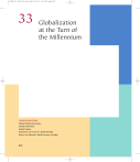 14820_33_878-906_r1ek.qxd 4/2/04 8:10 PM Page 878 33 Globalization at the Turn of the Millennium CHAPTER OUTLINE Global Political Economies Trends and Visions Global Culture ENVIRONMENT AND TECHNOLOGY: Global Warming DIVERSITY AND DOMINANCE: World Literature in English 878 14820_33_878-906_r1ek.qxd 4/2/04 8:10 PM Page 879 T he workday began normally at the World Trade Center in lower Manhattan on the morning of September 11, 2001. The 50,000 people who work there were making their way to the two 110-story towers, as were some 140,000 others who visit on a typical day. Suddenly, at 8:46 A.M., an American Airlines Boeing 767 with 92 people on board, traveling at a speed of 470 miles per hour (756 kilometers per hour), crashed into floors 94 to 98 of the north tower, igniting the 10,000 gallons (38,000 liters) of fuel in its tanks. Just before 9:03 A.M. a United Airlines flight with 65 people on board and a similar fuel load hit floors 78 to 84 of the south tower. As the burning jet fuel engulfed the collision areas, the buildings’ surviving occupants struggled through smoke-filled corridors and down dozens of flights of stairs. Many of those trapped above the crash sites used cell phones to say good-bye to loved ones. Rather than endure the flames and fumes, a few jumped to their deaths. Just before 10 o’clock, temperatures that had risen to 2,300˚ Fahrenheit (1,260˚ Celsius) caused the steel girders in the impacted area of the south tower to give way. The collapsing upper floors crushed the floors underneath one by one, engulfing lower Manhattan in a dense cloud of dust. Twenty-eight minutes later the north tower pancaked in a similar manner. Miraculously, most of the buildings’ occupants had escaped before the towers collapsed. Besides the people on the planes, nearly 2,600 lost their lives, including some 200 police officers and firefighters helping in the evacuation. That same morning another American Airlines jet crashed into the Pentagon, killing all 64 people on board and 125 others inside the military complex near Washington, D.C. Passengers on a fourth plane managed to overpower their hijackers, and the plane crashed in rural Pennsylvania, killing all 45 on board. The four planes had been hijacked by teams of Middle Eastern men who slit the throats of service and flight personnel and seized control. Of the nineteen hijackers, fifteen were from Saudi Arabia. All had links to an extremist Islamic organization, al Qaeda˚ (the base or foundation), supported by a rich Saudi named Usama bin Laden˚, who was incensed with American political, military, and cultural influence in the Middle East. The men were educated and welltraveled, had lived in the United States, and spoke English. Some had trained as pilots so that they could fly the hijacked aircraft. The hijackers left few records of their personal motives, but the acts spoke for themselves. The Pentagon was the headquarters of the American military, the most technologically sophisticated and powerful fighting force the world had even seen. The fourth plane was probably meant to hit the Capitol or the White House, the legislative and executive centers of the world’s only superpower. The Twin Towers may have been targeted because they were the tallest buildings in New York, but they were not just American targets. The World Trade Center housed 430 companies involved in international commerce and finance. Among the dead were people from more than half the countries in the world. New York was the site of the attack, but the World Trade Center was a powerful symbol of the international economy. The events of September 11 (9/11) can be understood on many levels. The hijackers and their supporters saw themselves as engaged in a holy struggle against economic, political, and military institutions they believed to be evil. They believed so deeply in their mission that they were willing to give their lives for it and to take as many other lives as they could. People directly affected and political leaders around the world tended to describe the attacks as evil acts against innocent victims. To understand why the nineteen attackers were heroes to some and terrorists to others, one needs to explore the historical context of global changes at the turn of the millennium and the ideological tensions they have generated. While the advancing economic, al Qaeda (ahl KIGH-duh or ahl kuh-EE-duh) (oo-SAH-mah bin LAH-din) Usama bin Laden 879 1st Pass Pages 1 2 3 4 5 6 7 8 9 10 11 12 13 14 15 16 17 18 19 20 21 22 23 24 25 26 27 28 29 30 31 32 33 34 35 36 37 38 39 40 41 42 43 44 45 46 47 48 49 50 51 52 R 53 L 14820_33_878-906_r1ek.qxd 4/2/04 8:10 PM Page 880 880 1 2 3 4 5 6 7 8 9 10 11 12 13 14 15 16 17 18 19 20 21 22 23 24 25 26 27 28 29 30 31 32 33 34 35 36 37 38 39 40 41 42 43 44 45 46 47 48 49 50 51 R 52 L 53 Chapter 33 Globalization at the Turn of the Millennium political, and cultural integration of the world is welcomed by some, it is hated or feared by others. The unique prominence of the United States in every major aspect of global integration also elicits sharply divergent views. As you read this chapter, ask yourself the following questions: ● What are the main benefits and dangers of growing political, economic, and cultural integration? ● What roles do religious beliefs and secular ideologies play in the contemporary world? ● How has technology contributed to the process of global interaction? GLOBAL POLITICAL ECONOMIES T he turn of the millennium saw the intensification of a globalization trend that had been building for some time. Growing trade and travel and new technologies were bringing all parts of the world into closer economic, political, and cultural integration and interaction. The collapse of the Soviet Union had completed the dissolution of empires that had been under way throughout the twentieth century. Autonomous national states (numbering about two hundred) became an almost universal norm, and a growing number