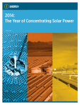 2014: THE YEAR OF CONCENTRATING SOLAR POWER 2014: The Year of Concentrating Solar Power May 2014 2014: THE YEAR OF CONCENTRATING SOLAR POWER Aerial view of the Crescent Dunes 540 foot power tower in Tonopah, Nevada. Photo Credit: SolarReserve, LLC. 2014: The Year of Concentrating Solar Power Across the nation, solar energy is taking off, with more Americans “going solar” every day. And, it’s not just solar panels popping up on the rooftops of homes; Americans are starting to adopt other forms of solar energy, as well. Concentrating solar power (CSP) is a technology that harnesses the sun’s energy potential and has the capacity to provide hundreds of thousands of customers in the United States with reliable renewable energy—even when the sun isn’t shining. The United States is particularly well suited for CSP because it leverages the nation’s abundant solar energy resources, particularly in the sun-drenched southwestern states. Every day, more energy falls on the United States—in the form of sunshine— than the country uses in an entire year. The year 2014 marks a significant milestone in the history of American solar energy. Through sustained, long-term investments by the United States Department of Energy (DOE) and committed industry partners, some of the most innovative CSP plants in the world connected to the United States electricity grid in 2013, and five plants of this kind are expected to be fully operational by the end of 2014. One of them is the largest CSP plant in the world; another represents a first-of-its-kind in energy storage technology at commercial scale in the United States. Collectively, these five CSP plants will nearly quadruple the preexisting capacity in the United States, creating a true CSP renaissance in America. By many measures, the solar energy industry has been one of the fastest growing industries in the United States over the last five years. By the end of 2013, the United States had more than 13 gigawatts of installed solar capacity—nearly 15 times the amount installed in 2008 and enough to power more than 2 million average American homes. DOE’s SunShot Initiative—launched by the Office of Energy Efficiency and Renewable Energy’s Solar Energy Technologies Office in 2011 as a national effort to make solar energy fully cost competitive with traditional energy sources by 2020—has played a critical role in solar energy’s recent success. The SunShot Initiative’s investments support innovation in solar energy technologies that are aimed at improving efficiency and reducing the cost of materials, as well as making it easier, faster, and cheaper for homeowners, businesses, and state, local, and tribal governments to “go solar.” Technology innovation is not the only area where DOE is contributing to the growth of solar in America. Through its Loan Programs Office (LPO), DOE is helping to finance the first deployments of innovative solar technologies, such as CSP, at a large scale. Projects employing technologies that are successfully demonstrated at a small scale with minimal large-scale applications often face difficulty securing the necessary capital for the initial commercial deployments. By providing loan guarantees for commercial-scale 2014: THE YEAR OF CONCENTRATING SOLAR POWER 3 projects using these newer technologies, DOE reduced the projects’ financial risk enabling new private investment in the CSP market. In addition to helping meet utility demand for clean energy, the five LPO-supported CSP plants have created thousands of construction and operations jobs. The growth of CSP has built a far-reaching domestic supply chain that reaches 39 states according to the projects’ sponsors. That supply chain includes international corporations that have invested in a U.S. solar market presence, as well as decades-old U.S. manufacturers that have been revived by this thriving new industry. All told, the United States solar industry employs more than 143,000 Americans, which is a jump of nearly 50,000 since 2010. What Makes CSP Unique A distinctive characteristic of CSP is that, when deployed with thermal energy storage, it can produce electricity on demand— providing a dispatchable source of renewable energy. Therefore, it can provide electricity whenever needed by an electric utility to meet consumer demand, performing like a traditional base-load power plant. CSP with thermal energy storage allows for more use of other renewable energy sources that provide variable or intermittent generation (such as wind and solar photovoltaic). Another distinction of CSP is its ability to integrate with fossil-based generation sources in “hybrid” configurations. Hybrid Solana, Photo Credit: Abengoa Solar, Inc. Crescent Dunes Tonopah, Nevada Mojave Near Barstow, California Ivanpah Dry Lake, California Genesis Blythe, California Solana Near Gila Bend, Arizona The five DOE-supported CSP projects are located in areas identified by the National Renewable Energy Laboratory as the most economically suitable lands available for deploying large-scale concentrating solar power plants in the southwest United States. systems combine traditional fossil-fuelpowered plants with emissions-free CSP technology to improve the performance of both systems. CSP is a key enabling technology in the “all-of-the-above” energy strategy for the United States. This report focuses on the current breakthroughs of CSP deployment in the United States and three key CSP technologies facilitating this shift to clean energy. It also highlights five commercial-scale United States CSP plants that demonstrate the capabilities of these cutting-edge technologies. Genesis, Photo Credit: NextEra Energy Sources, LLC The three key technologies are • Parabolic Trough • Power Tower • Thermal Energy Storage The five CSP projects profiled are • Crescent Dunes—Tonopah, Nevada • Genesis—Blythe, California • Ivanpah—Dry Lake, California • Mojave—near Barstow,