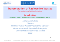 Transmuta)on of Radioac)ve Wastes Transmutación de Residuos Radiac)vos Introduc)on Master de Ciencia y Tecnología Nuclear @ European Master SARENA J. Manuel Perlado Director Ins4tuto Fusión Nuclear “Guillermo Velarde” Departamento de Ingeniería Enérge4ca Universidad Politécnica de Madrid 2020 1 February-May 2020 P&T of Radioac)ve Wastes: Introduc)on/ J.M. Perlado, N.C. Santamaría, Ins)tuto Fusión Nuclear "Guillermo Velarde" AREAS covered in the COURSE PARTITIONING AND TRANSMUTATION 1. 2. 3. 4. Why P&T? Defini)ons and Iden)fica)on of the PROBLEM AND SOLUTION General Understanding of Radioac)vity Genera)on in Nuclear Fission Cycle CLASIFICATION OF RADIOACTIVE WASTES Poten)al Alterna)ves of Radioac)ve Wastes Manipula)on depending in their ACTIVITY and LIFETIME 5. Basic Theory of Transmuta4on: Types of Par4cles Irradia4on and its efficiency 6. Methods of PARTITIONING of Radioac)ve Wastes: Aqueous and Pyro 7. Nuclear Systems for Transmuta4on: Cri4cal (Reactors) and Subcri4cal (Accelerator Driven Systems, ADS) 8. Advanced Reactors for New Efficient Fuel Cycle: Present and Future of Genera4on IV 9. Accelerator Driven Systems and Subcri4cal Systems and Laser driven Neutron Sources: basic theory, models, experiences and efficiency. 10. Na4onal and Interna4onal Programs 11. Poten)al Nuclear Prolifera)on due to the manipula)on in the Nuclear Fuel Cycle in P&T 12. Illicit Traffic of Radioac)ve Materials. 2 February-May 2020 P&T of Radioac)ve Wastes: Introduc)on/ J.M. Perlado, N.C. Santamaría, Ins)tuto Fusión Nuclear "Guillermo Velarde" EUROPEAN UNION Approximately 2500 about 25 tons of spent fuel containing tons of plutonium and 3.5 tons of ‘‘minor ac)nides’’ (MAs) neptunium, americium, and curium, as well as 3 tons of long-lived Fission Products (FPs) (out of a total of about 100 tons of FPs) are produced ANNUALLY in the European Union 3 February-May 2020 P&T of Radioac)ve Wastes: Introduc)on/ J.M. Perlado, N.C. Santamaría, Ins)tuto Fusión Nuclear "Guillermo Velarde" Volume and Ac)vity of Solid, Liquid and Gaseous Radioac)ve RAA Wastes HIGH RBMA MEDIUM/LOW VERY LOW ACTIVITY RBBA •Opera)on 365 days/year 1/3 Recharge per year Core: 100 tonnes of enriched Uranium, 30 MW per tonne 33 GW.day / tonne 4 February-May 2020 P&T of Radioac)ve Wastes: Introduc)on/ J.M. Perlado, N.C. Santamaría, Ins)tuto Fusión Nuclear "Guillermo Velarde" Radiotoxicity of natural uranium including daughter products = 20 Sv/kg We need to use 20.5 tonnes of Natural Uranium to extract 1 TWhe in a LWR with burn-up of 50 GWd/tHM 20 Sv/kg x 20500 kg/TWhe = 4.1 x February-May 2020 105 Sv/TWhe 5 P&T of Radioac)ve Wastes: Introduc)on/ J.M. Perlado, N.C. Santamaría, Ins)tuto Fusión Nuclear "Guillermo Velarde" Permanent Repository = Yucca Mountain (USA) Yucca Mountain is comprised of "tuff," a rock made from compacted volcanic ash formed more than 13 million years ago. Yucca Mountain has a desert climate and receives about six to seven inches of rain and snow per year. The Mountain has a deep water table. The repository would be built approximately 1,000 feet below the land surface and 1, 000 feet above the water table. Retain the dose limit of 15 millirem per year for the first 10,000 years aker disposal; Temporal Repositories of High Ac)vity Wastes in the World February-May 2020 Establish a dose limit of 100 millirem annual exposure per year between 10,000 years and 1 million years; 6 P&T of Radioac)ve Wastes: Introduc)on/ J.M. Perlado, N.C. Santamaría, Ins)tuto Fusión Nuclear "Guillermo Velarde" NUCLEAR FISSION E = mc2 / 200 MeV Energy + Fuel ….. And also Radioac4ve Wastes + CHAIN REACTION !!! but …………….. FISSION ALSO CAN BREAK (FRACTION) THE RADIOACTIVE WASTES !!!!!!.... Not all well done …. That’s OK for heavy elements … no for Fission Product….. 7 February-May 2020 FISSION PRODUCTS P&T of Radioac)ve Wastes: Introduc)on/ J.M. Perlado, N.C. Santamaría, Ins)tuto Fusión Nuclear "Guillermo Velarde" 8 February-May 2020 P&T of Radioac)ve Wastes: Introduc)on/ J.M. Perlado, N.C. Santamaría, Ins)tuto Fusión Nuclear "Guillermo Velarde" TRANSMUTATION OF NUCLEAR ISOTOPES • Descrip)on of the PROBLEM: SPENT FUEL – Severe increase of the Radio toxicity at end of life • Already jusIfy • RADIOTOXICITY – Poten)al pernicious effects by energy deposi)on in the human living and other life forms – Measured by the dose expressed in Sievert (rem) – Depending on Ac)vity, Type of Emired Par)cle and its Energy, Exposure Time • • • • February-May 2020 Ac)vity depends on decay constant: property of each isotope Par)cle: charged par)cle (α, β-, β+), neutron, radia)on, gamma) Energy: Higher Energy Higher dose Time: Higher Time Higher dose 9 P&T of Radioac)ve Wastes: Introduc)on/ J.M. Perlado, N.C. Santamaría, Ins)tuto Fusión Nuclear "Guillermo Velarde" Transmuta)on Objec)ves • Eliminate or reduce the amount of Long lived and High Ac)vity Radioac)ve Wastes by bombarding the nucleus with adequate par)cles to arrive to a stable or a low life)me isotope. • In our case the problem comes from Ac4nides or Long Lived Fission Products. • MAIN USEFUL NUCLEAR REACTION: FISSION !! – This is a problem with Fission Products destruc)on • Remember always that when using Fission we have a product that is ... Energy. 10 February-May 2020 P&T of Radioac)ve Wastes: Introduc)on/ J.M. Perlado, N.C. Santamaría, Ins)tuto Fusión Nuclear "Guillermo Velarde" R = N. σ.φ 11 February-May 2020 P&T of Radioac)ve Wastes: Introduc)on/ J.M. Perlado, N.C. Santamaría, Ins)tuto Fusión Nuclear "Guillermo Velarde" 12 February-May 2020 P&T of Radioac)ve Wastes: Introduc)on/ J.M. Perlado, N.C. Santamaría, Ins)tuto Fusión Nuclear "Guillermo Velarde" FAST REACTORS. FINAL SOLUTION ? ESTIMATED REDUCTION OF PLUTONIUM These are CEA (France) es)ma)on of how Fast Neutron Reactors (FNR) can reduce Pu Inventory when used in their mode of burners 13 February-May 2020 P&T of Radioac)ve Wastes: Introduc)on/ J.M. Perlad