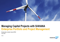 Managing Capital Projects with S/4HANA Enterprise Portfolio and Project Management Renato Zadro, Solution Owner EPPM July, 2020 PUBLIC Today’s Challenges of Project Organizations Complex Overview Current Projects Portfolio / Innovation Topics L2/L3 ▪ Disparate variety data, different sources ▪ No consolidated view ▪ Poor efficiency manual planning & monitoring Demand CAPEX Controller Customer Engagement Manager Sign off Project 1 Documentation Project 1 Program View Network Resources Build Team Manager Resources Project 1 Project Status Project 1 Build Team Expert Project Manager Network Project Project Team Member Network © 2019 SAP SE or an SAP affiliate company. All rights reserved. ǀ PUBLIC Program Challenges & Risks Resources Build Team Costs Project 1 Budget External Partners Approval Costs Project1 ▪ Difficult decision making, lack of integration on: ▪ Demand ▪ Project Portfolio ▪ Production Planning ▪ Resource Planning ▪ Financial / Controlling ▪ Changes, Issues, Risks ▪ Etc. Material All Build + PO 2 SAP S/4HANA – The Digital Core for Projects Digital Control Stakeholders Immediate Finance & Logistics Customers Ideas Sales Orders ▪ Single source of truth ▪ Instant access Portfolio Integrated Changes Approvals Project Proposal Budget Documents Revenues Digital Core S/4HANA Project Issues ▪ Platform that “connects” all project participants (internally and externally) ▪ Integration to business functions Costs Resources Risks Purchase Order Demand Time Entry Project Team Expert Resources © 2019 SAP SE or an SAP affiliate company. All rights reserved. ǀ PUBLIC Interactive Demand Digital Project Timeline & Deliverables ▪ Real-time project analytics ▪ Role-Based User Interface built on SAP Fiori Apps 3 Capital Projects Opportunities and Challenges 1,7 Tr. Energy Investments 2016* Align project investments with strategic business goals Balance asset operation and investments into new businesses Detect project variances early Central project repository © 2019 SAP SE or an SAP affiliate company. All rights reserved. ǀ PUBLIC * Taken from the report ‘World Energy Investment 2017’, published by the International Energy Agency on July 11 th, 2017 4 Enterprise Portfolio and Project Management A Project Management Platform “Enterprise” Portfolio and Project Management Portfolio Management Resource Management Project Management Capital “Manage and control enterprise wide, project related investments” R&D, Innovation “Optimize strategic resource & financial management of the innovation process” IT “Help IT organizations to align activities & resources with business strategy” Commercial “Manage customer project lifecycle from opportunity to billing and closure” © 2019 SAP SE or an SAP affiliate company. All rights reserved. ǀ PUBLIC 5 Capital Portfolio and Project Management End-to-End Process Business Process Strategy Project Proposal Project Planning Project Management Strategy Management ◼ Vision & Mission ◼ Define Corporate Goals ◼ Set Strategic Initiatives Procurement Execution Project Execution ◼ Phase Approvals ◼ Structure Project ◼ Project Accounting ◼ Schedule Tasks & Activities ◼ Time Recording ◼ Manage Milestones ◼ Milestones ◼ High Level Budget Planning Portfolio Management ◼ Identify Business Opportunities ◼ Risk Assessment ◼ Rank Project Proposals ◼ Budget Planning © 2019 SAP SE or an SAP affiliate company. All rights reserved. ǀ PUBLIC Monitoring Project Analytics Project Procurement ◼ Plan int./external Resource Demand ◼ Schedule Purchase Orders ◼ Progress Tracking ◼ Budget Control ◼ Plan vs. Actual ◼ Track availability of Resources 6 Personas in Capital Portfolio and Project Management Strategy Officer Strategy Project Proposal Portfolio Management © 2019 SAP SE or an SAP affiliate company. All rights reserved. ǀ PUBLIC Project Planning Procurement Execution Monitoring Project Management 7 Key Personas in Capital Projects Mission & Goals – Strategy Management ◼ Facilitating and driving key strategic initiatives ◼ Executing and monitor corporate strategic initiatives ◼ Ensuring departmental/unit strategic planning projects reflect organizational strategic priorities Do the right projects – Project Portfolio Management ◼ Complete visibility of all current and proposed projects ◼ Plan and forecast financials and capacity demands for sound decision support ◼ Make decisions on clear and valuable information like portfolio value, balance, financial figures and strategic alignment ◼ Know your current projects as well as your capabilities Do the projects right – Project Management ◼ Managing scope, timeline and budget of projects in an integrated way ◼ Plan and monitor your detailed project costs and cash flow ◼ Track and control the execution and progress of your projects ◼ Manage project risks and changes © 2019 SAP SE or an SAP affiliate company. All rights reserved. ǀ PUBLIC 8 Strategic Portfolio Planning and Reporting Strategy Project Proposal Project Planning Procurement Execution Monitoring Gain Insights into Portfolio Performance ▪ Digital Board Room ▪ Aggregated Project Information ▪ Investment Categories ▪ Budget availability ▪ Financial and Capacity situation ▪ Project Risk vs Reward ▪ Portfolio Analytics © 2019 SAP SE or an SAP affiliate company. All rights reserved. ǀ PUBLIC 9 SAP Portfolio and Project Management Simplified Object Structure Portfolios Buckets Project-Portfolio Portfolio-Bucket Aggregated Financial & Capacity Planning Q1 Q2 Q3 Portfolio-Bucket Q4 1:n Initiative/ Item Portfolio-Bucket Review Program (Initiative) Q1 Q2 Q3 Q4 1:n Project (Item) Operational Projects 1:1 Detailed € € € Cost & Resource Planning © 2019 SAP SE or an SAP affiliate company. All rights reserved. ǀ PUBLIC Operational Project 1:1 PS Project (WBS) / CO Internal Order 10 Create Project Request Strategy Project Proposal 