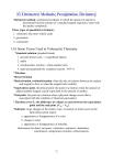 13 Titrimetric Methods; Precipitation Titrimetry Titrimetric method: analytical procedures in which the amount of analyte is determined from the amount of a standard reagent required to react with the analyte completely. Three types of quantitative titrimetry 1. volumetric (the most widely used) 2. gravimetric 3. coulometric 13A Some Terms Used in Volumetric Titrimetry *Standard solution (standard titrant) 1. accurate known conc. : 4 significant figures 2. stable 3. stoichiometric reaction : whole-number ratio 4. rapid and quantitatively complete reaction : 99.9 % *Titration *Direct titration *Back-titration, residual-titration: when the rate of reaction between the analyte and reagent is slow or when the reagent lacks stability. *Equivalence point, theoretical point: the point in a titration when the amount of added standard reagent exactly equivalent to the amount of analyte. *End point: the point in a titration when a physical change occurs that is associated with the condition of chemical equivalence. *Titration error Et: the difference in volume or mass between the equivalence point and the end point. (Vep – Veq) *Indicator: large changes in the relative conc. of analyte or titrant occur in the equivalence-point region. a. appearance or disappearance of a color. b. change in color c. appearance or disappearance of turbidity. Instruments for detect end point: voltmeters, ammeters, ohmmeters, colorimeters, temperature recorders, refractometers. 72 Fig. 13-1 The titration process *Primary standards: 1. high purity 2. stability in air 3. absence of hydrate water 4. ready availability at modest cost 5. reasonable solubility in the titration medium 6. reasonably large formula weight *Secondary standard 13B Standard Solutions *Standardization, establishing the conc. of standard soln. 1. Direct method: carefully weighed quantity of a primary standard → dissolved → diluted to an exactly known volume. 2. Standardized by titrating a. a weighed quantity of a primary standard b. a weighed quantity of a secondary standard c. a measured volume of another standard soln secondary standard solution *Methods for expressing the conc. of standard solutions a. molarity C : no. of moles/L soln b. normality CN : no. of equivalent/L soln. 13C Volumetric calculations amount A (mol) = mass A (g) mol = V(L) × C A ( ) molar mass A (g/mol) L amount A (mmol) = mass A (g) mmol = V(mL) × C A ( ) molar mass A (g/mmol) mL 73 *Calculation of the Molarity of Standard Solutions (SS) Ex. 13-1. Describe the preparation of 2.000 L of 0.0500 M AgNO3 (169.87 g/mol) from the primary standard-grade solid. amount AgNO3 = 0.050 L × 2.000 mol/L = 0.1000 mol mass AgNO3 = 0.1000 mol × 169.87 g/mol =16.98 g dissolving 16.98 g AgNO3 in water and diluting to 2.000 L. Ex. 13-2. Describe how 500 mL of standard 0.0100 M Na+ solution can be prepared from primary standard Na2CO3(105.99 g/mol). amount Na2CO3 = 500 mL × 0.0100 mmol/mL × ½ = 2.50 mmol mass Na2CO3 = 2.50 mmol × 0.10599 g/mmol = 0.265 g → dissolving 0.265 g Na2CO3 in water and diluting to 500 mL. Ex. 13-3. How would you prepare 50.0-mL portions of SS that are 0.00500 M, 0.00200 M and 0.00100 M in Na+ from the soln in Ex. 2? Vconcd × Cconcd = Vdil × C dil Vdil × Cdil 50.0mL × 0.00500mmol Na + / mL Vconcd = = = 25.0mL Cconcd 0.0100mmol Na + / mL + 0.0100 M Na soln 0.00500M 25.0 mL 0.00200M 10.0 mL 0.00100M 5.00 mL Ex. 13-4. Describe how you would prepare 2.0 L of approximate 0.25 M HClO4 (100.46 g/mol) from the conc. reagent, which has a specific gravity of 1.67 g/mL and contains 71 % (w/w) HClO4. CHClO4 = 1.67 (g/mL)/0.10046 (g/mmol) × 0.71 = 11.8 M no. mmol HClO4 required = 2000 mL × 0.25 mmol/mL = 500 mmol vol conc. reagemnt = 500 mmol/11.8 (mmol/mL) = 42.4 conc. reagent → diluted about 42 mL of 71 % HClO4 to 2.0 L. *Calculation of Molarities from Standardization Data Ex. 13-5. A 50.00-mL of an HCl solution required 29.71 mL of 0.01963 M Ba(OH)2 to reach an end point with bromocresol green indicator. Calculate the molarity of the HCl. Ba(OH)2 + 2HCl → BaCl2 + 2H2O 1 mmol Ba(OH)2 reacts with 2 mmol of HCl amount Ba(OH)2 = 29.71 mL × 0.01963 mmol/mL = 0.5832 mmol amount HCl = 2 × 0.5832 = 1.1664 mmol (29.71 × 0.01963 × 2) mmol HCl C HCl = = 0.023328 M = 0.0233 M 50.0 mL soln 74 Ex. 13-6. Titration of 0.2121 g pure Na2C2O4 (134.00 g/mol) required 43.31 mL KMnO4. What is the molarity of the KMnO4 soln? 2MnO4- + 5C2O42- + 16H+ → 2Mn2+ + 10CO2 + 8H2O stoichiometric ratio = amount Na2C2O4 = 2 mmol KMnO 4 5 mmol Na 2C 2O 4 0.2121 g 0.13400 g/ mmol amount KMnO4 = 0.2121 mmol × 2 0.13400 5 0.2121 2 × ) mmol 0 . 1340 5 = 0.01462 M C KMnO 4 = 43.31 mL ( *Calculation the Quantity of Analyte from Titration Data Ex. 13-7. A 0.8040-g sample of an iron ore is dissolved in acid. The iron is then reduced to Fe2+ and titrated with 47.22 mL of 0.02242 M KMnO4 solution. Calculate the results of this analysis in term of (a) % Fe (55.847 g/mol); and (b) % Fe3O4 (231.54 g/mol). MnO4- + 5Fe2+ + 8H+ → Mn2+ + 5Fe3+ + 4H2O (a). stoichiometric ratio = 5 mmol Fe 2 + 1 mmol KMnO 4 amount KMnO4 = 47.22 mL × 0.02242 mol/L = 1.0587 mmol amount Fe2+ = 47.22 mL × 0.02242 mol/L × 5 = 5.2934 mmol mass Fe2+ = 5.2934 mmol × 0.055847 g/mmol = 0.2956 g percent Fe2+ = (47.22 × 0.02242 × 5 × 0.055847) g × 100% = 36.77% 0.8040 g sample (b). stoichiometric ratio: = 5 Fe2+ ≡ 1 MnO45 Fe3O4 ≡ 15 Fe2+ ≡ 3 MnO4amount KMnO4 = 47.22 mL × 0.02242 mol/L = 1.0587 mmol amount Fe3O4 = 47.22 mL × 0.02242 mol/L × 5/3 = 1.76445 mmol mass Fe3O4 = 1.76445 mmol × 0.23154 g/mmol = 0.4085 g 5 ( 47.22 × 0.02242 × ) × 0.23154g 3 percent Fe3O4 = × 100% = 50.81% 0.8040 g sample 75 Ex.13-8. A 100.0-mL sample of brackish water was made ammonical, and the sulfide it contained was titrated with 16.47 mL of 0.02310 M AgNO3. The analytical reaction is 2Ag+ + S2- → Ag2S(s) Calculate [H2S] in the water in ppm. 1 (16.47 × 0.02310 × ) × 0.034802g 2 [H 2S] = × 10 6 ppm = 66.2 ppm H 2S 100.0 mL 