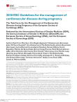 European Heart Journal (2018) 00, 1–83 doi:10.1093/eurheartj/ehy340 ESC GUIDELINES 2018 ESC Guidelines for the management of cardiovascular diseases during pregnancy The Task Force for the Management of Cardiovascular Diseases during Pregnancy of the European Society of Cardiology (ESC) Endorsed by: the International Society of Gender Medicine (IGM), the German Institute of Gender in Medicine (DGesGM), the European Society of Anaesthesiology (ESA), and the European Society of Gynecology (ESG) Authors/Task Force Members: Vera Regitz-Zagrosek* (Chairperson) (Germany), Jolien W. Roos-Hesselink* (Co-Chairperson) (The Netherlands), Johann Bauersachs ! (Czech (Germany), Carina Blomström-Lundqvist (Sweden), Renata C!ıfkova Republic), Michele De Bonis (Italy), Bernard Iung (France), Mark Richard Johnson (UK), Ulrich Kintscher (Germany), Peter Kranke1 (Germany), Irene Marthe Lang (Austria), Joao Morais (Portugal), Petronella G. Pieper (The Netherlands), Patrizia Presbitero (Italy), Susanna Price (UK), Giuseppe M. C. Rosano (UK/Italy), Ute Seeland (Germany), Tommaso Simoncini2 (Italy), Lorna Swan (UK), Carole A. Warnes (USA) * Corresponding authors. Vera Regitz-Zagrosek, Charité Universitaetsmedizin Berlin, Institute for Gender in Medicine, CCR, DZHK, partner site Berlin, Hessische Str 3-4, 10115 Berlin, Germany, Tel: þ49 30 450 525 288, Fax: þ49 30 450 7 525 288, E-mail: vera.regitz-zagrosek@charite.de. Jolien W. Roos-Hesselink, Department of Cardiology, Erasmus Medical Center Rotterdam, Dr Molewaterplein 40, 3015CGD, Rotterdam, Netherlands, Tel: þ31 10 7032432, E-mail: j.roos@erasmusmc.nl ESC Committee for Practice Guidelines (CPG) and National Cardiac Societies document reviewers: listed in the Appendix. 1 Representing the European Society of Anaesthesiology (ESA) 2 Representing the European Society of Gynecology (ESG) ESC entities having participated in the development of this document: Associations: Acute Cardiovascular Care Association (ACCA), European Association of Cardiovascular Imaging (EACVI), European Association of Percutaneous Cardiovascular Interventions (EAPCI), European Heart Rhythm Association (EHRA), Heart Failure Association (HFA). Councils: Council on Cardiovascular Nursing and Allied Professions, Council on Cardiovascular Primary Care, Council on Hypertension, Council on Valvular Heart Disease. Working Groups: Aorta and Peripheral Vascular Diseases, Cardiovascular Pharmacotherapy, Cardiovascular Surgery, Grown-up Congenital Heart Disease, Myocardial and Pericardial Diseases, Pulmonary Circulation and Right Ventricular Function, Thrombosis. The content of these European Society of Cardiology (ESC) Guidelines has been published for personal and educational use only. No commercial use is authorized. No part of the ESC Guidelines may be translated or reproduced in any form without written permission from the ESC. Permission can be obtained upon submission of a written request to Oxford University Press, the publisher of the European Heart Journal and the party authorized to handle such permissions on behalf of the ESC (journals.permissions@oxfordjournals.org). Disclaimer. The ESC Guidelines represent the views of the ESC and were produced after careful consideration of the scientific and medical knowledge and the evidence available at the time of their dating. The ESC is not responsible in the event of any contradiction, discrepancy and/or ambiguity between the ESC Guidelines and any other official recommendations or guidelines issued by the relevant public health authorities, in particular in relation to good use of health care or therapeutic strategies. Health professionals are encouraged to take the ESC Guidelines fully into account when exercising their clinical judgment as well as in the determination and the implementation of preventive, diagnostic or therapeutic medical strategies. However, the ESC Guidelines do not override in any way whatsoever the individual responsibility of health professionals to make appropriate and accurate decisions in consideration of each patient’s health condition and in consultation with that patient and the patient’s caregiver where appropriate and/or necessary. Nor do the ESC Guidelines exempt health professionals from taking careful and full consideration of the relevant official updated recommendations or guidelines issued by the competent public health authorities in order to manage each patient’s case in light of the scientifically accepted data pursuant to their respective ethical and professional obligations. It is also the health professional’s responsibility to verify the applicable rules and regulations relating to drugs and medical devices at the time of prescription. C The European Society of Cardiology and The European Society of Hypertension 2018. All rights reserved. For permissions please email: journals.permissions@oup.com. V Downloaded from https://academic.oup.com/eurheartj/advance-article-abstract/doi/10.1093/eurheartj/ehy340/5078465 by guest on 25 August 2018 ESC Guidelines 2 Document Reviewers: Christi Deaton (CPG Review Coordinator) (UK), Iain A. Simpson (CPG Review Coordinator) (UK), Victor Aboyans (France), Stefan Agewall (Norway), Emanuele Barbato (Italy), Pavel Calda2 (Czech Republic), Antonio Coca (Spain), Ioan Mircea Coman (Romania), Julie De Backer (Belgium), Victoria Delgado (The Netherlands), Giovanni Di Salvo (UK), Samantha Fitzsimmons (UK), Donna Fitzsimons (UK), Madalina Garbi (UK), Sofie Gevaert (Belgium), Gerhard Hindricks (Germany), Guillaume Jondeau (France), Jolanda Kluin (The Netherlands), Christos Lionis (Greece), Theresa A. McDonagh (UK), Pascal Meier (UK/Switzerland), Philip Moons (Belgium), Antonis Pantazis (UK), Massimo Francesco Piepoli (Italy), Bianca Rocca (Italy), Marco Roffi (Switzerland), Stephan Rosenkranz (Germany), Andrea Sarkozy (Belgium), Evgeny Shlyakhto (Russia), Candice K. Silversides (Canada), Karen Sliwa (South Africa), Miguel Sousa-Uva (Portugal), Juan Tamargo (Spa