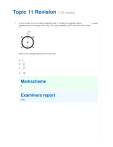 Topic 11 Revision [129 marks] 1. A ring of area S is in a uniform magnetic field X. Initially the magnetic field is [1 mark] perpendicular to the plane of the ring. The ring is rotated by 180° about the axis in time T. What is the average induced emf in the ring? A. 0 B. XS 2T C. XS T D. 2XS T Markscheme D Examiners report [N/A] The graph shows the variation of the peak output power P with time of an alternating 2. The graph shows the variation of the peak output power P with time of an alternating current (ac) generator. [1 mark] Which graph shows the variation of the peak output power with time when the frequency of rotation is decreased? Markscheme C Examiners report [N/A] A current of 1.0 × 10 –3 A flows in the primary coil of a step-up transformer. The number 3. A current of 1.0 × 10 –3 A flows in the primary coil of a step-up transformer. The number [1 mark] of turns in the primary coil is Np and the number of turns in the secondary coil is Ns. One coil has 1000 times more turns than the other coil. What is Np Ns and what is the current in the secondary coil for this transformer? Markscheme A Examiners report [N/A] 4. Four identical capacitors of capacitance X are connected as shown in the diagram. What is the effective capacitance between P and Q? X 3 A. B. X 4X 3 C. D. 4X Markscheme C [1 mark] Examiners report [N/A] A lighting system consists of two long metal rods with a potential difference maintained between them. Identical lamps can be connected between the rods as required. The following data are available for the lamps when at their working temperature. Lamp specifications 24 V, 5.0 W Power supply emf 24 V Power supply maximum current 8.0 A Length of each rod 12.5 m Resistivity of rod metal 7.2 × 10–7 Ω m 5a. Each rod is to have a resistance no greater than 0.10 Ω. Calculate, in m, the [3 marks] minimum radius of each rod. Give your answer to an appropriate number of significant figures. Markscheme ALTERNATIVE 1: r = √ πR OR √ 7.2×π10×0.1×12.5 ✔ −7 ρl r = 5.352 × 10 −3 ✔ 5.4 × 10 −3 «m» ✔ For MP2 accept any SF For MP3 accept only 2 SF For MP3 accept ANY answer given to 2 SF ALTERNATIVE 2: A= 7.2×10−7×12.5 0.1 ✔ r = 5.352 × 10−3 ✔ 5.4 × 10−3 «m» ✔ For MP2 accept any SF For MP3 accept only 2 SF For MP3 accept ANY answer given to 2 SF Examiners report [N/A] 5b. Calculate the maximum number of lamps that can be connected between the rods. Neglect the resistance of the rods. [2 marks] Markscheme current in lamp = 5 24 «= 0.21» «A» OR n = 24 × 8 5 ✔ so «38.4 and therefore» 38 lamps ✔ Do not award ECF from MP1 Examiners report [N/A] 5c. One advantage of this system is that if one lamp fails then the other lamps in the [1 mark] circuit remain lit. Outline one other electrical advantage of this system compared to one in which the lamps are connected in series. Markscheme when adding more lamps in parallel the brightness stays the same ✔ when adding more lamps in parallel the pd across each remains the same/at the operating value/24 V ✔ when adding more lamps in parallel the current through each remains the same ✔ lamps can be controlled independently ✔ the pd across each bulb is larger in parallel ✔ the current in each bulb is greater in parallel ✔ lamps will be brighter in parallel than in series ✔ In parallel the pd across the lamps will be the operating value/24 V ✔ Accept converse arguments for adding lamps in series: when adding more lamps in series the brightness decreases when adding more lamps in series the pd decreases when adding more lamps in series the current decreases lamps can’t be controlled independently the pd across each bulb is smaller in series the current in each bulb is smaller in series in series the pd across the lamps will less than the operating value/24 V Do not accept statements that only compare the overall resistance of the combination of bulbs. Examiners report [N/A] A step-down transformer is used to transfer energy to the two rods. The primary coil of this A step-down transformer is used to transfer energy to the two rods. The primary coil of this transformer is connected to an alternating mains supply that has an emf of root mean square (rms) magnitude 240 V. The transformer is 95 % efficient. 5d. Outline how eddy currents reduce transformer efficiency. [2 marks] Markscheme «as flux linkage change occurs in core, induced emfs appear so» current is induced ✔ induced currents give rise to resistive forces ✔ eddy currents cause thermal energy losses «in conducting core» ✔ power dissipated by eddy currents is drawn from the primary coil/reduces power delivered to the secondary ✔ Examiners report [N/A] 5e. Determine the peak current in the primary coil when operating with the maximum number of lamps. [4 marks] Markscheme power = 190 OR 192 «W» ✔ required power = 190 × so 200 240 100 95 «200 or 202 W» ✔ = 0.83 OR 0.84 «A rms» ✔ peak current = « 0.83 × √2 OR 0.84 × √2» = 1.2/1.3 «A» ✔ Examiners report [N/A] A small electric motor is used with a 12 mF capacitor and a battery in a school experiment. When the switch is connected to X, the capacitor is charged using the battery. When the switch is connected to Y, the capacitor fully discharges through the electric motor that raises a small mass. 6a. The battery has an emf of 7.5 V. Determine the charge that flows through the motor when the mass is raised. Markscheme charge stored on capacitor = 12 × 10 −3 × 7.5 = 0.09 «C» ✔ [1 mark] Examiners report [N/A] 6b. The motor can transfer one-third of the electrical energy stored in the capacitor into gravitational potential energy of the mass. Determine the maximum height through which a mass of 45 g can be raised. [2 marks] Markscheme energy stored in capacitor « 12 CV2 or height = « 13 × 0.338 9.81×4.5×10−2 1 QV 2 =» 1 2 × 12 × 10−3 × 7.52 «= 0.338 J» ✔ =» 0.25/0.26 «m» Allow use of g = 10 m s −2 which gives 0.25 