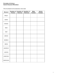 Principles of Science Atomic Structure Worksheet Fill in the blanks for the elements in this chart. Element Number of Protons Number of Neutrons Number of Electrons Mass Number Atomic Number lithium carbon chlorine silver lead calcium tantalum radium samarium uranium americium lawrencium 1 Principles of Science Protons, Neutron, Electrons Practice Fill in the blanks in the following worksheet. Please keep in mind that the isotope represented by each space may NOT be the most common isotope or the one closest in atomic mass to the value on the periodic table. Atomic symbol Atomic number Protons Neutrons Electrons B Atomic mass 6 11 24 31 37 39 29 89 35 43 100 207 Pb 102 89 Mo 70 225 53 81 100 206 159 No Yb 261 172 106 159 2 Principles of Science Atomic Notation Fill in the blanks in the following worksheet. Please keep in mind that the isotope represented by each space may NOT be the most common isotope or the one closest in atomic mass to the value on the periodic table. element hydrogen hydrogen atomic notation 1 1H atomic number mass number 9 19 number of protons number of neutrons 16 17 number of electrons H 2 1 fluorine sulfur 16 34 36 16 29 O 8 29 6 14 14 15 Uranium 34 7 7 238 234 92 2 2 2 1 3 Principles of Science How Do Isotopes Differ? Directions: Most elements exist in nature as isotopes. Isotopes of an element are almost identical in their chemical properties and reactions. However, the nuclear properties of isotopes are different. Not only do isotopes differ in mass, but some may be radioactive. Using a periodic table, complete the information in the chart below. 4 Principles of Science Structure of the Atom Directions: Answer the following questions on the lines provided. 1. How is the chemical symbol of an element determined? 2. Of what are atoms composed? 3. Are electrons, protons, or neutrons the smallest particles? If not, what are? 4. How many types of quarks are there and what is the name of one of them? 5. Why do scientists use models to study atoms? 6. Why has the atomic model changed over time? 7. Why is the current atomic model called the “Electron Cloud Model”? Directions: Match the term in Column I with the definition in Column II. Write the letter of the correct definition in the blank at the left. Column I _____ 8. electron _____ 9. neutron _____ 10. nucleus _____ 11. proton _____ 12. quark Column II a. positively charged particle b. negatively charged particle c. neutral particle d. Smaller particles that make up protons and neutrons e. positively charged center of an atom 5 Principles of Science Structure and Mass Reinforcement Directions: Use the terms below to complete the following paragraphs about atoms , atomic mass, and isotopes. Terms may be used more than once. six number cloud neutron(s) proton(s) electrons isotopes mass quarks electron six protons The electron has very little mass compared to the 1._______________ or 2._______________. The mass of the atom depends on the nucleus and how many 3._______________ and 4._______________ i t has. The sum of the protons and neutrons is the mass 5._______________ of an atom. The number of neutrons in an atom can be found by subtracting the atomic number from the 6. _______________ number. The mass of the atom is so small that there is a measure called the atomic 7. _______________ unit, designated by amu. 8._______________ and 9._______________ found in the nucleus are made up of 10._______________ . There are 11._______________ uniquely different quarks. 12._______________ are found in an area around the nucleus called the 13. _______________. The nuclei of all atoms of a given element always have the same number of 14. _______________ . They will also have the same number of 15._______________ around the nucleus. Some atoms may have more or fewer 16._______________ than other atoms of the same element. Atoms of the same element with different numbers of neutrons are called 17._______________. Every atom of carbon must contain 18._______________ but some contain six neutrons and others have eight. 6 Principles of Science Masses of Atoms Directions: Answer the following questions in the space provided. 1. What are isotopes? 2. How do boron-10 and boron-11 differ? 3. What is the average atomic mass of an element? 4. Compare and contrast the atomic structures of the chlorine-35 and chlorine-37 isotopes. 5. Suppose that a newly discovered element called centium has three isotopes that occur in nature. These are centium-200, centium-203, and centium-209. Assume that these isotopes occur in equal amounts in nature. What will be the average atomic mass of this element? 7 Principles of Science Isotopic Abundance Practice Problems The atomic mass for each element appearing on the periodic table represents the weighted average of masses for each individual isotope of an element. For example, the atomic mass of carbon is reported as 12.011 amu (atomic mass units). Carbon is composed primarily of two isotopes; carbon-12 and carbon-14. The atomic mass is calculated using both the relative abundance and the masses for each of these two isotopes. Using the equation below, the atomic mass for carbon can be calculated. atomic mass = (m ass1 x %1) + (mass2 x %2 ) + . . . Carbon-12 accounts for 99.45% of all of the carbon atoms, while carbon-14 only accounts for the remaining 0.55%. Since the carbon-12 isotope is more abundant, its mass is weighted more in the calculation of carbon’s atomic mass. The calculation of the atomic mass is shown below. atomic mass = (12.000 ⋅ 0.9945) + (14.003 ⋅ 0.0055) atomic mass = (11.934) + (0.077) = 12.011 amu Directions: Use the equation for atomic mass to complete the following problems. 1. Argon has three naturally occurring isotopes: argon-36, argon-38, and argon-40. Based on argon’s reported atomic mass, which isotope exist as the most abundant in nature? Explain. 2. Copper exists as a mixture of two isotopes. Copper-63 is 69.17% abundant and it has a mass of 62.9296 amu. Coppe
