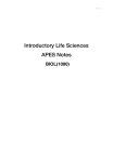 Page 1 Emma Stein Introductory Life Sciences APES Notes BIOL(1000) 2018 Page 3 Animal Structure and Function – Prof Graham Alexander The Circulatory System: ↳ Rapid transport system Functions of the Circulatory System: 1. Nutrient and waste transport: - Ingestion ➞ digestion ➞ absorption ➞ assimilation ➞ egestion ➞ excretion 2. Oxygen and carbon dioxide transport: - Oxygen is used by the circulatory system for metabolism - Carbon dioxide is therefore the byproduct 3. Thermoregulation (physiological): - Regulation of body temperature is split into two categories: ↳ Physiological and behavioural 4. Hormone control: - Hormones are transported from the place of manufacture to the location of use by the circulatory system 5. Body defences: - The lymphatic system 6. Structural function: - This occurs in the organs of some organisms, such as roundworms - It doesn’t apply to mammals as they have bones for structure Page 4 Types of Circulatory Systems: 1. No circulatory system: - i.e. bacterium / flatworms (Platyhelminthes) - Cells in organisms without a circulatory system rely on diffusion in order to receive oxygen - These organisms need to have a large surface area in order for diffusion to take place and for the oxygen to reach the cells - The diffused oxygen doesn’t need to diffuse very far because the cells which are receiving oxygen are relatively close to the surface 2. Unspecialised system: - i.e. roundworms (coelom / pseudocoelom) - These organisms are filled with fluid, and they contain muscle cells - They are thus able to move different molecules around the body quite easily by contracting the muscle cells - They also use the fluid as a rudimentary system - They are able to change their shape due to hydrostatic pressure 3. Specialised, open system: - i.e. insects, mollusks, sea-squirts and hagfish (which are partially open) - Vessels run through the bodies of these organisms – the heart contracts and increases the pressure in those vessels - The fluid in the heart moves down a pressure gradient - The vessels are open-ended; meaning that they open into the interstitial space ➢Systems which contain valves are responsible for restricting the direction of the movement of fluid – sea-squirts do not contain valves; therefore, the direction of the blood is determined by the contractions of the heart ➢Insect blood does not contain haemoglobin, and they don’t use their circulatory system to transport oxygen; therefore, they have many airways which direct oxygen to their cells Page 5 4. Specialised, closed, one cycle system: - i.e. fish / annelids (leaches / earthworms) - Some organisms, such as annelids, can contain more than one heart which pumps the blood in one direction - The blood moves into vessels which then branch off into capillaries - The capillaries then join to form one big vessel again which further directs the blood back to the heart ➢These organisms collect oxygen from the body surface via diffusion - In fish, blood gets pumped out of the heart and it moves to the gills (which are finely branched vessels) - Blood and oxygen are then pumped to the different vessels, capillaries and organs ➢When the blood moves into the capillaries, the pressure decreases – there is friction in vessels, and the surface area in capillaries is greater than that of the vessels; therefore, there is an increase in friction in the capillaries ➢In organisms with a one-cycle system, the blood pressure is often lower than that of organisms with a two-cycle system In closed systems: - The movement of blood in these organisms is controllable - These organisms have a high blood pressure - The pressure differential allows for ultra filtration 5. Specialised, closed, two cycle system: - i.e. mammals / birds ➢These organisms have lungs instead of gills - Blood gets pumped out of the heart and goes to the lungs - The blood gets oxygenated in the lungs, goes back to the heart, and is then pumped out of the heart again to be sent to different parts of the body - The blood is pumped out of the heart at a very high pressure - For every time blood is delivered to the tissues, it has already been to the heart twice – that is why it is called a ‘two cycle system’ Page 6 Components of the Circulatory System: 1. Heart – muscular organ 2. Arterial system – delivers blood from the heart either to the lungs or the body 3. Capillaries – finely divided vessels with a large surface area that result in the delivery of oxygen 4. Venous system – vessels that collect blood from the capillary bed and deliver it back to the heart 5. Lymphatic system – responsible for taking fluids that move out of the circulatory system and putting them back in the circulatory system Mammalian Circulation: ➢The circulatory system is composed of two circulatory paths: - Systemic circulatory system – occurs between the heart and the rest of the body - Circulation of blood in which oxygenated blood is pumped from the heart to the body and deoxygenated blood is returned back to the heart - Pulmonary circulatory system – occurs between the heart and lungs - Circulation of blood in which deoxygenated blood is pumped from the heart to the lungs and oxygenated blood is returned to back to the heart ➢The flow rate in these two systems is exactly the same - Right ventricle pumps blood to lungs via pulmonary arteries ➞ blood flows through capillary beds in the lungs, and loads O2 and unloads CO2 ➞ oxygenated blood returns to left atrium via pulmonary veins ➞ this blood moves from left atrium to left ventricle ➞ left ventricle pumps this blood to body tissues via the aorta ➞ blood moves from aorta to capillary beds in head and arms, then abdomen, then legs ➞ capillaries rejoin to form venules ➞ the deoxygenated blood now moves from venules to superior vena cava ➞ this blood returns back to right atrium, and then flows into the right ventricle Page 7 The Heart: - Most organisms have o