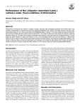 J. Appl. Hort., 4(2):103-106, July-December, 2002 Performance of Ber (Zizyphus mauritiana Lamk.) cultivars under Tarai conditions of Uttaranchal Omveer Singh and K.K. Misra Department of Horticulture, G.B. Pant University of Agriculture and Technology, Pantnagar-263 145 (Uttaranchal), India. Abstract Performance of twenty-four ber cultivars in respect of growth, yield and yield contributing characters were studied under Tarai conditions of Uttaranchal. The growth of the trees was significantly affected by the cultivars. Tree height, spread, trunk girth, cross trunk sectional area (C.T.S.A.) and volume were found significantly higher in Sanaur 6. The shoot length was observed maximum with the trees of Rohtak Gola and minimum with the trees of ZG 2. The number of leaves per shoot was found maximum in Seo and minimum in Sanaur 6. The fresh and dry weight of leaf were found maximum in Noki and minimum in Banarasi Pewandi. The leaf length was found maximum in Nazuk and minimum in ZG 2. The leaf length:breadth ratio was found maximum in Narikeli and minimum in ZG 2. Sanaur 3 had maximum leaf breadth and leaf area while Sanaur 2 had maximum photosynthetic efficiency. The number of fruits per shoot, per tree and yield were found maximum in ZG 3 while the yield efficiency both in terms of kg/cm2 and number of fruits per m3 volume of tree was found maximum in ZG 2 but this cultivar had minimum photosynthetic efficiency. Key words: Ber, cultivars, performance, Tarai, Photosysnthesis, growth, leaf Introduction The Ber (Zizyphus mauritiana Lamk.) is one of the indigenous fruits of India. Importance of Ber is well established due to its wide adaptability for arid and semi-arid regions, high nutritive value and tolerance to soil and atmospheric stress. The performance of the cultivars may vary from one agroclimatic condition to another (Bisla et al., 1980; Chadha et al., 1972 and Reddy et al., 1995). The information regarding the performance of various cultivars of ber is lacking under Tarai conditions. Therefore, the studies were made to find out the relative performance of various cultivars in terms of growth, yield and yield contributing characters under Tarai conditions. Materials and methods The studies were conducted at Horticultural Research Centre, Patherchatta of G.B.P.U.A.&T., Pantnagar during the cropping season of 1998-99. The treatments consisted of twenty-four ber cultivars i.e., Banarasi Pewandi, Chhuhara, Chinese, Dandan, Illaichi, Kaithli, Kala Gola, Narikeli, Nazuk, Noki, Rohtak Gola, Sanaur 1, Sanaur 2, Sanaur 3, Sanaur 4, Sanaur 5, Sanaur 6, Selected Safeda, Seo, Thornless, Umran, Wallaiti, ZG 2 and ZG 3 which were replicated twice in Randomized Block Design having single tree per treatment per replication. The orchard was planted during 1974 and uniform cultural practices were followed during all these years. The tree height was recorded from the ground level to the top of the tree. The spread was recorded by measuring the spread from East to West and North to South and then taking the mean of both. The trunk girth was recorded 10 cm above the graft union. Cross trunk sectional area (C.T.S.A.) was recorded as per method of Glenn and Rogers (1969) while the tree volume was recorded as per method of Westwood et al. (1963). The shoot length was measured by selecting four branches from all the directions of the tree. Length of each shoot in selected branches was measured separately and then the mean length of the shoot was worked out. The number of shoots per branch and number of leaves per shoot were counted in previously selected branches. The mean number of shoots per tree and mean number of leaves per shoot was worked out. Leaf samples consisted of fifty normal leaves taken at random from the middle portion of the shoots of the selected branches for recording leaf characters. The fresh weight of the leaf was taken by weighing the leaves on electronic balance. The leaves were then dried at a temperature of 60 ±1 oC for constant weight to record dry weight. The leaf size was recorded by measuring the length and breadth of the leaves. The length:breadth ratio was obtained by dividing length of leaves with their breadth. The petiole length was measured with measuring scale. Leaf area was measured with the help of Li-COR portable Leaf-area-meter. Photosynthetic efficiency was estimated as per method of Westwood (1978). The number of fruits per shoot was worked out by counting the number of fruits from selected shoots while number of fruits per tree was worked out by multiplying the number of fruits per shoot with the number of shoots per tree. The yield was recorded by weighing the fruits at the time of each picking. Yield efficiency was measured in terms of weight of fruits (kg)/cm2 and number of fruits per m3 volume of tree. Results and discussion Tree growth and vigour: It is evident from the data presented in Table 1 that cultivars significantly affected the height of the tree. Sanaur 6 gave significantly higher tree height , which was at par with Illaichi, Selected Safeda, Narikeli, Kaithli, Thornless and Sanaur 4 while ZG 2 gave the lowest tree height . The tree height ranged from 3.75 to 5.75 metres among the various cultivars. Similar variation in tree height was reported by Chovatia et al. 104 Singh and Misra-Ber (Zizyphus mauritiana Lamk.) cultivars under Tarai conditions of Uttaranchal Table 1. Growth characteristics of ber cultivars Cultivars Tree Tree Trunk height (m) spread (m) girth (m) C.T.S.A. (cm2) Tree volume (m3) Banarasi Pewandi Chhuhara Chinese Dandan Illaichi Kaithli Kala Gola Narikeli Nazuk Noki Rohtak Gola Sanaur 1 Sanaur 2 Sanaur 3 Sanaur 4 Sanaur 5 Sanaur 6 Selected Safeda Seo Thornless Umran Wallaiti ZG 2 ZG 3 C.D. (p=0.05) 1093.789 879.776 879.776 1477.707 2195.223 1568.471 1246.241 1246.019 1052.945 2041.083 1864.493 1246.019 1680.413 1453.025 1408.439 1158.479 3616.083 2038.216 1856.090 1560.509 831.209 1208.439 535.668 1451.114 363.975 209.254 121.319 13