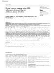 Original Article Rectal cancer staging using MRI: adherence in reporting to evidence-based practice Acta Radiologica 2020, Vol. 61(11) 1463–1472 ! The Foundation Acta Radiologica 2020 Article reuse guidelines: sagepub.com/journals-permissions DOI: 10.1177/0284185120906663 journals.sagepub.com/home/acr Gustav Alvfeldt1 , Peter Aspelin2, Lennart Blomqvist3,4 and Nina Sellberg1 Abstract Background: Magnetic resonance imaging (MRI) is the first-line imaging modality for local staging of rectal cancer. The radiology report should deliver all relevant available imaging information to guide treatment. Purpose: To explore and describe if there was a gap between the contents in MRI reports for primary staging of rectal cancer in Sweden in 2010 compared to evidence-based practice. Material and Methods: A total of 243 primary MRI staging reports from 2010, collected from 10 hospitals in four healthcare regions in Sweden, were analyzed using content analysis with a deductive thematic coding scheme based on evidence-based practice. Focus was on: (i) most frequently reported findings; (ii) correlation to key prognostic findings; and (iii) identifying if any findings being reported were beyond the information defined in evidence-based practice. Results: Most frequently reported findings were spread through the bowel wall or not, local lymph node description, tumor length, and distance of tumor from anal verge. These items accounted for 35% of the reporting content. Of all reported content, 86% correlated with the evidence-based practice. However, these included more information than was generally found in the reports. When adjusting for omitted information, 48% of the reported content were accounted for. Of the reported content, 20% correlated to key pathological prognostic findings. Six types of findings were reported beyond the evidence-based practice, representing 14% of the total reporting content. Conclusion: There was a gap between everyday practice and evidence-based practice in 2010. This indicates a need for national harmonization and implementation of standardized structured reporting templates. Keywords Magnetic resonance imaging, rectum, staging, technical aspects, health policy and practice, computer applications– general Date received: 17 December 2019; accepted: 15 January 2020 Introduction Colorectal cancer is the third most common form of cancer in Sweden, affecting around 6200 people. Clinical staging of rectal cancer is performed to individualize treatment for best possible outcome (1,2). Magnetic resonance imaging (MRI) is considered the first-line imaging modality for the staging of rectal cancer. Several studies have been able to confirm the importance of using MRI to accurately stage the disease and the key prognostic elements when interpreting and reporting findings (1,3–5). According to the expert consensus panel of the European Society of Gastrointestinal and Abdominal Radiology, staging of rectal cancer 1 Department of Learning, Informatics, Management and Ethics, Karolinska Institutet, Stockholm, Sweden 2 Department of Clinical Science, Intervention and Technology, Karolinska Institutet, Stockholm, Sweden 3 Department of Molecular Medicine and Surgery, Karolinska Institutet, Stockholm, Sweden 4 Department of Imaging and Physiology, Karolinska University Hospital, Stockholm, Sweden Corresponding author: Gustav Alvfeldt, Karolinska Institutet, Tomtebodav€agen 18 A, Stockholm, 171 77, Sweden. Email: gustav.alvfeldt@ki.se 1464 should be “reported in a structured fashion so that important findings impacting directly on therapeutic decision making are not omitted” (5, p. 2523). The results of the MERCURY study group, published during the mid-2000s (1,3,6) and describing the interpretation of images and acquisition techniques for MRI examinations of rectal cancer patients with particular focus on key pathological prognostic factors of importance, was followed by a number of publications in the field (4,7–10). This has contributed to a more standardized and systematic approach to staging, reading, and reporting of rectal cancer as well as clinical recommendations and practice guidelines (5,11). Based on the variables and measurements described in the MERCURY studies and the subsequent articles, the Swedish Colorectal Cancer Registry (SCRCR) has developed radiology proforma for the reporting of rectal cancer patients to the registry (12). In 2014, the Swedish Society of Radiology (SFMR) released its first radiology reporting template for the primary staging of rectal cancer (13) based on the SCRCR proforma. The aim of this empirical retrospective case study was to explore contents in Swedish free-text reports for the primary staging of rectal cancer using MRI authored in 2010. The aim was to identify how well the content in these radiology reports related to evidence-based practice (EBP) for the staging of rectal cancer in the form of Swedish national proforma (12,13). Particular focus was given to: (i) most frequently reported findings in reports; (ii) correlation to key pathological prognostic findings as described by the MERCURY study group; and (iii) identifying if any findings being reported were beyond the information found in the EBP. Material and Methods Sample size and filtering of radiology reports The units of analysis in this study were reports on the primary staging of rectal cancer authored in 2010, collected from 10 hospitals in four healthcare regions in Sweden, the three largest regions and one smaller region (Table 1). The study protocol was vetted and approved by the Ethical Review Board. Patients reports were identified via the SCRCR and assorted by hospital and radiology department. The healthcare regions and the hospitals were chosen based on the number of rectal cancer patients at each site. Regions and hospitals with a high number of patients reported in the SCRCR were asked to contribute with data. Each radiology department provided de-identifie