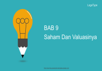 LogoType BAB 9 Saham Dan Valuasinya http://www.free-powerpoint-templates-design.com TUJUAN PEMBELAJARAN • • • • UNTUK MENGETAHUI TENTANG KONSEP DARI SAHAM DAN VA LUASINYA UNTUK MEMAHAMI TENTANG KONSEP DARI SAHAM DAN VAL UASINYA UNTUK MENGANALISIS TENTANG SAHAM DAN VALUASINYA UNTUK MENGIDENTIIFIKASI SEGALA SESUATU DALAM PERPE KTIFNYA DALAM SAHAM DAN VALUASINYA SUB POKOK PEMBAHASAN • 9.1 Saham • 9.2 hak hukum dan hak istimewa pemegang saham biasa • 9.3 jenis jenis saham biasa • 9.4 valuasi saham biasa • 9.5 model dividen yang didiskonto • 9.6 melakukan valuasi saham dengan pertumbuhan nonkonstan • 9.7 saham preferen DAFTAR PUSTAKA Brigham, Eugene F dan Joel F Houston.2018.Dasar- Dasar Manajemen Keuangan Edisi 14.Jakarta:Salemba Empat. 9.1 Pengertian Saham saham adalah “Surat berharga yang merupakan instrumen bukti kepemilikan atau penyertaan dari individu atau institusi dalam suatu perusahaan. Sedangkan menurut istilah umumnya, saham merupakan bukti penyertaan modal dalam suatu kepemilikan saham perusahaan” “ “ Menurut Sapto (2006:31) Menurut Husnan Suad (2008: 29) “Saham adalah secarik kertas yang menunjukkan hak pemodal yaitu pihak yang memiliki kertas tersebut untuk memperoleh bagian dari prospek atau kekayaan organisasi yang menerbitkan sekuritas tersebut, dan berbagai kondisi yang memungkin kan pemodal tersebut menjalankan haknya” menurut Darmadji dan Fakhruddin (2012:5) “Saham (stock) merupakan tanda penyer taan atau pemilikan seseorang atau bada n dalam suatu perusahaan atau perseroan terbatas. Saham berwujud selembar kert as yang menerangkan bahwa pemilikkert as tersebut adalah pemilik perusahaan ya ng menerbitkan surat berharga tersebut”. Jadi, Saham merupakan surat bukti tanda kepemilikan suartu perusahaan yang didalamnya tercantum nilai nominal, nama perusahaan, dan di ikuti dengan hak dan kewajiban yang dijelaskan kepada setiap pemegangnya. 9.2 HAK HUKUM DAN HAK ISTIMEWA PEMEGAN G SAHAM BIASA Kendali atas Perusahaan Pemegang saham biasa suatu perusahaan berhak memilih para direkturnya, selanjutnya memilih pengurus yang akan mengelola usaha. Dalam suatu perusahaan kecil, pemegang saham utama umumnya juga sebagai presiden dan ketua dewan direksi. Dalam perusahaan besar terbuka, manajer umumnya memiliki saham, tetapi kepemilikan pribadi tersebut biasanya tidak cukup untuk memberikan mereka hak suara. Jadi manajemen dari kebanyakan perusahaanyang dimiliki publik dapat diganti oleh pemegang saham jika tim manajemen tersebut dinilai tidak efektif. Hak Preemptive Pemegang saham biasa sering kali memiliki hak yang disebut hak preemptive (preemptive right) untuk membeli setiap tambahan saham yang dijual oleh perusahaan. Hak preemptive merupakan suatu ketentuan dalam anggaran dasar perusahaan yang memberikan hak kepada pemegang saham biasa untuk me mbeli emisi baru saham biasa. Tujuan hak preemptive ada dua yaitu: Mencegah manajemen suatu perusahaan menerbitkan saham tambahan dalam jumlah besar dan membeli sendiri saham- saha m tersebut. Manajemen akibatnya dapat mengambil alih kendali perusahaan dan mengalahkan kehendak para pemegang saham saat ini. Melindungi pemegang saham dari pendilusian nilai. Misalnya beredar 1.000 lembar saham biasa yang harganya masing- masing adalah $100 sehingga total nilai pasar perusahaan adalah $100.000. Jika dijual tambahan 1.000 lembar saham dengan harga $50 per lembar atau sebesar $50.000, penambahan ini akan mengakibatkan total niali pasar naik menjadi $150.000. Ketika total nilai pasar yang baru dibagi dengan jumlah saham beredar yang baru akan diperoleh nilai sebesar $75 per lembar saham. Pemegang saham lama akan kehilangan $25 per lembar saham dan pemegang saham baru akan langsung mendapatkan laba sebesar $25 per lembar saham. Jadi menjual saham biasa dengan harga di bawah nilai pasar akan mendilusi harganya dan memindahkan kekayaan pemegang saham saat ini pada pihak yang diperkenankan untuk membeli saham baru. 9.3 Jenis Jenis Saham Biasa Meskipun sebagian besar perusahaan hanya memiliki satu jenis saham biasa, terkadang digunakan saham terklasifikasi (classified stock) untuk memenuhi kebutuhan- kebutuhan khusus. Biasanya ketika digunakan klasifikasi khusus, satu jenis akan disebut Kelas A, jenis lainnya disebut sebagai Kelas B, dan seterusnya. Perusahaan kecil yang baru berdiri sedang mencari pendanaan dari sumber- sumber luar sering kali menggunakan jenis saham biasa yang berbeda- beda. menerima dividen sampai perusahaan mampu menciptakan kekuatannya untuk menghasilkan laba dengan mengumpulkan laba ditahan sampai jumlah yang telah ditentukan sebelumnya. Akibatnya, penggunaan saham yang terklasifikasi memungkinkan publik mengambil posisi dalam perusahaan yang tumbuh dan didanai secara konservatif tanpa mengorbankan labanya. Kejadian seperti itu sering terjadi, maka saham kelas B disebut juga sebagai saham pendiri. Saham pendiri merupakan saham yang dimiliki oleh para pendiri perusahaan yang memiliki satusatunya hak suara, tetapi dividennya dibatasi selama beberapa tahun yang telah ditentukan. 9.4 Valuasi Saham Biasa Dividen kepada pemiliknya, tetapi hanya jika perusahaan memiliki laba yang cukup untuk membayar dividen dan manajemen memilih untuk membayarkan dividen daripada mempertahankan dan menginvestigasi kembali seluruh laba. A C B D Saham dapat dijual dan harapannya dengan harga yang lebih tinggi daripada harga belinya. Jika saham ternyata dijual pada harga diatas harga belinya maka investor akan menerima keuntungan modal (capital gain). Definisi istilah-istilah yang digunakan dalam model valuasi saham Saham biasa memberikan aliran arus kas yang diharapkan akan terjadi di masa depan dan nilai suatu saham dihitung dari nilai sekarang arus kas masa depan yang diharapkan, dimana nilai tersebut terdiri atas dua unsur yaitu dividen yang diharapkan setiap tahunnya dan harga yang diharapkan akan diterima oleh investor ketika mereka menjual saham tersebut. Dividen yang Diharapkan sebagai Basis Nilai Saham Dalam pem