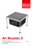 Air Booster 2 Operating instructions Fan assisted floor tiles for data centers 230/1/50-60 Index IT30I Issue 10.2018 A I R B O O ST E R 2 ABOUT STULZ GMBH Since it was founded in 1947, the STULZ company has evolved into one of the world’s leading system suppliers of air-conditioning technology. Since 1974 the group has seen continual international expansion of its air conditioning technology business, specialising in A/C for data centres and telecommunications installations. STULZ has ten production plants (2 in Germany, Italy, the USA, Great Britain, Spain, 2 in China, Brazil and India) and twenty subsidiaries (in Germany, France, Italy, Great Britain, Belgium, Brazil, the Netherlands, New Zealand, Mexico, Austria, Poland, Spain, Singapore, China, India, Indonesia, South Africa, Sweden, Australia and the USA). The company also co-operates with sales and service partners in over 140 other countries, and therefore boasts an international network of air-conditioning specialists. 2 STULZ SpA Via Evangelista Torricelli n.3 37067 Valeggio sul Mincio VR EN/10.2018/IT30I © STULZ SpA – all rights reserved A I R B O O ST E R 2 Air Booster 2 Dear customer, thank you for having chosen Air Booster 2 from STULZ. It's the result of decades of research and design studies, with a fine search of materials and technologies to obtain an high quality unit. The CE mark guarantees that the STULZ products satisfy the requirements of the European Machinery Directive for safety. The level of quality is constantly checked at every stage, from design to production, making the STULZ products synonymous of SAFETY, QUALITY and RELIABILITY. For further information concerning our products and services visit our website : www.stulz.com © STULZ SpA . – all rights reserved EN/10.2018/IT30I 3 A I R B O O ST E R 2 STULZ reserves the right to update the product and the relevant manual without having to update products and manuals sold previously except under exceptional circumstances. Contact your local STULZ partner when requesting or receiving any updates of instruction manuals or corrections when which are considered to be integral parts of the manual. 4 EN/10.2018/IT30I © STULZ SpA – all rights reserved A I R B O O ST E R 2 Table of contents 1..Introduction............................................................................................................6 1.1..Symbols used in this manual..................................................................................................................... 6 1.2..Attachments.................................................................................................................................................... 6 2..Safety directions....................................................................................................7 2.1..Introduction..................................................................................................................................................... 7 2.2..General rules................................................................................................................................................... 7 2.3..Residual hazard.............................................................................................................................................. 8 2.4..Labels................................................................................................................................................................ 8 2.5..Intended and non-intended use.............................................................................................................10 3..Handling and storage...........................................................................................10 3.1..Unit receipt....................................................................................................................................................10 3.1.1.Precautions when handling the unit.............................................................................................11 3.2..Storage...........................................................................................................................................................12 4..Description ..........................................................................................................13 4.1..Coding.............................................................................................................................................................13 4.2..Component lay-out and operating principle......................................................................................13 4.3..Components..................................................................................................................................................15 4.4..Electrical components of protection and control.............................................................................15 5..I/O Controller ......................................................................................................16 5.1..User interface...............................................................................................................................................16 5.1.1.Quick display menu (actual value display)..................................................................................17 5.1.2.Basic display and setpoint..............................................................................................................18 5.1.3.Selection menu...................................................................................................................................19 5.1.4.Lock and unlock the keypad..........................................................................................................19 5.2..Parameters ...................................................................................................................................................20 5.3..Setti