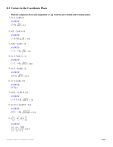 8-2 Vectors in the Coordinate Plane Find the component form and magnitude of 1. A(−3, 1), B(4, 5) with the given initial and terminal points. ANSWER: ≈ 8.1 ; 2. A(2, −7), B(−6, 9) ANSWER: ≈ 17.9 ;8 3. A(10, −2), B(3, −5) ANSWER: ≈ 7.6 ; 4. A(−2, 7), B(−9, −1) ANSWER: ≈ 10.6 ; 5. A(−5, −4), B(8, −2) ANSWER: ≈ 13.2 ; 6. A(−2, 6), B(1, 10) ANSWER: ;5 7. A(2.5, −3), B(−4, 1.5) ANSWER: ; ≈ 7.9 8. A(−4.3, 1.8), B(9.4, −6.2) ANSWER: ; 9. A ≈ 15.9 ,B ANSWER: 10. A , B(−1, 7) eSolutions Manual - Powered by Cognero ANSWER: Page 1 ANSWER: 8-2 Vectors in the Coordinate Plane 10. A , B(−1, 7) ANSWER: Find each of the following for f = ,g= , and h = . 11. 4h – g ANSWER: 12. f + 2h ANSWER: 13. 3g – 5f + h ANSWER: 14. 2f + g – 3h ANSWER: 15. f – 2g – 2h ANSWER: 16. h – 4f + 5g ANSWER: 17. 4g − 3f + h ANSWER: 18. 6h + 5f − 10g ANSWER: 19. PHYSICS In physics, force diagrams are used to show the effects of all the different forces acting upon an object. The following force diagram could represent the forces acting upon a child sliding down a slide. eSolutions Manual - Powered by Cognero Page 2 18. 6h + 5f − 10g 8-2 ANSWER: Vectors in the Coordinate Plane 19. PHYSICS In physics, force diagrams are used to show the effects of all the different forces acting upon an object. The following force diagram could represent the forces acting upon a child sliding down a slide. a. Using the blue dot representing the child as the origin, express each force as a vector in component form. b. Find the component form of the resultant vector representing the force that causes the child to move down the slide. ANSWER: a. f = b. ,n= ,w= Find a unit vector u with the same direction as v. 20. v = ANSWER: u= 21. v = ANSWER: u= 22. v = ANSWER: u= 23. v = ANSWER: u= 24. v = ANSWER: u= eSolutions Manual - Powered by Cognero 25. v = ANSWER: Page 3 ANSWER: = 8-2 uVectors in the Coordinate Plane 24. v = ANSWER: u= 25. v = ANSWER: u= 26. v = ANSWER: u= 27. v = ANSWER: u= Let be the vector with the given initial and terminal points. Write vectors i and j. 28. D(4, −1), E(5, −7) as a linear combination of the ANSWER: i − 6j 29. D(9, −6), E(−7, 2) ANSWER: −16i + 8j 30. D(3, 11), E(−2, −8) ANSWER: −5i − 19j 31. D(9.5, 1), E(0, −7.3) ANSWER: −9.5i − 8.3j 32. D(−3, −5.7), E(6, −8.1) ANSWER: 9i − 2.4j eSolutions Manual - Powered by Cognero 33. D(−4, −6), E(9, 5) Page 4 31. D(9.5, 1), E(0, −7.3) ANSWER: 8-2 Vectors in the Coordinate Plane −9.5i − 8.3j 32. D(−3, −5.7), E(6, −8.1) ANSWER: 9i − 2.4j 33. D(−4, −6), E(9, 5) ANSWER: 13i + 11j 34. ANSWER: 35. D(−3, 1.5), E(−3, 1.5) ANSWER: 0 36. COMMUTE To commute to school, Larisa leaves her house and drives north on Pepper Lane for 2.4 miles. She turns left on Cinnamon Drive for 3.1 miles and then turns right on Maple Street for 5.8 miles. Express Larisa’s commute as a linear combination of unit vectors i and j. ANSWER: –3.1i + 8.2j 37. ROWING Nadia is rowing across a river at a speed of 5 miles per hour perpendicular to the shore. The river has a current of 3 miles per hour heading downstream. a. At what speed is she traveling? b. At what angle is she traveling with respect to the shore? ANSWER: a. about 5.8 mph b. about 59º Find the component form of v with the given magnitude and direction angle. 38. | v | = 12, θ = 60° ANSWER: 39. | v | = 4, θ = 135° ANSWER: 40. | v | = 6, θ = 240° ANSWER: eSolutions Manual - Powered by Cognero Page 5 39. | v | = 4, θ = 135° ANSWER: 8-2 Vectors in the Coordinate Plane 40. | v | = 6, θ = 240° ANSWER: 41. | v | = 16, θ = 330° ANSWER: 42. | v | = 28, θ = 273° ANSWER: 43. | v | = 15, θ = 125° ANSWER: Find the direction angle of each vector to the nearest tenth of a degree. 44. 3i + 6j ANSWER: 63.4º 45. –2i + 5j ANSWER: 111.8º 46. 8i – 2j ANSWER: 346.0º 47. –4i – 3j ANSWER: 216.9º 48. ANSWER: 119.1º 49. ANSWER: 45º 50. ANSWER: eSolutions Manual - Powered by Cognero 213.7º 51. Page 6 49. 8-2 ANSWER: Vectors in the Coordinate Plane 45º 50. ANSWER: 213.7º 51. ANSWER: 290.6º 52. SLEDDING Maggie is pulling a sled with a force of 275 newtons by holding its rope at a 58º angle. Her brother is going to help by pushing the sled with a force of 320 N. Determine the magnitude and direction of the total resultant force on the sled. ANSWER: about 520.8 N; about 153.4° 53. NAVIGATION An airplane is traveling due east with a speed of 600 miles per hour. The wind blows at 85 miles per hour at an angle of S59°E. a. Determine the speed of the airplane’s flight. b. Determine the angle of the airplane’s flight. ANSWER: a. about 674.3 mph b. about S86°E 54. HEADING A pilot needs to plot a course that will result in a velocity of 500 miles per hour in a direction of due west. If the wind is blowing 100 miles per hour from the directed angle of 192°, find the direction and the speed the pilot should set to achieve this resultant. ANSWER: about 598.2 mph at a directed angle of 182° Determine whether and with the initial and terminal points given are equivalent. If so, prove that = . If not, explain why not. 55. A(3, 5), B(6, 9), C(–4, –4), D(–2, 0) ANSWER: No; sample answer: The magnitude and direction are not the same for both vectors, so they are not equivalent. eSolutions Manual - Powered by Cognero 56. A(–4, –5), B(–8, 1), C(3, –3), D(1, 0) Page 7 west. If the wind is blowing 100 miles per hour from the directed angle of 192°, find the direction and the speed the pilot should set to achieve this resultant. 8-2 ANSWER: Vectors in the Coordinate Plane about 598.2 mph at a directed angle of 182° Determine whether and with the initial and terminal points given are equivalent. If so, prove that = . If not, explain why not. 55. A(3, 5), B(6, 9), C(–4, –4), D(–2, 0) ANSWER: No; sample answer: The magnitude and direction are not the same for both vectors, so they are not equivalent. 56. A(–4, –