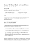 Chapter 01: Mental Health and Mental Illness Chapter 01: Mental Health and Mental Illness MULTIPLE CHOICE 1. A staff nurse completes orientation to a psychiatric unit. This nurse may expect an advanced practice nurse to perform which additional intervention? a. Conduct mental health assessments. c. Establish therapeutic relationships. b. Prescribe psychotropic medication. d. Individualize nursing care plans. ANS: B In most states, prescriptive privileges are granted to master’s-prepared nurse practitioners who have taken special courses on prescribing medication. The nurse prepared at the basic level is permitted to perform mental health assessments, establish relationships, and provide individualized care planning. PTS: 1 DIF: Cognitive Level: Understand (Comprehension) REF: Page 15 TOP: Nursing Process: Implementation MSC: Client Needs: Safe, Effective Care Environment 2. When a nursing student expresses concerns about how mental health nurses “lose all their nursing skills,” the best response by the mental health nurse is: “Psychiatric nurses practice in safer environments than other specialties. Nurse-to-patient a. ratios must be better because of the nature of the patients’ problems.” “Psychiatric b. nurses use complex communication skills as well as critical thinking to solve multidimensional problems. I am challenged by those situations.” “That’s c. a misconception. Psychiatric nurses frequently use high technology monitoring equipment and manage complex intravenous therapies.” “Psychiatric nurses do not have to deal with as much pain and suffering as medical-surgical d. nurses do. That appeals to me.” ANS: B The practice of psychiatric nursing requires a different set of skills than medical-surgical nursing, though there is substantial overlap. Psychiatric nurses must be able to help patients with medical as well as mental health problems, reflecting the holistic perspective these nurses must have. Nurse-patient ratios and workloads in psychiatric settings have increased, just like other specialties. Psychiatric nursing involves clinical practice, not just documentation. Psychosocial pain and suffering are as real as physical pain and suffering. PTS: 1 DIF: Cognitive Level: Apply (Application) REF: Page 10 | Page 13-14 TOP: Nursing Process: Implementation MSC: Client Needs: Safe, Effective Care Environment 3. When a new bill introduced in Congress reduces funding for care of persons with mental illness, a group of nurses writes letters to their elected representatives in opposition to the legislation. Which role have the nurses fulfilled? a. Recovery c. Advocacy b. Attending d. Evidence-based practice ANS: C An advocate defends or asserts another’s cause, particularly when the other person lacks the ability to do that for self. Examples of individual advocacy include helping patients understand their rights or make decisions. On a community scale, advocacy includes political activity, public speaking, and publication in the interest of improving the human condition. Since funding is necessary to deliver quality programming for persons with mental illness, the letter- writing campaign advocates for that cause on behalf of patients who are unable to articulate their own needs. PTS: 1 DIF: Cognitive Level: Understand (Comprehension) REF: Page 16 TOP: Nursing Process: Implementation MSC: Client Needs: Safe, Effective Care Environment 4. Which comment best indicates that a patient perceived the nurse was caring? “My nurse: a. always asks me which type of juice I want to help me swallow my medication.” b. explained my treatment plan to me and asked for my ideas about how to make it better.” c. spends time listening to me talk about my problems. That helps me feel like I am not alone.” told me that if I take all the medicines the doctor prescribes, then I will get discharged d. sooner.” ANS: C Caring evidences empathetic understanding as well as competency. It helps change pain and suffering into a shared experience, creating a human connection that alleviates feelings of isolation. The distracters give examples of statements that demonstrate advocacy or giving advice. PTS: 1 DIF: Cognitive Level: Apply (Application) REF: Page 7 |Page 10 TOP: Nursing Process: Evaluation MSC: Client Needs: Psychosocial Integrity 5. Which assessment finding most clearly indicates that a patient may be experiencing a mental illness? The patient: a. reports occasional sleeplessness and anxiety. b. reports a consistently sad, discouraged, and hopeless mood. c. is able to describe the difference between “as if” and “for real.” d. perceives difficulty making a decision about whether to change jobs. ANS: B The correct response describes a mood alteration, which reflects mental illness. The distracters describe behaviors that are mentally healthy or within the usual scope of human experience. PTS: 1 DIF: Cognitive Level: Apply (Application) REF: Page 2-3 TOP: Nursing Process: Assessment MSC: Client Needs: Psychosocial Integrity 6. Which finding best indicates that the goal “Demonstrate mentally healthy behavior” was achieved? A patient: a. sees self as capable of achieving ideals and meeting demands. b. behaves without considering the consequences of personal actions. c. aggressively meets own needs without considering the rights of others. d. seeks help from others when assuming responsibility for major areas of own life. ANS: A The correct response describes an adaptive, healthy behavior. The distracters describe maladaptive behaviors. PTS: 1 DIF: Cognitive Level: Apply (Application) REF: Page 2-3 TOP: Nursing Process: Evaluation MSC: Client Needs: Psychosocial Integrity 7. A nurse encounters an unfamiliar psychiatric disorder on a new patient’s admission form. Which resource should the nurse consult to determine criteria used to establish this diagnosis? a. International Statistical Classification of Diseases and Related Health Problems (ICD-10) b. Diagnosti