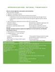 NUTRITION STUDY GUIDE – METABOLIC – THEORY EXAM #2 Discuss normal digestion, absorption, and metabolism I. Basic Nutrition Principles A. Ingestion: consumption of food B. Digestion: food broken down into tiny nutrients in the stomach 1. Mechanical: involve neuromuscular processes that moves food through GI tract 2. Absorption: movement of smaller elements though the digestive walls into blood stream C. Basic metabolism: biochemical reaction within the cell of the body - Anabolism: build up Glycogenolysis: catabolism of glycogen into - Catabolism: breakdown glucose, carbon dioxide, water Glycogenesis: anabolism of glucose into Gluconeogenesis: catabolism of amino glycogen acids and glycerol into glucose for energy Identify essential nutrients, explain the significance of each nutrient, and identify their dietary sources. I. Dietary Sources of Essential Nutrients A. Energy Nutrients – macro nutrients 1. Carbohydrates: - Contain: carbon, hydrogen, oxygen - Keep body from using proteins for energy, - 4kal/gram prevent ketosis, enhance memory and - Major supplier of energy, include: sugars, learning capabilities starches, fiber - 45% to 65% of daily caloric intake Simple carbohydrates Complex carbohydrate Broken down & absorbed quick, quick source of energy Monosaccharides: glucose, fructose, galactose Disaccharides: sucrose, maltose, lactose Starches – made up of many units of glucose Take longer to break down, provide longer periods of energy ***Dietary fiber: non-digestive part of plants Soluble fiber: combine with waste to assist in their removal Oat bran, beans, apples, carrots Insoluble fiber: bulk the diet Whole grains, skin and seed of fruits Benefits of fiber: -Promote cardiovascular health (lower cholesterol level) -Weight control -Improve glycemic control in diabetes -Improve regularity -Enhance immune function 2. Protein - Development – maintenance – repair body tissues, organs, cells - May provide energy if body doesn’t have enough fat or carbohydrates - 10%-35% of daily intake - Amino acid: must be consumed in food every day because body doesn’t make or store it Complete proteins: contain all essential amino acids (animal-based) Incomplete proteins: lack 1 or more essential amino acids (veggies, seeds, nuts, grains) ***Amino acids that cannot be used for synthesis are converted to fat - Healthy people rarely need protein supplements - 2/3 serving of protein-rich food = daily need - Nitrogen: growth, pregnancy, maintenance of muscle mass and vital organs, wound healing 3. Fats - Very concentrated *Trans fat: AVOID!!! (raise LDL, lower HDL, - Are type of lipid (similar to carbohydrate, longer shelf life) less oxygen, not dissolve in water) Cholesterol: - 20%-35% of daily intake - waxy fat-like, produced in liver/ part of - Functions: supply energy/ insulate body/ cell membrane and nerve tissues protect vital organs or tissues/ facilitate - body use this to form vit D and other nerve conduction/ transport molecules/ hormones Component of many hormones - Found ONLY in foods come from animals - Categories: triglycerides/ Phospholipids/ (butter, eggs, meats) Sterols - Not essential - Types: - Adult <200, Child 120-200, Infant: 70*Monounsaturated: BEST! (olive oil, 175, Newborn: 53-135 peanut oil, avocado, nuts, canola oil) - Forms: LDL (deposit cholesterol on the Polyunsaturated (fish oil, vegetable oil, wall of blood vessels); HDL (removes sunflower oil) cholesterol from cell and bring it back to Unsaturated: liquid at room temp liver and intestine to be recycled or *Saturated: NOT GOOD! (solid at room excreted temp, animal source, tropical oil butter) - Omega 3 & 6: Necessary for blood clotting, normal brain and nerve system functioning Prevent atherosclerosis & lower triglyceride Improve learning ability/ enhance immune function/ improve arthritis symptoms Lower cholesterol Reduce risk of heart disease B. Regulatory Nutrients – micro nutrients 1. Vitamins Important for metabolic and physiologic functions DON’T PRODUCE ENERGY Water soluble Vitamin B Facilitate energy production Act as coenzyme to form RBCs B1: necessary for production of HCl (for digestion) B2: maintain healthy skin, adaptation to light B3: IN COFFEE – critical in formation of fatty acid Pantothenic acid B5: Biotin B7: form purines (essential for DNA & RNA) B6: synthesis & catabolism of amino acid B12: RBC production, maintain myelin (protective sheath of the nerve), necessary to make DNA B9 Folic acid: synthesis of DNA, RBC formation, neural tube defect Vitamin C Most important vitamin Collagen synthesis Antioxidant ENHANCE ABSORPTION OF IRON Promote strong immune system Help with infection & night vision Bone & teeth development Deficiency: night blindness, immunity, impaired growth and development Liver, milk, egg yolk, dark leafy green veggie, orange/yellow veggie and fruits “sunshine vitamin” Bone and tissue development (Collaborate with calcium and phosphorus) Development of collagen Dairy products, eggs, fortified products, liver, fatty fish (salmon, mackerel) Essential for protein synthesis (promote blood clotting) Synthesized in body by bacteria in large intestine Liver needs vitamin K to produce a protein called PROTHROMBIN Deficiency: bruising/ bleeding Dark leafy veggies: broccoli, spinach, Brussel sprout, cabbage Antioxidant, protect cell from free radicals Promote healthy immune system Nuts, seeds, soybean, canola, corn, other vegetable oils Excreted in urine Easily destroyed by light, air, cooking Not stored in body, must be digested daily Fat soluble Soluble in fats and can be stored in body tissues and tend to remain Hypervitaminosis: too much vitamins stored in body Vitamin A Vitamin D Vitamin K Vitamin E 2. Minerals - Quickly used or lost in waste products must consume every day - No calories - Calcium: nerve conduction, muscle contraction, blood vessel expansion/ contraction, secretion of hormone - Phosphorus: bone development, muscle contraction, kidney function, nerve 