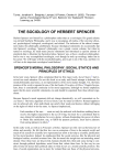 Turner, Jonathan H., Beeghley, Leonard, & Powers, Charles H. (2002). The emergence of sociological theory (5th ed.). Belmont, CA: Wadsworth Thomson Learning, pp. 54-89. THE SOCIOLOGY OF HERBERT SPENCER Herbert Spencer saw himself as a philosopher rather than as a sociologist. His grand scheme was termed Synthetic Philosophy, and it was to encompass all realms of the universe: physical, psychological, biological, sociological, and ethical. The inclusion of the ethical component makes this philosophy problematic because ideological statements do occasionally slip into Spencer's sociology. Spencer's philosophy was a grand, cosmic scheme, but when he turned to sociology, he made many precise statements and introduced a copious amount of empirical data to illustrate his theoretical ideas. Spencer was, at best, a mediocre philosopher, but he was a very accomplished sociologist, even though he took up sociology rather late in his career. We will begin with the moral philosophy, just to get it out of the way, and then we will turn to his important sociological contributions.1 SPENCER'S MORAL PHILOSOPHY: SOCIAL STATICS AND PRINCIPLES OF ETHICS In his later years, Spencer often complained that his first major work, Social Statics,2 had received too much attention. He saw this book as an early and flawed attempt to delineate his moral philosophy and, hence, as not representative of his more mature thought. Yet, the basic premise of the work is repeated in one of his last books, Principles of Ethics.3 Despite his protests, there is considerable continuity in his moral arguments, although we should emphasize again that his more scientific statements can and should be separated from these ethical arguments. Because Spencer's moral arguments did not change dramatically, we will concentrate on Social Statics. The basic argument of Social Statics can be stated as follows: Human happiness can be achieved only when individuals can satisfy their needs and desires without infringing on the rights of others to do the same. As Spencer emphasized, Each member of the race . . . must not only be endowed with faculties enabling him to receive the highest enjoyment in the act of living, but must be so constituted that he may obtain full satisfaction for every desire, without diminishing the power of others to obtain like satisfaction: nay, to fulfill the purpose perfectly, must derive pleasure from seeing pleasure in others.4 In this early work, as well as in Principles of Ethics, Spencer saw this view as the basic law of ethics and morality. He felt that this law was an extension of laws in the natural world, and much of his search for scientific laws represented an effort to develop a scientific justification for his moral position. Indeed, he emphasized that the social universe, like the physical and biological realms, revealed invariant laws. But he turned this insight into an interesting moral dictum: Once these laws are discovered, humans should obey them and cease trying to construct, through political legislation, social forms that violate these laws. In this way he was able to base his laissez-faire political ideas on what he saw as a sound scientific position: The laws of social organization can no more be violated than can those of the physical universe, and to seek to do so will simply create, in the long run, more severe problems.5 In contrast with Comte, then, who saw the discovery of laws as the tools for social engineering, Spencer took the opposite tack and argued that once the laws are ascertained, people should "implicitly obey them!"6 For Spencer, the great ethical axiom, "derived" from the laws of nature, is that humans should be as free from external regulation as is possible. Indeed the bulk of Social Statics seeks to show how his moral law and the laws of laissez-faire capitalism converge and, implicitly, how they reflect biological laws of unfettered competition and struggle among species. The titles of some of the chapters best communicate Spencer's argument: "The Rights of Life and Personal Liberty," "The Right to the Use of the Earth," "The Right of Property," "The Rights of Exchange," "The Rights of Women,"7 "The Right to Ignore the State," "The Limit of State-Duty," and so forth. In seeking to join the laws of ethics, political economy, and biology, Spencer initiated modes of analysis that became prominent parts of his sociology. First, he sought to discover invariant laws and principles of social organization. Second, he began to engage in organismic analogizing, drawing comparisons between the structure of individual organisms and that of societies: Thus do we find, not only that the analogy between a society and a living creature is borne out to a degree quite unsuspected by those who commonly draw it, but also, that the same definition of life applies to both. This union of many men into one community—this increasingly mutual dependence of units which were originally independent— this gradual segregation of citizens into separate bodies, with reciprocally subservient functions—this formation of a whole, consisting of numerous essential parts—this growth of an organism, of which one portion cannot be injured without the rest feeling it—may all be generalized under the law of individuation. The development of society, as well as the development of man and the development of life generally, may be described as a tendency to individuate—to become a thing. And rightly interpreted, the manifold forms of progress going on around us, are uniformly significant of this tendency.8 Spencer's organismic analogizing often goes to extremes in Social Statics— extremes that he avoided in his later works. For example, he at one point argued that "so completely ... is a society organized upon the same system as an individual being, that we may almost say that there is something more than an analogy between them."9 Third, Social Statics also reveals the beginnings of Spencer's functional