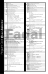 G0 G1 G2 G3 G4 G5 G8 G9 G15 G17 G53 G54-59 G66 G67 G68 G69 G70 G71 G73 G74 G74.1 G74.2 G75 Use Machine Coordinate System Fixture Offsets 1-6 Modal Subroutine Call Modal Subroutine Cancel Rotation (R0= Angle, XY= Center of Rotation) Rotation Cancel Check for Inch Parameter Check for Metric Parameter Peck Drill Q= Peck Size P= Feed Distance before next Peck (optional) I= Initial Peck J= Reducing Value for Subsequent Pecks K= Minimum Peck Size Left Hand Tap Format 1 Q= Thread Lead (1/pitch), F= RPM Format 2 S= RPM, F= Feed (Lead * RPM) Left Hand Rigid Tap Format 1 Q= Thread Lead (1/pitch), F= RPM Format 2 S= RPM, F= Feed (Lead * RPM) Prepare for G74.1 Tapping Head Cycle Format 1 Q= Thread Lead (1/pitch), F= RPM Format 2 S= RPM, F= Feed (Lead * RPM) Fine Boring Q= Amount of Y+ Shift or I= Amount & Direction of X Shift J= Amount & Direction of Y Shift Fixed Cycle Cancel Drill, Spot Drill Center Drill, Counterbore P= Dwell Time in Milliseconds 180,000/RPM= Dwell time for 3 revolutions Deep Hole Cycle Q= Peck Size P= Feed Distance before next Peck (optional) I= Initial Peck J= Reducing Value for Subsequent Pecks K= Minimum peck Size Right Hand Tap Format 1 Q= Thread Lead (1/pitch), F= RPM Format 2 S= RPM, F= Feed (Lead * RPM) Right Hand Rigid Tap Format 1 Q= Thread Lead (1/pitch), F= RPM Format 2 S= RPM, F= Feed (Lead * RPM) Prepare for G84.1 Bore In / Out Bore In / Spindle Off / Rapid Out Bore In / Out Bore In / Dwell / Out, P= Milliseconds Bore In / Dwell / Out, P= Milliseconds Absolute Positioning Incremental Positioning High Speed Execution (-2 System Only) High Speed Execution Cancel Also: Binary Compress / Analyzer End Point Binary Compress / Analyzer Start Point Absolute Preset 1/T Feed Rate Specification (Inverse Time) Feed Rate Specification DPM, IPM Return to Initial Plane Return to R0 Clearance Plane Fadal G17.1 G17.2 G18 G19 G20 G21 G28 G28.1 G29 G31 G31.1 G40 G41 G42 G43 G44 G45 G46 G47 G48 G49 G50 G50.1 G51 G76 G Codes Program Code Quick Reference G10 Rapid Travel Linear Interpolation Circular Interpolation (Clockwise) Circular Interpolation (Counter Clockwise) Dwell P= Time in Milliseconds Also: Non Modal In-position Check Non Modal Rapid Travel Accelerate (No Feed Ramps) Decelerate (Feed Ramps) Also: In Position Check Programmable Data Input L02= Fixture X, Y, Z, A, B, P= 0, 1-48 L10= Length, P= 1-99, R0= Amount L12= Diameter, P= 1-99, R0= Amount L13= Read Fixture, P= 1-24, R0= Z, R1= X, R2= Y L14= Read Length, P= 1-99, R0= Amount L15= Read Diameter, P= 1-99, R0= Amount L100 to L109= R Values, P= Amount YZ Circular Interpolation with the A Axis XY Plane Selection Also: Y Axis Cam Wrapping Q= A Axis Ratio/ [5p (cam dia. in inches)] Q= A Axis Ratio/ [(5/25.4p (cam dia. in mm)] P0= A Axis, P1= B Axis A/B Word Swap On A/B Word Swap Off ZX Plane YZ Plane Check for Inch Parameter Setting Check for Metric Parameter Setting Return to Zero Return from Jog Away Return from Zero Probe Touch Function Probe No Touch Function Cutter Radius Compensation Cancel Cutter Radius Compensation Left (climb) Cutter Radius Compensation Right (conve.) Tool Length Compensation Positive Tool Length Compensation Negative Tool Length Offset Single Expansion Tool Length Offset Single Reduction Tool Length Offset Double Expansion Tool Length Offset Double Reduction Tool Length Offset Cancel Ramp Slope Control Cancel Mirror Image Cancel Ramp Slope Control R0= Ramp Speed Value of .5 - 2. R0+= Z Axis, R0-= XY Axis Mirror Image Tool Load Compensation State Feed Rate Before the G51.2 Line R1= Target Spindle Load R2= Min. Percentage Feed Rate Reduction R3= Max. Percentage Feed Rate Increase R4= Time at Min. Feed Rate to Initiate Slide Hold Axis Scaling R1= Program (All three axes) R2= X R3= Y R4= Z Coordinate System Shift G80 G81 G82 G83 Fadal Machining Centers G51.1 G51.2 G51.3 G52 G84 G84.1 G84.2 G85 G86 G87 G88 G89 G90 G91 G91.1 G91.2 G91.3 G92 G93 G94 G98 G99 L9201 L93NN L94NN L95NN L9601 L9701 L9801 L9901 Note: Probe Functions R1+1-10, See User’s Manual for details Engraving: R1+0= Standard font R1+1= Stencil font R1+2= Serialized standard R1+3= Serialized stencil R2+= Height of letters R3+= Angle of word R4+= Serial increment R0= Clearance plane Z= Final depth F= Feed rate Bolt Circle R0= 1 (incremental X distance and direction from 1st position to center) R1= J (incremental Y distance and direction from 1st position to center) R2= Angular step between holes (+ angles for CCW, - angles for CW) NN= Amount of holes Mill Boring cycle CCW: R0+= Feed, R1+= Diameter of hole, NN= Repetitions Mill Boring cycle CW: R0+= Feed, R1+= Diameter of hole, NN= Repetitions Rectangular pocket CCW: R0+= Feed, R1+= Corner radius on tool, R2+= X, R3+= Y Rectangular pocket CW: R0+= Feed, R1+= Corner radius on tool, R2+= X, R3+= Y Circular pocket CCW: R0+= Feed, R1+= Corner radius on tool, R2+= Diameter of hole Circular pocket CW: R0+= Feed, R1+= Corner radius on tool, R2+= Diameter of hole Input the tool diameter in the tool table before using fixed subroutines, and use the D word in Format 2. Fadal M0 M1 M2 M3 M3.1 M3.2 M4 M4.1 M4.2 M5 M6 M7.1 M8 M8.1 M9 M10 M11 M12 M13 M14 M15 M16 M17 M18 M19 M20 M Codes Program Stop Optional Stop End of Program Spindle On Clockwise Sub–Spindle On Ignore Magnet CW Acknowledge Spindle Magnet Spindle On Counter Clockwise Sub–Spindle On Ignore Magnet CCW Acknowledge Spindle Magnet Spindle Off Tool Change Servo Coolant On Coolant On Servo Coolant On Coolant Off Cancel Reciprocation X Axis Reciprocation Y Axis Reciprocation Z Axis Reciprocation B Axis Reciprocation A Axis Reciprocation C Axis Reciprocation End of Subroutine Cycle Cushman Indexer Spindle Stop/Orient Cycle General Purpose Indexer Also: Automatic Doors Close Also: Toggle On/Off Hydrosweep End of all Subroutines Also: End of Program (Format 2) Exchange Pallets Store/Load Pallet A Load and Verify Pallet A Store/Load Pallet B Load and Verify Pallet B Low Range RPM High Range RPM Execute Fixed Cycle Positive Approach On Cancel Positive 