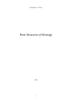 Alexander V. Frolov New Sources of Energy 2021 1 Dedicated to my parents, to my teachers and to all heroic researchers of new technologies Various ideas and technical solutions in the field of energy supply will be presented. The schemes and functional principles of energy generators that are not dependent on fuels, solar energy and wind are considered here. There are some constructive advices on experimental verification, as the initial information on this topic sometimes has no official reliable confirmation. The book can be useful for engineers and a wide range of readers interested in designing fuel-free energy systems. Published materials are taken from open sources or sent by the authors. This book has been published in Russia since 2011, in 2017 the ninth edition ISBN 978-5-76793858-2 was published by the Tula Polytechnic University. © Alexander V. Frolov, 2021 2 CONTENTS OF THE BOOK Preface Chapter 1 Our Goal Chapter 2 Theory of fuel less power generators Chapter 3 Gravity Can Do Work Chapter 4 Centrifugal Force Chapter 5 The Beginnings of Russian Electrical Engineering Chapter 6 Tesla’s Experiments and Theory Chapter 7 The work of the electric potential field Chapter 8 Free Energy Generator by Kapanadze Chapter 9 Resonance Processes Chapter 10 Using Permanent Magnets Chapter 11 Electromagnetic machines with very high efficiency Chapter 12 Unipolar Machines Chapter 13 Solid State Energy Converters Chapter 14 Thermal Energy Converters Chapter 15 Water and Hydrogen Chapter 16 Plasma and Fusion Chapter 17 Pulsing Photoelectric Effect in Power Engineering Epilogue 3 From the idea to practice! Preface In 2021 it will have been thirty years since I started studying the fascinating field of alternative energy. In the 1990s, in Russia it was started not only qualitative changes in politics and economy, but also it was time of new opportunities to get the new wide horizon of knowledge. The newspapers sometimes ran private advertisements in English, one of which caught my attention. It was about some new inventions... they wrote about "free energy," about sources of energy that don't use fuel. Is it fantastic?! I started to correspond with the authors of the advertisements, gradually the circle of acquaintances increased and I received in the mail the most interesting books, conference materials and articles about the work of scientists and inventors in different countries of the world. Since 1991 I am participant in many scientific conferences, where Russian and foreign scientists and researchers reported interesting news. In 1994 I bought my first computer and started using the internet. In 1996 we organized an international conference "New Ideas in Natural Science" in St. Petersburg. We have gathered over a hundred speakers from Russia and 30 researchers from other countries. In 2001 we founded the Faraday Laboratory Ltd., and we began experimental work. Also we published the international journal New Energy Technologies for several years. Undoubtedly, these processes have influenced technical progress in general, as a wide exchange of ideas and practical knowledge has produced results. The modern community of people interested in these subjects has representatives in all technically developed countries. We are united by the fact that the main directions of our research lead to the creation of new types of energy sources that do not require hydrocarbons or other fuels, do not depend on the sun and wind, and the introduction of new energy sources for new types of transport that do not operate according to the jet reactive principle. These changes mark a qualitatively new stage in the development of civilization. The importance of these areas was evident many years ago, but the world was not yet ready for their development and implementation. Maybe that's why the crisis came to our World. However, the current situation for these technologies is very favorable precisely because of this crisis that arose at the beginning of the 21st century and is getting worse. The reason for the crisis in the modern world economy is an artificial monopoly on fuel technologies in transport and energy supply. The only solution here is to replace the fuel concept with fundamentally new technical solutions that completely is fuel less. Modern technologies already make it possible to generate energy without fuel, sun or wind. It's not fiction. By adopting new technologies, all industries can reduce costs and increase profit, especially transportation and agricultural production. Countries that quickly start producing new energy sources can increase their production and lower the prices of their products on the world market. The world crisis is developing precisely because the world economy has "outgrown" the fuel system; it is cramped in the old framework. New technical solutions have been found, but they are not allowed to develop for one simple reason: fuel and raw material monopolists try to maintain their status instead of opening up new markets and new energy fuel less technologies. Only a change in the fuel concept of energy can bring the economies of the countries to a new level of development. It will also lead to the end many wars for fuel resources. The subject that we are going to discuss here is very large and wide. I will try to tell you the most interesting technologies. I hope my book will help readers develop their experimental research. 4 Chapter 1 Our goal and means to achieve it “The development and well-being of the city, the success of the nation, the advancement of all humanity are determined by the available energy. We shouldn't be content with simply improving steam engines or inventing new batteries. We have something better to work for, more challenging. We have to develop methods to obtain energy from inexhaustible sources, improve methods that do not require consumption of any materials. " Nikola Tesla "Mission of Science", 1900 Every meaningful activity has some purpose. In th