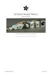 All About Stepper Motors Created by Bill Earl https://learn.adafruit.com/all-about-stepper-motors Last updated on 2021-11-15 06:12:15 PM EST ©Adafruit Industries Page 1 of 21 Table of Contents What is a Stepper Motor? 3 • A 4-phase unipolar motor. 4 Types of Steppers 5 • • • • • • • • • • Motor Size Step Count Gearing Shaft Style Wiring Coils and Phases Unipolar vs. Bipolar 5-Wire Motor 6-Wire Motor 8-Wire Motor 6 7 7 8 9 10 10 11 11 11 Driving a Stepper 12 • • • • Simple Unipolar Driver Simple Dual H-Bridge Driver Adafruit Motor Shield V2 Advanced CNC Controllers Matching the Driver to the Stepper • • • • • Know the Driver Specifications Know the Motor Specifications Obey the Law! Running Above the Law? Chopper Drives 13 13 14 15 16 16 17 17 18 19 FAQ 19 Resources 21 ©Adafruit Industries Page 2 of 21 What is a Stepper Motor? Stepper motors are DC motors that move in discrete steps. They have multiple coils that are organized in groups called "phases". By energizing each phase in sequence, the motor will rotate, one step at a time. With a computer controlled stepping you can achieve very precise positioning and/or speed control. For this reason, stepper motors are the motor of choice for many precision motion control applications. Stepper motors come in many different sizes and styles and electrical characteristics. This guide details what you need to know to pick the right motor for the job. ©Adafruit Industries Page 3 of 21 A 4-phase unipolar motor. Animation from Wikimedia Commons What are stepper motors good for? • Positioning – Since steppers move in precise repeatable steps, they excel in applications requiring precise positioning such as 3D printers, CNC, Camera platforms and X,Y Plotters. Some disk drives also use stepper motors to position the read/write head. • Speed Control – Precise increments of movement also allow for excellent control of rotational speed for process automation and robotics. • Low Speed Torque - Normal DC motors don't have very much torque at low speeds. A Stepper motor has maximum torque at low speeds, so they are a good choice for applications requiring low speed with high precision. ©Adafruit Industries Page 4 of 21 What are their limitations? • Low Efficiency – Unlike DC motors, stepper motor current consumption is independent of load. They draw the most current when they are doing no work at all. Because of this, they tend to run hot. • Limited High Speed Torque - In general, stepper motors have less torque at high speeds than at low speeds. Some steppers are optimized for better high-speed performance, but they need to be paired with an appropriate driver to achieve that performance. • No Feedback – Unlike servo motors, most steppers do not have integral feedback for position. Although great precision can be achieved running ‘open loop’. Limit switches or ‘home’ detectors are typically required for safety and/or to establish a reference position. Types of Steppers There are a wide variety of stepper types, some of which require very specialized drivers. For our purposes, we will focus on stepper motors that can be driven with commonly available drivers. These are: Permanent Magnet or Hybrid steppers, either 2-phase bipolar, or 4-phase unipolar. ©Adafruit Industries Page 5 of 21 Motor Size One of the first things to consider is the work that the motor has to do. As you might expect, larger motors are capable of delivering more power. Stepper motors come in sizes ranging from smaller than a peanut to big NEMA 57 monsters. Most motors have torque ratings. This is what you need to look at to decide if the motor has the strength to do what you want. NEMA 17 is a common size used in 3D printers and smaller CNC mills. Smaller motors find applications in many robotic and animatronic applications. The larger NEMA frames are common in CNC machines and industrial applications. The NEMA numbers define standard faceplate dimensions for mounting the motor. They do not define the other characteristics of a motor. Two different NEMA 17 motors may have entirely different electrical or mechanical specifications and are not necessarily interchangeable. ©Adafruit Industries Page 6 of 21 Step Count The next thing to consider is the positioning resolution you require. The number of steps per revolution ranges from 4 to 400. Commonly available step counts are 24, 48 and 200. Resolution is often expressed as degrees per step. A 1.8° motor is the same as a 200 step/revolution motor. The trade-off for high resolution is speed and torque. High step count motors top-out at lower RPMs than similar size. And the higher step-rates needed to turn these motors results in lower torque than a similar size low-step-count motor at similar speeds. Gearing Another way to achieve high positioning resolution is with gearing. A 32:1 gear-train applied to the output of an 8-steps/revolution motor will result in a 256 step motor. A gear train will also increase the torque of the motor. Some tiny geared steppers are capable of impressive torque. But the tradeoff of course is speed. Geared stepper motors are generally limited to low RPM applications. Backlash is another issue with geared motors. When the motor reverses direction, it needs to take up any slack there may be in the gear-train. This can affect positioning accuracy. ©Adafruit Industries Page 7 of 21 Shaft Style Another thing to consider is how the motor will interface with the rest of the drive system. Motors are available with a number of shaft styles: • Round or "D" Shaft: These are available in a variety of standard diameters and there are many pulleys, gears and shaft couplers designed to fit. "D" shafts have one flattened side to help prevent slippage. These are desirable when high torques are involved. • Geared shaft: Some shafts have gear teeth milled right into them. These are typically designed to mate with modular gear trains. • Lead-Screw Shaf