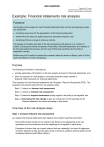UNCLASSIFIED Department of Finance Financial Statements Better Practice Guide Example: Financial statements risk analysis Example: Financial statements risk analysis Foreword Conducting a risk analysis for each financial statements item and its accompanying notes can assist with: prioritising resources for the preparation of the financial statements determining the extent of quality assurance processes required, and identifying if there is scope to improve controls. The degree of formality and rigor of the risk assessment will depend on a number of factors, including the overall complexity of the entity’s financial statements, the maturity of its financial statements process and the level of financial reporting risk the entity is prepared to accept. Entities may find it useful to present the summary table (as shown at Steps 3 and 4) to the audit committee for review of progress. Purpose The following information is intended to: provide explanatory information on the risk analysis process for financial statements, and show an example of a risk analysis, conducted using the steps outlined in Example: Risk framework for financial statements. This example is for the financial statements item Property, Plant and Equipment (PPE). The example is structured using the four risk analysis steps: Step 1. Conduct an inherent risk assessment Step 2. Conduct a residual risk assessment Step 3. Determine required treatments having regard to the entity’s risk appetite, and Step 4. Summarise the risk ratings to give an overall view of the reporting risk for financial statement line items and assign a risk owner. Overview of the risk analysis steps Step 1: Conduct inherent risk assessment (a) Assess the financial statements item against key inherent reporting risk factors. Each entity should decide on the inherent risk factors most appropriate to its own operations and circumstances and the weightings to be applied to each factor. Examples of factors that can impact inherent risk are materiality, the level of judgement involved, disparity of data sources and results of previous audits by internal audit and the Australian National Audit Office (ANAO). 1 UNCLASSIFIED Department of Finance Financial Statements Better Practice Guide Example: Financial statements risk analysis (b) Based on the results of step (a), determine an overall inherent risk rating of High, Medium or Low. An explanation of each risk level is set out below. High Medium Low Poses a significant financial reporting risk: Poses a moderate financial reporting risk: Poses a minimal financial reporting risk: likely to require ongoing and sustained resource commitment likely to require moderate level of resource commitment likely to require low level of resource commitment likely to involve complex control and accounting issues or balances that require estimation or judgement likely to involve less complex control and accounting issues likely to involve routine control and accounting issues Step 2: Conduct residual risk assessment The effectiveness of existing controls is then assessed and an overall residual reporting risk rating of High, Medium or Low is assigned for each financial statements item. The risk ratings are the same ones used at Step 1. A ‘High’ risk rating would mean that there is a reasonable possibility of significant financial reporting misstatements. The item would therefore require ongoing and sustained resource commitment. Conversely, a ‘Low’ risk rating would mean that there is a minimal financial reporting risk, which can be managed by routine control procedures and is unlikely to need the specific application of resources. Step 3: Summarise all risk ratings Collate all individual risk ratings for each financial statements item to give an overall picture of the reporting risk for all financial statements items. Step 4: Determine actions required The final step involves determining the action required for the entity taking into account the risk rating for each financial statements item. This may include assigning a risk owner. 2 UNCLASSIFIED Department of Finance Financial Statements Better Practice Guide Example: Financial statements risk analysis Example: Risk analysis An example risk analysis for the item ‘Property, Plant and Equipment (PPE)’ is below. The example serves as an illustration only, and does not cover all financial statements items. Step 1: Conduct inherent risk assessment Risk Factor (See Note 1) Materiality Key Questions to Consider How significant is the item as a percentage of total income, expenses, assets or liabilities? How significant is the item to the key users of the financial statements? Reporting requirements The item represents 12 per cent of total assets. H The item is topical because of recent Parliamentary interest. About 40 per cent of transactions have high dollar values. Are there any complex or new accounting requirements? None identified. L Does the item require considerable judgement to record the account balances and transactions correctly? Does it require estimates, management judgement or specific knowledge and skills of the item and related accounting standards? Extent of reliance Reason/Analysis How material are individual transactions? Are there any significant compliance issues? Level of judgement Rating (See Note 1) None identified. Judgement is required for capitalisation threshold, useful lives and revaluations. H Judgement is required in determining whether the asset belongs to other related entities. Is the accuracy of data dependent on areas, systems, experts or related entities outside the control of the finance team? Significant reliance on business areas to provide information. Does experience suggest that such data are provided in a timely and accurate manner? Data provided in prior year had significant errors. H Reliance on external experts with respect to valuation. Reliance on related entities to manage and correctly record assets in regional offices. 
