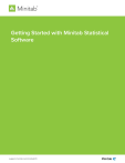 Getting Started with Minitab Statistical Software Getting Started with Minitab Statistical Software Contents 1 2 Introduction Overview 4 4 The story The Minitab user interface 4 4 Data types Open and examine a worksheet 6 7 In the next chapter 7 Graphing Data 8 Overview Create, interpret, and edit histograms 8 8 Create and interpret scatterplots Arrange multiple graphs on one layout Save a Minitab project In the next chapter 13 16 19 20 3 Analyzing Data Overview Summarize the data Compare two or more means Save the project In the next chapter 21 21 21 23 29 29 4 Assessing Quality Overview Create and interpret control charts Create and interpret capability statistics Save the project In the next chapter 30 30 30 35 36 36 5 Designing an Experiment 37 Overview Create a designed experiment 37 37 View the design Enter data into the worksheet 40 41 Analyze the design and interpret the results Use the stored model for additional analyses 42 45 Save the project In the next chapter 48 49 Repeat an Analysis Overview Perform an analysis using session commands 50 50 50 6 minitab.com 2 Getting Started with Minitab Statistical Software 7 Copy session commands Use an exec file to repeat the analysis Save the project In the next chapter 51 52 53 54 Importing and Preparing Data Overview Import data from different sources Prepare the data for your analysis When data values change Save the worksheet 55 55 55 57 60 60 Index minitab.com 61 3 Getting Started with Minitab Statistical Software 1. Introduction Overview Getting Started with Minitab Statistical Software introduces you to some of the most commonly used features and tasks in Minitab. Note: Some features in this guide are only available in the desktop app. When you use the web app on a Windows computer or on a Mac, you can open the desktop app to access all of the features that Minitab offers. Most statistical analyses require that you follow a series of steps, often directed by background knowledge or by the subject area that you are investigating. Chapters 2 through 5 illustrate the following steps: • Explore data with graphs and present results • Conduct statistical analyses • Assess quality • Design an experiment In chapters 6 and 7, you learn to do the following: • Use shortcuts to automate future analyses • Import data into Minitab from different file types and prepare the data for analysis The story A company that sells books online has three regional shipping centers. Each shipping center uses a different computer system to enter and process orders. The company wants to identify the most efficient computer system and to use that computer system at each shipping center. Throughout Getting Started with Minitab Statistical Software, you analyze data from the shipping centers as you learn to use Minitab. You create graphs and perform statistical analyses to identify the shipping center that has the most efficient computer system. You then concentrate on the data from this shipping center. First, you create control charts to test whether the shipping center’s process is in control. Then, you perform a capability analysis to test whether the process is operating within specification limits. Finally, you perform a designed experiment to determine ways to improve those processes. You also learn how to use session commands to automate future analyses and how to import data into Minitab. The Minitab user interface Everything you see in the Minitab interface is part of your project. minitab.com 4 Getting Started with Minitab Statistical Software The Minitab interface includes the following components: 1: Navigator Contains the list of output titles and report titles in your project. The output and reports are sorted from oldest to newest, with the most recent items at the bottom of the list. Right-click any title in the Navigator to do the following tasks: • Open the output or the report in split view to compare outputs and to easily drag and drop output into a report. • Rename the output or the report. The name is also updated in the output pane. • Send the output or the report to a different application, such as Microsoft® Word, Microsoft® PowerPoint, Minitab Engage™, or Minitab Workspace®. • Delete the analysis or the report from the project. You can undo this action from the Edit menu. Tip: If your project has multiple worksheets, you can view the list of output by worksheet. From the Navigator, click Group Commands by Worksheet and choose 2: Output pane Displays a list of the output pages and report pages in a project. Output pages display output such as graphs or tables after you run an analysis. Report pages display output that you collect from one or more output pages. You can create and edit reports in the desktop app. You can only open and view reports in the web app. From the output pane, you can do the following tasks: • To affect the contents of a tab, click the tab, then click next to the output title. • To affect a specific table or graph, click the graph or the table, then click minitab.com . 5 Getting Started with Minitab Statistical Software • To view output that is not currently visible, click the title of the output in the Navigator. Tip: To compare the output of two different analyses or reports, right-click the second piece of output in the Navigator and choose Open in Split View. 3: Data pane (worksheets) Displays the active worksheet. You can have multiple worksheets in the data pane; however, Minitab uses the data in the active worksheet to run the analysis. Tip: To rename a worksheet, double-click the name in the worksheet tab. 4: Command Line/History pane By default, this pane is not shown. To show this pane, choose View > Command Line/History. If you close Minitab while the pane is visible, the pane is visible the next time you open Minitab. Command Line The location where you can enter or paste command language to perform an analysis. History The command language that Minitab uses to run an a