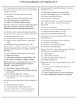 WWI Practice Questions- Test Wednesday, 4/5/17 1 The "clear and present danger" test that resulted from the Supreme Court decision in Schenck v. United States placed limits on the (1) free speech protections granted by the first amendment (2) powers of Congress under the elastic clause (3) rights of the accused in criminal cases (4) powers of the President during wartime 6 A major reason the United States became involved in World War I was to (1) (2) (3) (4) fulfill treaty obligations to European allies protect the shipping rights of a neutral nation reinforce the Monroe Doctrine gain colonies in the Pacific 7 In the 1920's, the Sacco and Vanzetti case, the Red Scare, and the activities of the Ku Klux Klan all 2 "American citizens act within their indisputable rights in represented taking their ships and in traveling whenever their (1) threats to civil liberties legitimate business calls them upon the high seas...." (2) victories over discrimination and persecution (3) support for the Prohibition movement United States efforts to protect the rights described in (4) greater social freedom for Americans this quotation were a main reason that the United States (1) entered World War I in 1917 (2) passed restrictive immigration laws in the 1920's (3) adopted a policy of high protective tariffs in the 1930's (4) established a blockade against Cuba in 1962 8 The influence of nativism during the 1920s is best illustrated by the (1) (2) (3) (4) increase in the popularity of the automobile emergence of the flappers expansion of trusts and monopolies growth of the Ku Klux Klan 3 President Woodrow Wilson's statement "The world must be made safe for democracy" was made to justify his 9 During World War I, relations between the United States decision to and Mexico were characterized mainly by (1) end United States imperialism in Latin America (1) military alliances (2) support tariff reform (2) a shared defense program (3) send troops into Mexico to capture Pancho Villa (3) improved political and economic ties (4) ask Congress to declare war against Germany (4) hostility and suspicion 4 Which argument was used by the Supreme Court in reaching its “clear and present danger” ruling in Schenck v. United States (1919)? (1) The military is under civilian control. (2) Powers are separated between the federal and state governments. (3) Constitutional rights are not absolute. (4) The Constitution provides for equal protection under the laws 5 A major reason the United States entered 'World War I was to (1) (2) (3) (4) maintain freedom of the seas stop impressment of United States sailors protect United States cities from foreign attacks counter a German invasion of Latin America 10 The intent of the United States immigration laws of the 1920s was to (1) increase economic opportunities for recent immigrants (2) encourage cultural diversity (3) restore an open-door policy toward immigration (4) restrict immigration through the use of quotas WWI Practice Questions- Test Wednesday, 4/5/17 11 What was one similarity between the Red Scare following World War I and the Cold War following World War II? (1) Fear of communism led to the suppression of the civil liberties of some Americans. (2) Large numbers of Russian revolutionaries settled in the United States. (3) Congressional investigations proved that the Federal Government was heavily infiltrated by Communist spies. (4) Renewed fighting between wartime enemies was a constant threat. 12 The "clear and present danger" principle stated by the Supreme Court in Schenck v. United States (1919) had the effect of (1) prohibiting the president from implementing a military draft (2) preventing the wartime internment of citizens (3) restricting the formation of defense alliances (4) limiting freedom of speech during wartime 13 Base your answer on the graph below and on your knowledge of social studies. 14 Which statement most accurately describes United States immigration policy since 1920? (1) Any person wishing to immigrate to the United States has been welcomed. (2) Limits have been placed on the numbers of immigrants allowed to enter the United States. (3) Only immigrants with jobs or relatives in the United States have been admitted. (4) Immigrants have been required to speak English before they can be admitted to the United States. 15 After World War I, which factor was the major cause of the migration of many African Americans to the North? (1) the start of the Harlem Renaissance (2) increased job opportunities in Northern cities (3) laws passed in Northern States to end racial discrimination (4) Federal Government job-training programs 16 In Schenck v. United States, the Supreme Court decided that a "clear and present danger" to the United States permitted (1) the expansion of Presidential power in time of peace (2) the establishment of a peacetime draft (3) restrictions of first amendment rights (4) limitations on the voting rights of minorities 17 To help win World War II, the federal government found it necessary to (1) (2) (3) (4) This graph supports the idea that the United States entered World War I to (1) (2) (3) (4) limit the spread of communism in Europe protect its economic interests stop attacks on its warships punish Germany for war crimes return to the gold standard outlaw labor unions impose rationing and price controls integrate the militar WWI Practice Questions- Test Wednesday, 4/5/17 18 Base your answer on the map below and on your knowledge of social studies. 22 Which action was a result of the other three? (1) Germany’s policy of unrestricted submarine warfare (2) United States entry into World War I (3) interception of the Zimmermann Note (4) United States loans to Allied nations 23 What was a major reason the United States entered World War I (1917)? (1) The Japanese had occupied Manchuria. (2) Foreign troops had landed on American soil. (3) The Austro-Hungarian Empire had invaded Belgium. (4) Germany had resumed unrestricted submarine w