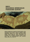 D R AF T BAB 5 BAGAIMANA MEMBANGUN PARADIGMA QURANI? Sumber: indonesiatanahairku-indonesia.blogspot.com Setelah mengkaji bab ini mahasiswa memiliki komitmen untuk membangun dunia yang damai, aman, dan sejahtera sebagai implementasi ajaran Islam; memiliki kedisiplinan dalam melaksanakan kewajiban dan santun dalam menuntut hak sebagai muslim Indonesia; mampu menganalisis dan menyajikan hasil penelaahan konseptual tentang sumber ajaran Islam dan kontekstualisasinya dalam kehidupan modern. (KD 2.5; 2.6; 3.5 dan 4.5) 128 A AF T l-Quran merupakan sumber utama ajaran Islam. Ia adalah satusatunya kitab suci yang masih asli. Isi ajarannya lengkap dan sempurna. Inti ajaran Al-Quran adalah pedoman hidup bagi manusia dalam upaya meraih kebahagiaan dunia dan akhirat. Al-Quran mengarahkan para pembacanya untuk berjalan di atas shirāthal mustaqīm (Jalan Lurus Allah Swt.) dan mengakhiri tugas kehidupan secara ḫusnul khātimah. Oleh karena itu, manusia dituntut untuk menjadikan Al-Quran tempat berkonsultasi, lalu menjadikannya sebagai suluh kehidupan. Philip K. Hitti (wafat 1978), seorang guru besar sastra Semit di Columbia dan Princenton, telah menulis sebuah buku monumental berjudul History of The Arabs. Mengenai Al-Quran, ia menulis di buku tersebut sebagai berikut. D R “Kata Al-Quran itu sendiri bermakna „bacaan‟, „kuliah‟, atau „wacana‟. Sejak awal kehadirannya, kitab ini dimaksudkan untuk dibaca dan diperdengarkan dalam bahasa aslinya, dengan khidmat dan hormat, baik dari pembaca maupun pendengarnya. Kekuatan dan daya tarik Al-Quran di antaranya dimunculkan oleh irama dan retorikanya, juga oleh sajak dan maknanya, yang tidak bisa dialihkan ke dalam terjemahan semua bahasa pun. Panjang Al-Quran adalah empat per lima panjang Perjanjian Baru yang berbahasa Arab. Dalam kedudukannya sebagai kitab suci umat Islam, Al-Quran memainkan peran penting lainnya, di antaranya sebagai pilar Islam dan otoritas tertinggi dalam persoalan-persoalan spiritual dan etika. Di bidang teologi, hukum, dan ilmu pengetahuan, menurut umat Islam, Al-Quran merupakan sumber ajaran yang mempunyai aspek-aspek yang berbeda-beda. Dalam hal ini Al-Quran menjadi buku ilmiah, buku bacaan untuk memperoleh pendidikan yang liberal. Di sekolah seperti AlAzhar, universitas terbesar di dunia, kitab ini masih menjadi landasan bagi seluruh kurikulum. Dari sisi bahasa dan sastra, pengaruh Al-Quran terbukti pada kenyataan bahwa pelbagai dialek orang-orang yang berbahasa Arab tidak terpecah ke dalam bahasa-bahasa yang berbeda, seperti yang terjadi pada bahasa-bahasa pecahan dari bahasa Romawi. Meskipun kini orang Irak mungkin mendapati sedikit kesulitan untuk memahami secara sempurna percakapan orang Maroko, namun ia bisa dengan mudah memahami tulisan mereka, karena baik di Irak maupun di Maroko, juga di Suriah, Arab, dan Mesir, semuanya mengikuti model dan gaya bahasa AlQuran. Pada masa Nabi Muhammad, tidak ada karya prosa Arab yang kualitasnya sangat baik. Karenanya, Al-Quran menjadi karya terbaik yang pertama, dan sejak saat itu Al-Quran terus menjadi model penciptaan berbagai karya prosa. Bahasa Al-Quran bersajak dan retoris, tetapi tidak puitis. Prosa sajaknya menjadi standar yang berusaha ditiru oleh hampir setiap penulis Arab konservatif hingga dewasa ini”. 129 AF T Amati pandangan Hitti di atas. Substansi apa yang dapat Anda peroleh darinya? Berikan analisis dan sikap kritis Anda, tulis ke dalam esai pendek! Lakukan tukar-menukar esai Anda dengan esai teman-teman Anda untuk saling dikritisi! Anda tentu akan memperoleh wawasan yang lebih kaya. Anda pasti bisa! A. Menelusuri Konsep dan Karakteristik Paradigma Qurani untuk Menghadapi Kehidupan Modern D R Apa yang dimaksud paradigma? Apa pula yang dimaksud paradigma Qurani? Mengapa Al-Quran dijadikan paradigma untuk menghadapi pelbagai persoalan? Secara etimologis kata paradigma dari bahasa Yunani yang asal katanya adalah para dan digma. Para mengandung arti „di samping‟, „di sebelah‟, dan „keadaan lingkungan‟. Digma berarti „sudut pandang‟, „teladan‟, „arketif; dan „ideal‟. Dapat dikatakan bahwa paradigma adalah cara pandang, cara berpikir, cara berpikir tentang suatu realitas. Adapun secara terminologis paradigma adalah cara berpikir berdasarkan pandangan yang menyeluruh dan konseptual terhadap suatu realitas atau suatu permasalahan dengan menggunakan teori-teori ilmiah yang sudah baku, eksperimen, dan metode keilmuan yang bisa dipercaya. Dengan demikian, paradigma Qurani adalah cara pandang dan cara berpikir tentang suatu realitas atau suatu permasalahan berdasarkan Al-Quran. Berikutnya, Mengapa Al-Quran dijadikan paradigma? Semua orang menyatakan bahwa ada suatu keyakinan dalam hati orangorang beriman, Al-Quran mengandung gagasan yang sempurna mengenai kehidupan; Al-Quran mengandung suatu gagasan murni yang bersifat metahistoris. Menurut Kuntowijoyo (2008), Al-Quran sesungguhnya menyediakan kemungkinan yang sangat besar untuk dijadikan cara berpikir. Pengembangan eksperimen-eksperimen ilmu pengetahuan berdasarkan paradigma Al-Quran jelas akan memperkaya khazanah ilmu pengetahuan umat manusia. Kegiatan itu mungkin bahkan tentu saja akan menjadi rambahan baru bagi munculnya ilmu-ilmu pengetahuan alternatif. Premis-premis normatif Al-Quran dapat dirumuskan menjadi teori-teori yang empiris dan rasional. Struktur transendental Al-Quran adalah sebuah ide normatif filosofis yang dapat dirumuskan menjadi paradigma teoretis. Paradigma Qurani akan memberikan kerangka bagi pertumbuhan ilmu pengetahuan empiris dan ilmu pengetahuan rasional yang orisinal, 130 D R AF T dalam arti sesuai dengan kebutuhan pragmatis masyarakat Islam yaitu untuk mengaktualisasikan misinya sebagai khalifah di muka bumi. Anak-anak dan remaja Madinah sedang mengaji Al-Quran di Masjid Nabawi. Di Indonesia berkembang pula Taman Pendidikan AlQuran (TPA) dan Pesantren Tahfiz Al-Quran. (Sumber: qurankuquranmu.blogspot.com) Setelah Al-Quran dibaca dan dihafalkan, tentu harus dibangun for