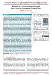 International Journal of Trend in Scientific Research and Development (IJTSRD) Volume 5 Issue 5, July-August 2021 Available Online: www.ijtsrd.com e-ISSN: 2456 – 6470 Research on Legal Protection of Personal Data Privacy of E-Commerce Platform Users Changjun Wu, Xinru Wang School of Law, Beijing Wuzi University, Beijing, China ABSTRACT As a product of the information age, e-commerce platform not only changes people's daily life, but also brings unprecedented impact and infection to users' personal data privacy. Under the influence of various factors, the phenomenon of data privacy infringement emerges in endlessly and becomes more and more common. Strengthening the protection of data privacy has become an urgent problem to be solved. At present, China has initially established laws and systems on the protection of personal data privacy, but they are not enough to effectively deal with many problems that have emerged. There is still a lack of comprehensive and systematic legal provisions and specific and effective implementation measures in legislation, law enforcement and justice. How to further control the violation of users' personal data privacy has become a new challenge we need to face. Based on the relevant laws and regulations such as the e-commerce law and the civil code, this paper analyzes the value, current situation, problems and other specific contents of the personal data privacy right of the users of e-commerce platform, points out the current situation of the legal protection of the rights and interests of the users of e-commerce platform, and further analyzes its shortcomings, Based on this, this paper leads to the e-commerce platform users' personal privacy, so as to put forward countermeasures and measures, and put forward the path to improve the legal system construction. The author thinks that we should innovate the concept of data privacy protection, learn from foreign advanced experience, strengthen domestic legal protection, improve the law enforcement means and the internal governance mechanism of the platform, so as to improve the legal system of personal data privacy of e-commerce platform users in China, maintain the order of e-commerce platform, and promote the sustainable and healthy development of data economy. How to cite this paper: Changjun Wu | Xinru Wang "Research on Legal Protection of Personal Data Privacy of E-Commerce Platform Users" Published in International Journal of Trend in Scientific Research IJTSRD44956 and Development (ijtsrd), ISSN: 24566470, Volume-5 | Issue-5, August 2021, pp.783-790, URL: www.ijtsrd.com/papers/ijtsrd44956.pdf Copyright © 2021 by author (s) and International Journal of Trend in Scientific Research and Development Journal. This is an Open Access article distributed under the terms of the Creative Commons Attribution License (CC BY 4.0) (http://creativecommons.org/licenses/by/4.0) KEYWORDS: Data privacy; Electronic Commerce; Laws and regulations; Personal information I. INTRODUCTION The infringement of personal data privacy of ecommerce platform users is serious, and it is urgent to improve the relevant legal protection system. This paper analyzes the current situation and problems of legal protection of e-commerce platform users' rights and interests, leads to the relevant content of ecommerce platform users' personal privacy, and expounds the relevant countermeasures and measures. According to the laws and regulations, this paper expounds the current situation of the legal protection of the users' personal data privacy of e-commerce platform, and analyzes the legislative, law enforcement, judicial and internal governance of ecommerce platform enterprises. In view of the current situation and problems of the legal protection of ecommerce platform users' personal data privacy, this paper puts forward the path to improve the legal system construction; This paper explains from four aspects: clarifying the concept definition and protection principles of e-commerce platform users' personal data privacy, improving the legal protection system of e-commerce platform users' personal data @ IJTSRD | Unique Paper ID – IJTSRD44956 | Volume – 5 | Issue – 5 | Jul-Aug 2021 Page 783 International Journal of Trend in Scientific Research and Development @ www.ijtsrd.com eISSN: 2456-6470 privacy, formulating the supervision methods and legal regulation means of e-commerce platform users' personal data privacy, and strengthening the awareness and ability construction of users' personal information protection. In the era of big data, human beings are always coerced in the turbulent wave of electronic information technology. Our daily life and big data are interrelated and inseparable. With the Internet as the media, the extensive use of personal information has become an important part of people's communication. In the process of compiling the civil code of the people's Republic of China (hereinafter referred to as the civil code), we have fully considered the background of the era of big data. In order to fully meet the needs of social reality, our legislature has proposed a new system: personal information protection system. This move shows that the state attaches great importance to the privacy of personal data of public platform users. However, at this critical period of great development, great change and great adjustment, its legal status is not clear. Therefore, scholars in China's legal circles have launched a heated discussion based on the "ecommerce law of the people's Republic of China" (hereinafter referred to as the "e-commerce law"), To guide judicial practice with legal theory and provide comprehensive legal protection for users' personal data privacy. Based on the civil code, the e-commerce law and the data security law, this paper takes the privacy and legal protection of personal data of users of e-commerce platform as the research object, analyzes and discusses the theory and practice of the privacy and legal prot