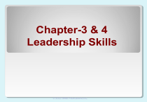 Chapter-3 & 4 Leadership Skills © 2012 SAGE Publications, Inc. Discussion Questions What skills do you think are most important for leaders to possess? Why have traits of leaders historically received more attention than leadership skills? © 2012 SAGE Publications, Inc. Question: 07 What Are Leadership Skills? Leadership skills refer to learned competencies that leaders are able to demonstrate in performance. Leadership skills: Give people the capacity to influence others o Are a critical component in successful leadership o © 2012 SAGE Publications, Inc. Question: 07 Core Leadership Skills Administrative & Technical Skills Interpersonal/Human Conceptual Skills © 2012 SAGE Publications, Inc. Skills Question: 08 Administrative Skills The competencies needed to carry out the purposes & goals of the organization o Involve planning, organizing work, coordinating work activities o Allow leaders to accomplish the mundane, but critically important, aspects of leadership Divided into three specific skill sets: 1.Managing People 2.Managing Resources 3.Showing Technical Competence © 2012 SAGE Publications, Inc. Managing People An effective leader connects with people & understands the tasks, the skills required to perform them, & the overall environment. oIncludes helping employees to work as a team motivating them to do their best promoting satisfying relationships among employees o Occupies the most time o Involves communicating with multiple stakeholders “Management by walking around” © 2012 SAGE Publications, Inc. Human Skills Human skills – having knowledge about and being able to work with people. ◦ Being aware of one’s own perspective and others’ perspectives at the same time ◦ Assisting group members in working cooperatively to achieve common goals ◦ Creating an atmosphere of trust and empowerment of members ◦ Important at all levels of the organization © 2012 SAGE Publications, Inc. Human Skills Examples of human (or people) skills: Assist group members in working cooperatively as a group to achieve common goals Adapt Create your own ideas to those of others an atmosphere of trust and comfort Encourage Being involvement in planning sensitive to the needs of others Motivating others © 2012 SAGE Publications, Inc. Managing Resources Resources can be money, supplies, equipment, space, etc., anything needed to operate an organization. Managing resources requires a leader to be competent in both obtaining and allocating resources. Ex.: cross-country coach buying new uniforms for the team T h e ultimate responsibility of resource management rests on the leader. © 2012 SAGE Publications, Inc. Question: 09 Technical Competence Technical competence involves having specialized knowledge about our work. o A leader with technical competence understands the intricacies of how the organization functions. o A leader is more effective when he or she has knowledge about the activities subordinates are asked to perform. o A leader is not required to have technical competence in every situation. © 2012 SAGE Publications, Inc. Question: 09 Technical Competence Technical skill - having knowledge about and being proficient in a specific type of work or activity. ◦ Specialized competencies ◦ Analytical ability ◦ Use of appropriate tools and techniques Technical skills involve hands-on ability with a product or process Most important at lower levels of management © 2012 SAGE Publications, Inc. Question: 09 Technical Skills Examples of technical skills: Competent in a specialized area, analytical ability, and the ability to use appropriate tools and techniques Understanding what is needed to get the job done; understanding the physical operation Hands-on activity with basic product or process knowledge; producing the actual products a company is designed to produce © 2012 SAGE Publications, Inc. Question: 10 Interpersonal Skills Interpersonal Skills People skills—the abilities that help a leader to work effectively with subordinates, peers, & superiors, to accomplish the organization’s goals © 2012 SAGE Publications, Inc. Question: 10 Interpersonal Skills Divided into three specific skill sets: 1. Being Socially Perceptive 2. Showing Emotional Intelligence 3. Managing Interpersonal Conflict © 2012 SAGE Publications, Inc. Being Socially Perceptive Being socially perceptive involves understanding the unique needs, goals, & demands of different constituencies Having insight into & awareness of: owhat is important to others ohow they are motivated othe problems they face ohow they react to change © 2012 SAGE Publications, Inc. Showing Emotional Intelligence Emotional Intelligence: oa person’s ability to understand his or her own & others’ emotions oapply this to life’s tasks Emotional intelligence is the ability to: operceive & express emotions ouse emotions to facilitate thinking ounderstand & reason with emotions omanage emotions effectively © 2012 SAGE Publications, Inc. Enhancing Emotional Intelligence 1. Leaders need to work on becoming aware of their own emotions. 2. A leader should train to become aware of the emotions of others. 3. A leader needs to learn how to regulate his or her emotions & put them to good use. © 2012 SAGE Publications, Inc. Conflict creates the need for change and occurs as the result of change. Conflict is the struggle between two or more individuals over perceived differences regarding substantive issues or relational issues. Although uncomfortable, conflict is not unhealthy nor necessarily bad. If conflict is managed effectively there is a reductionof stress, an increase in creative problem solving, and improved group relations. Handling Conflict © 2012 SAGE Publications, Inc. Question: 11 Conceptual Skills Conceptual skill - the ability to do the mental work of shaping meaning of organizational policy or issues (what company stands for and where it’s going) ◦ Works easily with abstraction and hypothetical notions ◦ Central to c