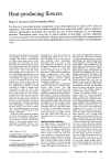 Heat-producing flowers Roger S. Seymour and Paul Schultze-Motel The flowers of some plants produce enough heat to raise their temperatures as much as 35°C above air temperature. Three species have been shown to regulate flower temperature within a narrow range by an unknown physiological mechanism that increases the rate of heat production as air temperature decreases. Thermogenic plants occur only in ancient families of seed plants, and have apparently evolved in association with beetle pollinators. Because many beetles require high body temperatures for activity, the warm environment inside thermoregulating flowers may be an energetic reward during their visits. Evolution of flowering plants has produced an astounding diversity of reproductive ‘strategies’ that promote cross-pollination [l]. Many flowers attract animal vectors, principally insects and birds, and reward them with energy. The attractants are generally conspicuous blossoms, often associated with chemical scents, and the rewards are usually nectar, starch and pollen. Some insect-pollinated flowers attract their visitors by resembling something they are not, for example another insect to mate with, or a dead animal to lay eggs in, and a reward may not be forthcoming. One of the more unusual tactics occurs in flowers that raise their temperatures by producing their own heat. Although heat production is usually considered by botanists to augment scent vaporization to make the flower more attractive [2], in some cases it may also be a direct energy reward for insect visitors. Evidence for the latter idea comes from the discovery that some flowers maintain a high, nearly constant internal temperature in the face of large fluctuations in environmental temperature-the flowers physiologically thermoregulate - rather like ‘warmblooded’ animals. This article considers these heat-producing plants, and concentrates on the role of thermoregulation in the biology of pollination. All flowers contain metabolic biochemical activity, the by-product of which is heat; thus they are all technically ‘thermogenic’. In most flowers, however, reactions occur slowly, or heat escapes quickly, and no appreciable temperature elevation takes place. The plants that botanists recognize as Roger S. Seymour, BA, Ph.D. Is Associate Professor of Zoology at the University of Adelaide. His usual research involves respiration and cardiovascular physiology of animals. Paul Schultze-Motel, Ph.D. Is Postdoctoral Research Associate at the University of Adelaide. His doctoral research concerned temperature regulation in insects. thermogenic are those that produce an unusually large amount of heat, for the sake of producing it, not as a by-product of other metabolic activity. Accordingly, thermogenic flowers are able to raise their temperature significantly. By this definition, thermogenic flowers and cones are known to occur in several plant families including Araceae (aroids or arum lilies), Aristolochiaceae (Dutchman’s pipes), Nymphaeaceae (water lilies), Nelumbonaceae (true lotuses), Annonaceae (custard apples), Arecaceae (palms), Cyclanthaceae (Panama hat palms), and Cycadaceae (cycads) [1,3]. A unifying characteristic of thermogenic flowers is that they are generally large, because small flowers with high surface:volume ratios are unable to retain enough heat to raise flower temperature noticeably. Another characteristic of thermogenie flowers is that they are protogynous, that is, the female parts of the flower mature first and pollination takes place before the male parts release pollen. Thus insects that are attracted to the flower bring in pollen from other plants and accomplish crossfertilization. They may be physically trapped by the flower, or encouraged to remain in it by rewards of food or shelter, until the female parts become non-receptive and the male parts release pollen. Then they are encouraged to leave to carry pollen to other plants. Heating enhances attraction The major episode of heat production in these plants usually corresponds to the period when the female flower parts are most receptive to pollination and when the flower’s scent is strongest. Thermogenic flowers produce aromas that range from sweet perfumes to nauseating stenches. Many species produce indoles and scatoles that mimic the pungent aroma of decaying flesh or dung. Carrion beetles and flies attracted to the plant to feed and lay eggs may be trapped inside the inflorescence. For example, the dragon lily, Dracunculus vul- Copyright 0 1997 Elsevier Scbence Ltd. All right reserved. 0160-9327/97/$17.00. PII: SO160-9327(97)0104 guris, from the Mediterranean region, produces half-metre inflorescences consisting of a dark purple spadix encased in a leathery spathe (Figure l(a)). When the spathe opens in the morning to reveal its dark purple inside surface, which resembles liver, the spadix begins to produce heat and a horrific odour reminiscent of a dead cat. Pollenbearing insects, chiefly carrion beetles and flies, find this irresistible and fly in to the landing area provided by the spathe. Some fall into the bottom of the chamber and provide pollen to receptive female florets. Having performed their duty, they are unable to escape because the slippery walls do not provide a foothold. As heat production subsides the next day, the male florets shower the insects with pollen, the inner surface of the floral chamber changes to provide traction, and they climb out. Another well-studied example is the Amazon water lily, Victoria amuzonica, which combines heat production with a change in petal colour to control the behaviour of beetle pollinators during a two-day sequence (Figure l(b)) [4]. Beautiful white petals of these 20 cm flowers open in the evening of the first day. At this time flower temperature rises to about 10°C above ambient air and a strong fruity odour is produced. The display and scent immediately attract numerous 1.0-2.5 cm-long scarab beetles (genus Cy