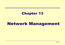 Chapter 13 Network Management 13 - 1 Outline • Introduction • Organizing the Management Function • Configuration Management • Performance and Fault Management • End User Support • Cost Management Copyright 2005 John Wiley & Sons, Inc 13 - 2 Introduction • Network management – Process of operating, monitoring and controlling the network to ensure that • Network working properly (efficient data exchange) • Providing value to its users • A lack of planning and organization – Managers spend their time firefighting (reactive mode) • Dealing with breakdowns and immediate problems • Main areas of network management function: – – – – Configuration management Performance and fault management End user support Cost management Copyright 2005 John Wiley & Sons, Inc 13 - 3 What Do Network Managers Do? If you were to become a network manger, some of your responsibilities and tasks would be to • Manage the day-to-day operations of the networks • Provide support to network users • Ensure the network is operating reliably • Evaluate and acquire network hardware, software, and services • Manage the network technical staff • Manage the network budget, which emphasize on controlling costs • Develop a strategic (long-term) networking and voice communications plan to meet the organizations policies and goals • Keep abreast of the latest technological developments in computers, data communications devices, network software, and the internet • Keep abreast of the latest technological developments in the telephone technologies and metropolitan area and local area network services • Assist senior management in understanding the business implications of network decisions and the role of the network in business operations Copyright 2005 John Wiley & Sons, Inc 13 - 4 Organizing Network Management Function • Special organizations problems presented by networking functions – Decentralized • Developers, gatherers, and users of data – Centralized • Traditional management of voice and data networks – Networks and servers owned and operated by centralized IT department • Factors impacting organization of management functions – Shift to LANs and Internet – Integrating LANs, WANs, and Internet – Integrating voice and data communications Copyright 2005 John Wiley & Sons, Inc 13 - 5 Shift to LANs and the Internet • Large scale move from using mainframes and terminals to PCs, LANs and the Internet. – Future of network management: • Successful management of multiple clients and servers over LANs, BN,s and Internet • Focus on integration of organizational networks and applications. Main problems: – Not all LANs use the same architecture – More types of network technology used, the more complex network management becomes • Staff must be familiar with many different types of devices Copyright 2005 John Wiley & Sons, Inc 13 - 6 Integrating LANs, WANs and Internet • Keys integrating them into one organization – Both LAN/Web and WAN managers to recognize that they no longer have power • No more independent decision without considering the impact on other parts • Single overall goal that best meets the needs of the entire organizations • Require some managers to compromise on policies that may not be in the best interest of its own network – Must adopt a written charter to • Define its purpose, operational philosophy, and long range goals – Must develop individual procedures to implement policies Copyright 2005 John Wiley & Sons, Inc 13 - 7 Integrating Voice & Data • Traditional voice and data networks (e.g., POTS and LANs) handled by separate managers – Voice Communication Manager (Facilities department): • Supervise telephone switchboard,; coordinate installation and maintenance of the voice network – Data Communication Manager (IT department): • Install own data circuit; install and maintain computers • Benefits of Integrating voice and data – Simplifies the network, and can lower network costs – Eliminates one department – Will likely happen within the next few years Copyright 2005 John Wiley & Sons, Inc 13 - 8 Configuration Management • Major functions: – Management of the network’s hardware and software – Documenting the configuration – Ensuring that they are updated when there is a change in the configuration Copyright 2005 John Wiley & Sons, Inc 13 - 9 Configuring Network and Clients • Adding and deleting user accounts – New user addition • Categorized as a member of a group – With corresponding privileges • Given a standard login script – Commands to run when user logs in • Updating software on client computers – Usually done automatically by Electronic Software Distribution (ESD) over the network at predefined time • Reduces cost of configuration management (long run) • Eliminates manual updates for each client • Produces accurate documents and reports • Being standardized: Desktop Management Interface (DMI) Copyright 2005 John Wiley & Sons, Inc 13 - 10 Documenting Configuration • Includes information on – Network hardware and software, network documentation – User and application profiles • Documenting network hardware – Typically done via a set of diagrams documenting • Circuits (number, type, location, leased or owned) • Servers, devices, client computers – Must be supplemented with details on each device • Serial number, vendor, date of purchase, warranty information, repair history, phone number for repairs, etc • Any other info (e.g., contact info of managers) Copyright 2005 John Wiley & Sons, Inc 13 - 11 Network Configuration Diagram Copyright 2005 John Wiley & Sons, Inc 13 - 12 Documenting Configuration (Cont.) • Documenting software includes information on – Network OS and any special-purpose network software • Version, release date, etc – Can be helpful in negotiating site licenses • Documentation of User & Application profiles –
