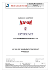 Quality Management System Doc Id: Business_Blueprint_PP_1.0 BUSINESS BLUEPRINT KAY BOUVET ENGINEERING PVT.LTD. MY SAP ERP IMPLEMENTATION PROJECT PP MODULE SANDESH L.BONDE SAP Consultant-PP, ADROIT INFOTECH PVT. LTD. PUNE. Date of issue : Reviewed by: Kishor Joshi MR.KHANWILKAR B.P.O. K.B.E.P.L. Issue 1, Template Version : 1.0 Page 1 of 36 Approved by : Atul Joshi Confidentiality Clause: Adroit InfoTech reserves the copyright on all material and ideas in this document. No material should be reproduced in any form (electronic or written), in part or whole without the express consent of Adroit InfoTech. The contents of this document are strictly confidential and should not be shared with any other company without the prior permission of Adroit InfoTech. Quality Management System Doc Id: Business_Blueprint_PP_1.0 MODULES TO BE IMPLEMENTED NO. Date of issue : Reviewed by: Kishor Joshi MODULE 1 PP MODULE 2 QM MODULE 3 SD MODULE 4 FI MODULE 5 MM MODULE 6 CO MODULE 7 PS MODULE Issue 1, Template Version : 1.0 Page 2 of 36 Approved by : Atul Joshi Confidentiality Clause: Adroit InfoTech reserves the copyright on all material and ideas in this document. No material should be reproduced in any form (electronic or written), in part or whole without the express consent of Adroit InfoTech. The contents of this document are strictly confidential and should not be shared with any other company without the prior permission of Adroit InfoTech. Quality Management System Doc Id: Business_Blueprint_PP_1.0 CONTENTS No. Topic Page numbers Start 1. PURPOSE 04 2 PRE REQUISITIES 04 3 ORGANIZATIONAL STRUCTURE 04 4 MATERIAL MASTER 07 A) BILL OF MATERIAL 09 B) WORK CENTER 11 C) ROUTING 15 5. PRODUCTION PLANNING- DEMAND MANAGEMENT 19 6. PRODUCTION PLANNING -MRP 20 7 MRP CONTROLLER 22 8 CAPACITY PLANNING 22 9 PRODUCTION PLANNING 25 10 PRODUCTION PROCESS EXECUTION 28 11 SAP PROCESS FLOW 31 12 PP STANDARD REPORT 32 13 ANNEXTURE 1 BUSINESS PROCESS OWNER’S ACCEPTANCE SIGN OFF (BBP) 33 14 Date of issue : Reviewed by: Kishor Joshi Issue 1, Template Version : 1.0 35 Page 3 of 36 Approved by : Atul Joshi Confidentiality Clause: Adroit InfoTech reserves the copyright on all material and ideas in this document. No material should be reproduced in any form (electronic or written), in part or whole without the express consent of Adroit InfoTech. The contents of this document are strictly confidential and should not be shared with any other company without the prior permission of Adroit InfoTech. Quality Management System Doc Id: Business_Blueprint_PP_1.0 1) PURPOSE:This document describes the proposed blue print for SAP Implementation at Kay Bouvet Engineering Pvt. Ltd. (KBEPL). It outlines all the business processes associated within the scope of implementation. The intent of the document is to define the TO-BE model for the process for which an AS-IS study was conducted during the knowledge gathering phase. The production planning within SAP (PP) would encompass all activities relating to Material Requirement Planning (MRP) and processing through production. It would include master data maintenance and the controlling transactions needed for the same. The document is a collaborative effort between the implementation team of Adroit InfoTech Pvt.Ltd., Pune and the Core Team of Kay Bouvet Engineering Pvt. Ltd. The document also represents the agreement of the core team to the proposed processes in individual modules of the project and also of the deviations, where an agreement needs to be reached on the process change. The blueprint aims to cover all the business processes within the scope of the project and in case there are any processes which are not covered for lack of clarity, better solution, etc these would be detailed as additions to the blueprint as and when they are ready. 2) PRE- REQUISITIES:- MASTER DATA & ORGANIZATIONAL DATA We are required to have essential master and organizational data to perform the activity, such as the data reflects the organization structure of K.B.E.P.L. and master data that suits its operational focus. Following are the lists of data required. • Organizational Structure • Material Master • BOM • Work center.*9369*-3 • Routing 3) ORGANIZATIONAL STRUCTURE:3.1 AS-IS AT KBEPL At present no formal organizational structure exists at Kay Bouvet Engineering Pvt.Ltd. Date of issue : Reviewed by: Kishor Joshi Issue 1, Template Version : 1.0 Page 4 of 36 Approved by : Atul Joshi Confidentiality Clause: Adroit InfoTech reserves the copyright on all material and ideas in this document. No material should be reproduced in any form (electronic or written), in part or whole without the express consent of Adroit InfoTech. The contents of this document are strictly confidential and should not be shared with any other company without the prior permission of Adroit InfoTech. Quality Management System Doc Id: Business_Blueprint_PP_1.0 3.2 TO-BE AT KBEPL KAY GROUP CLIENT KBEL COMPANY CODE B0 PRODUCTION PLANT STORAGE LOCATION Capacity KB01 SL 01 WORK CENTER EQUIPMENT KB02 SL 02 KB03 SL 03 WC 01 WC 02 WC 03 EQ EQ EQ COMPANY A company is an organizational unit in accounting, which represents a business organization according to the requirement of commercial law in a particular country. In the SAP system, consolidation function in financial accounting is based on companies. COMPANY KAY GROUP COMPANY NAME KAY BOUVET ENGINEERING PVT.LTD. Date of issue : Reviewed by: Kishor Joshi Issue 1, Template Version : 1.0 Page 5 of 36 Approved by : Atul Joshi Confidentiality Clause: Adroit InfoTech reserves the copyright on all material and ideas in this document. No material should be reproduced in any form (electronic or written), in part or whole without the express consent of Adroit InfoTech. The contents of this document are strictly confidential and should not be shared with any other company without the prior permission of Adroit InfoTech. Quality Management System Doc Id: Business_Blueprint_PP_1.0 For Production 