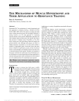 BRIEF REVIEW THE MECHANISMS OF MUSCLE HYPERTROPHY AND THEIR APPLICATION TO RESISTANCE TRAINING BRAD J. SCHOENFELD Global Fitness Services, Scarsdale, New York Downloaded from http://journals.lww.com/nsca-jscr by BhDMf5ePHKav1zEoum1tQfN4a+kJLhEZgbsIHo4XMi0hCywCX1AWnYQp/IlQrHD3i3D0OdRyi7TvSFl4Cf3VC4/OAVpDDa8KKGKV0Ymy+78= on 01/20/2022 ABSTRACT Schoenfeld, BJ. The mechanisms of muscle hypertrophy and their application to resistance training. J Strength Cond Res 24(10): 2857–2872, 2010—The quest to increase lean body mass is widely pursued by those who lift weights. Research is lacking, however, as to the best approach for maximizing exercise-induced muscle growth. Bodybuilders generally train with moderate loads and fairly short rest intervals that induce high amounts of metabolic stress. Powerlifters, on the other hand, routinely train with high-intensity loads and lengthy rest periods between sets. Although both groups are known to display impressive muscularity, it is not clear which method is superior for hypertrophic gains. It has been shown that many factors mediate the hypertrophic process and that mechanical tension, muscle damage, and metabolic stress all can play a role in exercise-induced muscle growth. Therefore, the purpose of this paper is twofold: (a) to extensively review the literature as to the mechanisms of muscle hypertrophy and their application to exercise training and (b) to draw conclusions from the research as to the optimal protocol for maximizing muscle growth. KEY WORDS muscle development, hypertrophic response, muscle growth, muscle tension, muscle damage, metabolic stress INTRODUCTION T he quest to increase lean body mass is widely pursued by those who lift weights. Given the strong correlation between muscle cross-sectional area and muscular strength (111), increased muscle mass is a primary goal of athletes involved in strength and power sports such as football, rugby, and powerlifting. Muscle mass also is vital to the sport of bodybuilding, where competitors are judged on both the quantity and quality of their muscle development. On a more general level, muscle hypertrophy is also pursued by the many recreational lifters who aspire to develop their physiques to the fullest. Therefore, the maximization of muscle mass has far reaching Address correspondence to Brad Schoenfeld, brad@workout911.com. 24(10)/2857–2872 Journal of Strength and Conditioning Research Ó 2010 National Strength and Conditioning Association implications to a variety of populations associated with sports and health. In untrained subjects, muscle hypertrophy is virtually nonexistent during the initial stages of resistance training, with the majority of strength gains resulting from neural adaptations (124). Within a couple of months of training, however, hypertrophy begins to become the dominant factor, with the upper extremities shown to hypertrophy before the lower extremities (124,177). Genetic background, age, gender, and other factors have been shown to mediate the hypertrophic response to a training protocol, affecting both the rate and the total amount of gains in lean muscle mass (93). Further, it becomes progressively more difficult to increase lean muscle mass as one gains training experience, heightening the importance of proper routine design. Although muscle hypertrophy can be attained through a wide range of resistance training programs, the principle of specificity dictates that some routines will promote greater hypertrophy than others (16). Research is lacking, however, as to the best approach for achieving this goal. Bodybuilders generally train with moderate loads and fairly short rest intervals that induce high amounts of metabolic stress. Powerlifters, on the other hand, routinely train with highintensity loads and lengthy rest periods between sets. Although both groups are known to display impressive muscularity, it is not clear which method is best for maximizing hypertrophic gains (149) or whether other training methods may perhaps be superior. Therefore, the purpose of this paper is twofold: (a) to extensively review the literature as to the mechanisms of muscle hypertrophy and their application to resistance training variables and (b) to draw conclusions from the research and develop a hypertrophy-specific routine for maximizing muscle growth. TYPES OF MUSCLE HYPERTROPHY Muscle hypertrophy can be considered distinct and separate from muscle hyperplasia. During hypertrophy, contractile elements enlarge and the extracellular matrix expands to support growth (187). This is in contrast to hyperplasia, which results in an increase in the number of fibers within a muscle. Contractile hypertrophy can occur either by adding sarcomeres in series or in parallel. The majority of exercise-induced hypertrophy subsequent to traditional resistance training programs results from an VOLUME 24 | NUMBER 10 | OCTOBER 2010 | 2857 Copyright © National Strength and Conditioning Association Unauthorized reproduction of this article is prohibited. Mechanisms of Muscle Hypertrophy increase of sarcomeres and myofibrils added in parallel (135,179). When skeletal muscle is subjected to an overload stimulus, it causes perturbations in myofibers and the related extracellular matrix. This sets off a chain of myogenic events that ultimately leads to an increase in the size and amounts of the myofibrillar contractile proteins actin and myosin, and the total number of sarcomeres in parallel. This, in turn, augments the diameter of individual fibers and thereby results in an increase in muscle cross-sectional area (182). A serial increase in sarcomeres results in a given muscle length corresponding to a shorter sarcomere length (182). Inseries hypertrophy has been shown to occur when muscle is forced to adapt to a new functional length. This is seen with limbs that are placed in a cast, where immobilization of a joint at long muscle lengths results in an increased number of sarcomeres in seri