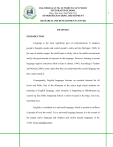 DALUBHASAAN NG LUNSOD NG SAN PABLO INTEGRATED SCHOOL Brgy. San Jose, San Pablo City SENIOR HIGH SCHOOL DEPARTMENT RESEARCH AND DEVELOPMENT CENTER CHAPTER 1 INTRODUCTION Language is the most significant part of communication. It sharpens people’s thoughts, guides and control people’s entire activity (Bolinger, 1968). In the case of mother tongue, the child learns it easily, due to favorable environment and by the great amount of exposure to the language. However, learning a second language requires conscious effort to learn it (James, 1996). According to Tatham and Morton (2006), many report that they can understand the second language but they cannot speak it. Consequently, English languages become an essential demand for all levels and fields. One of the dilemmas of the senior high school students are reporting in English language, same situation is happening in Dalubhasaan ng Lunsod ng San Pablo Integrated School a school located in the Brgy. San Jose, San Pablo City. English is considered as a universal language, which is spoken by millions of people all over the world. It is a universal language because it is the second of the largest native language and simplest and easiest natural languages in the world. (www.omniglot.com). 1 DALUBHASAAN NG LUNSOD NG SAN PABLO INTEGRATED SCHOOL Brgy. San Jose, San Pablo City SENIOR HIGH SCHOOL DEPARTMENT RESEARCH AND DEVELOPMENT CENTER According to Idrus and Salleh (2008), effective communication is about being clear, fluent and to the point, which can catch the attention of the audience even in groups or one-to-one situation. The researchers observed that some students in Dalubhasaan ng Lunsod ng San Pablo Integrated School (DLSP IS) Students . Most of the times, the students are more affected when it comes in oral reporting. Especially, to those people that are not using English as their native language. (www.omniglot.com) Nowadays, many students are not sure if they will be able to pursue a Degree in college. According to Souriyavongsa (2013), main causes of low of English language learning of the students are: students of English foundation background and students lack of confidence to use English. Thus, this study is conducted to determine the problems encountered in English oral reporting of the selected Senior High School students of the Dalubhasaan ng Lunsod ng San Pablo Integrated School. Also, to help students improve their reporting skills 2 DALUBHASAAN NG LUNSOD NG SAN PABLO INTEGRATED SCHOOL Brgy. San Jose, San Pablo City SENIOR HIGH SCHOOL DEPARTMENT RESEARCH AND DEVELOPMENT CENTER Statement of the Problem This study aims to know the Problems Encountered in English Oral reporting of the selected Senior high school students of the Dalubhasaan ng Lunsod ng San Pablo Integrated School. Specifically, this study attempts to seek for the answer to the following questions: 1. What is the Respondents profile in terms of: 1.1 Age 1.2 Gender 2. What are the problems that can affect the English oral reporting of the selected Senior high school students of Dalubhasaan ng Lunsod ng San Pablo Integrated School? 2.1 Environment Factor 2.2 Individual Factor 3. Do the problems encountered by selected senior high school students have a significant effect in English oral reporting? 3 DALUBHASAAN NG LUNSOD NG SAN PABLO INTEGRATED SCHOOL Brgy. San Jose, San Pablo City SENIOR HIGH SCHOOL DEPARTMENT RESEARCH AND DEVELOPMENT CENTER 4. What is the implication of the study Problems Encountered in English oral reporting of selected Senior High school students of Dalubhasaan ng Lunsod ng San Pablo Integrated School S.Y. 2018 – 2019? Hypothesis Null- Problems encountered have no significant effect in English oral reporting of selected Senior High School students of Dalubhasaan ng Lunsod ng San Pablo Integrated School S.Y. 2018-2019 Alternative- Problems encountered have a significant effect in English oral reporting of selected Senior High School students of Dalubhasaan ng Lunsod ng San Pablo Integrated School S.Y. 2018-2019 4 DALUBHASAAN NG LUNSOD NG SAN PABLO INTEGRATED SCHOOL Brgy. San Jose, San Pablo City SENIOR HIGH SCHOOL DEPARTMENT RESEARCH AND DEVELOPMENT CENTER Conceptual Framework Independent Variables Dependent Variables Respondent profile in terms of Age Gender English oral reporting Problems encountered Environment Factor Individual Factor Scope and Limitation This study is limited to the selected Senior high school students of Dalubhasaan ng Lunsod ng San Pablo Integrated School. The population of the students is heterogenous because they are taking the different track to study. A total of 50 students consist of 29 males and 21 females. 5 DALUBHASAAN NG LUNSOD NG SAN PABLO INTEGRATED SCHOOL Brgy. San Jose, San Pablo City SENIOR HIGH SCHOOL DEPARTMENT RESEARCH AND DEVELOPMENT CENTER Significance of the study The purpose of the study is to know the problems being encountered in reporting in English. The people who will benefit the study are the students, the teachers, and the school administration because the results of this study will show them what needs to improve and enhance in reporting in English as one of the problems in the curriculum. The study will be significant to the following: Students- The result of the study will help them to improve their reporting ability in English. Faculty- The result of the study may be used to improve their teaching strategy when in English class. The result will help them to know what the part need to improve. Administrators- The study may be a basis for the administrators to recommend to the Board of Trustees to provide an assistance that when in English class the students must speak in English. Future Researchers- The study may be a basis for the future researchers with a similar topic or related 6 DALUBHASAAN NG LUNSOD NG SAN PABLO INTEGRATED SCHOOL Brgy. San Jose, San Pablo City SENIOR HIGH SCHOOL DEPARTMENT RESEARCH AND DEVELOPMENT CENTER Theoretical Framework Second Language Acquisition The Monitor M